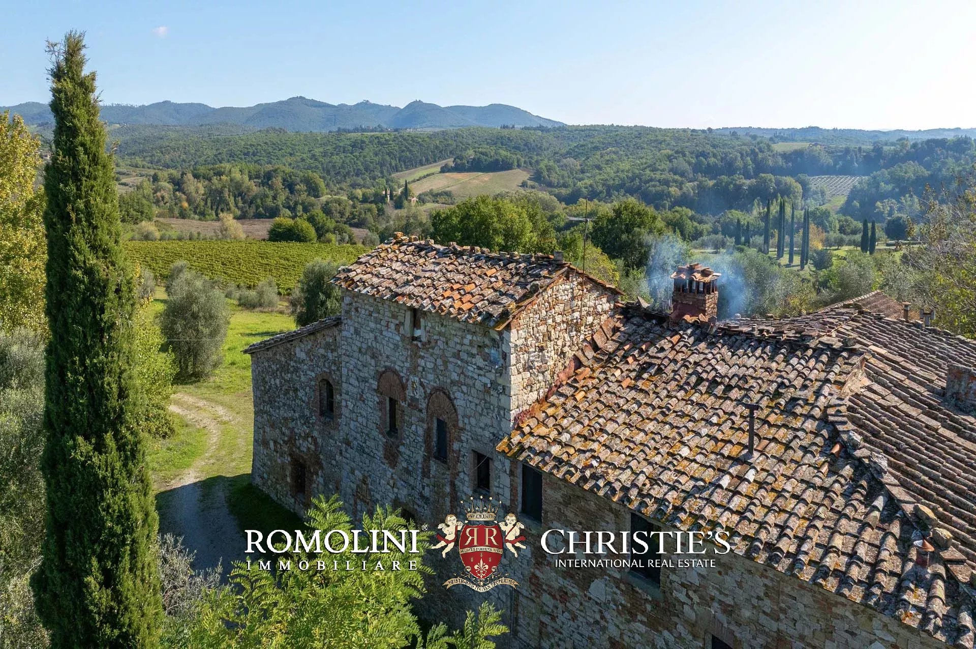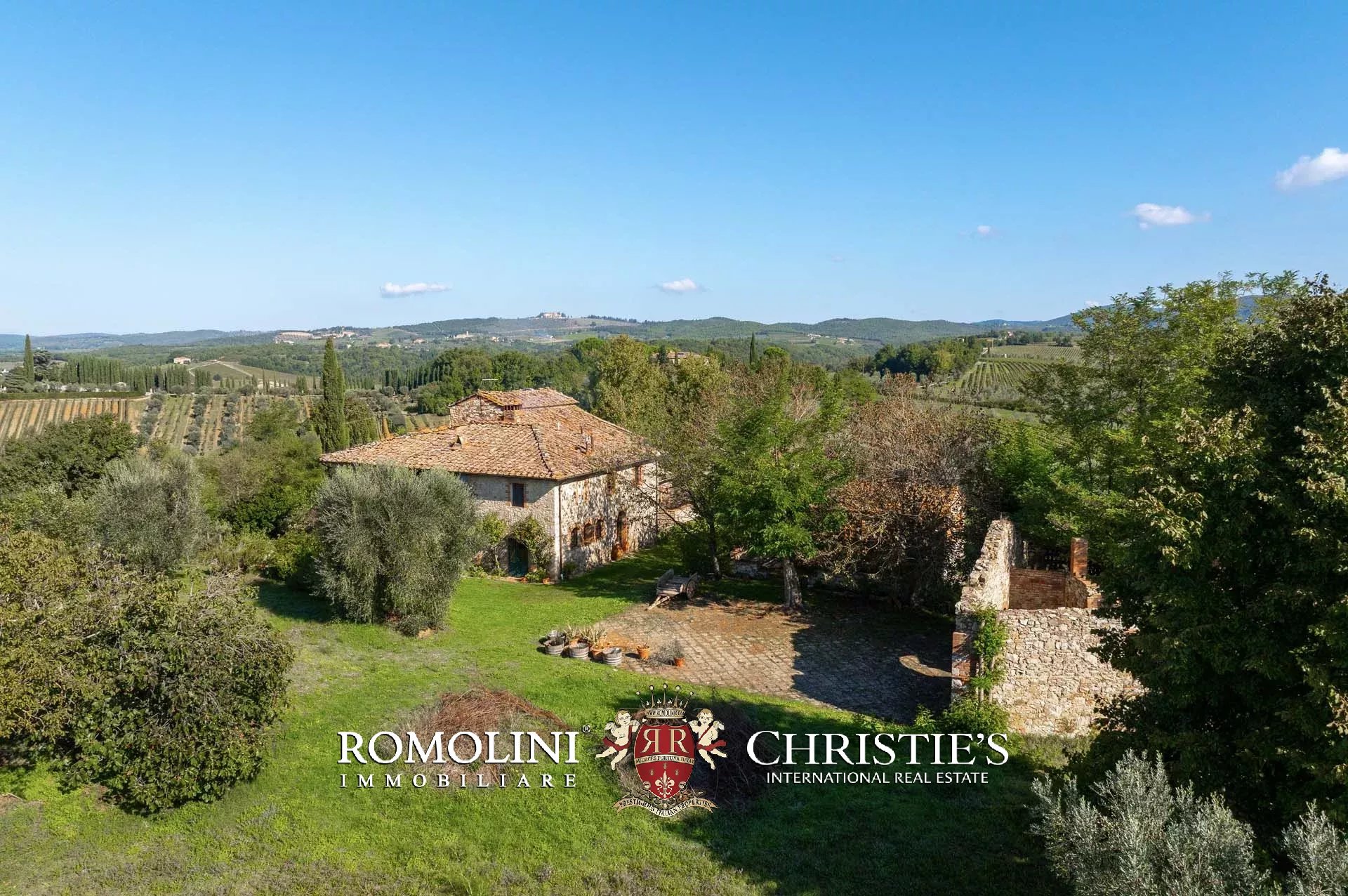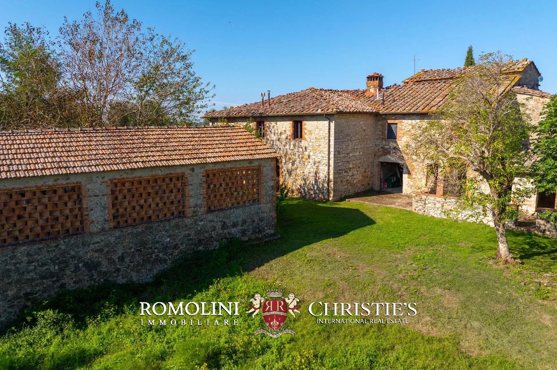 Sulle colline del Chianti, non lontano da Gaiole e Siena e in posizione panoramica, casale rustico con 3,0 ha di terreno in vendita. La proprietà si trova in una zona paesaggisticamente molto suggestiva, con vista aperta sulle colline e i vigneti della Toscana, e storicamente popolata fin da tempi antichissimi (resti etruschi risalenti al VII secolo a.C. sono stati rinvenuti in zona).