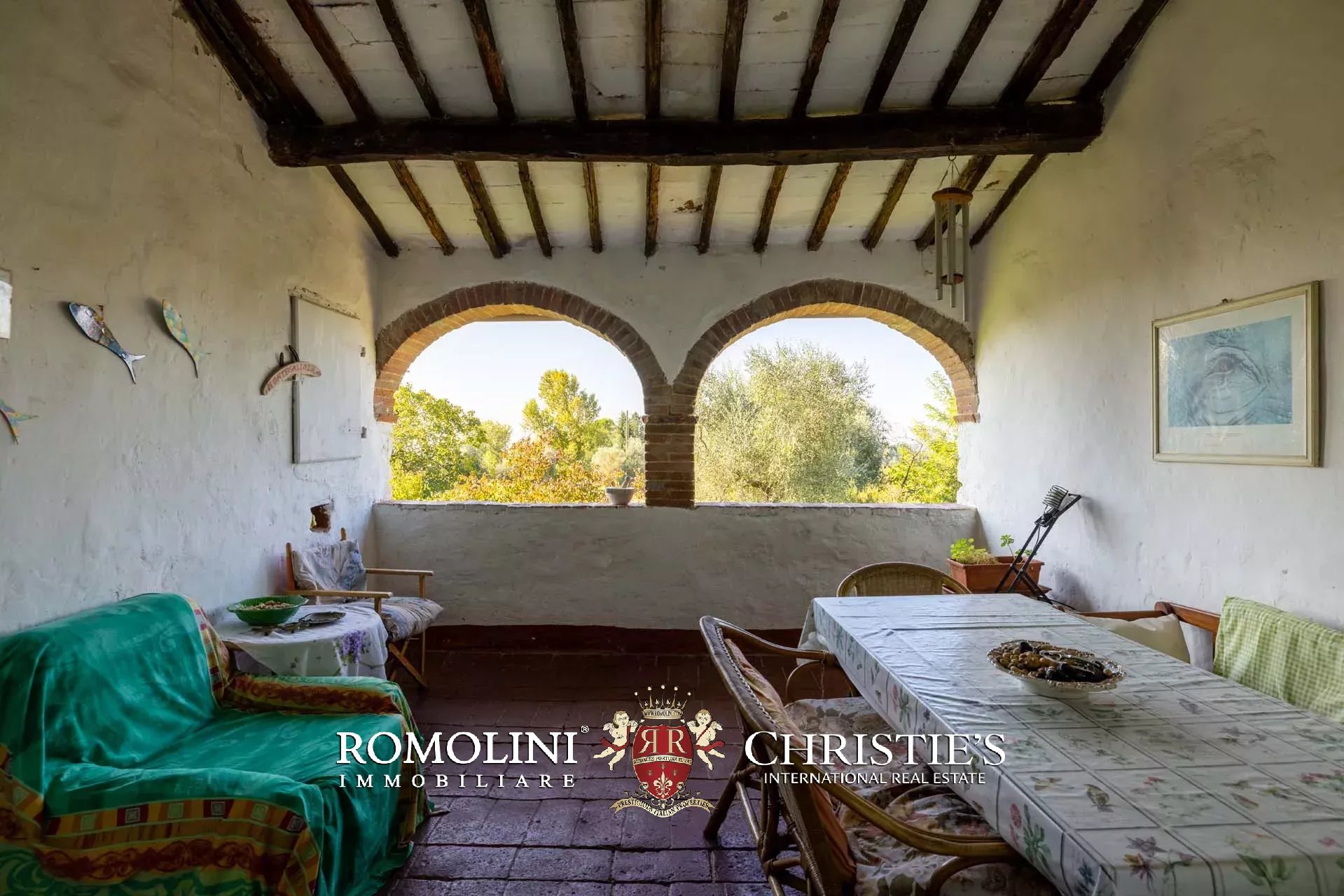 Il casale (318 m², 6 camere e 2 bagni) è un tipico edificio rurale in stile toscano risalente nel suo impianto originario all’XI secolo. Caratteristica interessante è che l’edificio è sempre stato mantenuto in maniera da preservarne gli aspetti salienti che quindi rimangono ben visibili e intatti. Il piano terra, accessibile tramite un porticato e varie porte sui lati dell’edificio, ospita i vecchi locali agricoli costituiti da cantine, stalle e vani tecnici. La scala in pietra con 15 gradini sale da porticato fino alla caratteristica loggia arcata che dà accesso all’abitazione al piano superiore. La porta si apre su un grande soggiorno con annessa cucina. Da qui si accede poi alle due zone notte del casale: la prima costituita da due camere con bagno condiviso, la seconda da quattro camere e un bagno. La torretta ospita un piccolo salottino con vista panoramica.