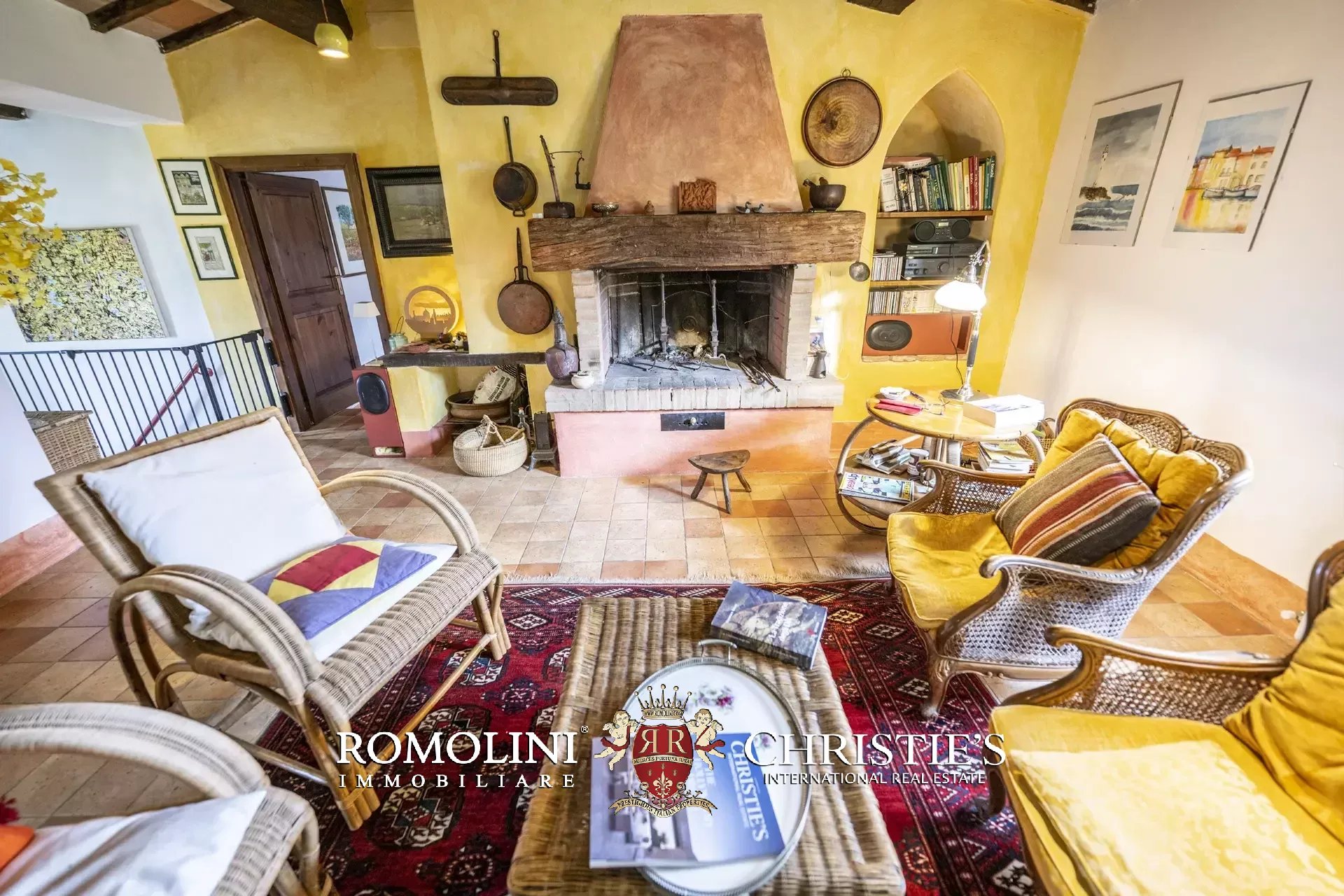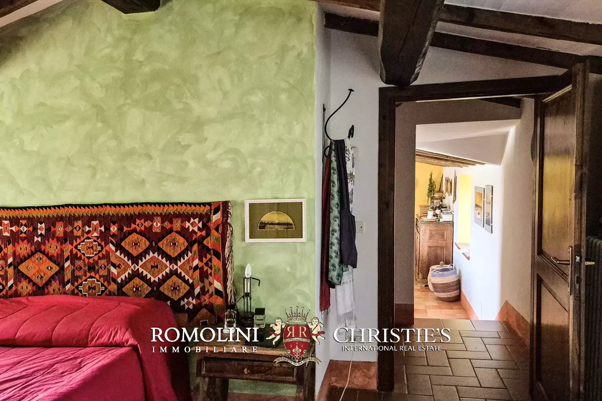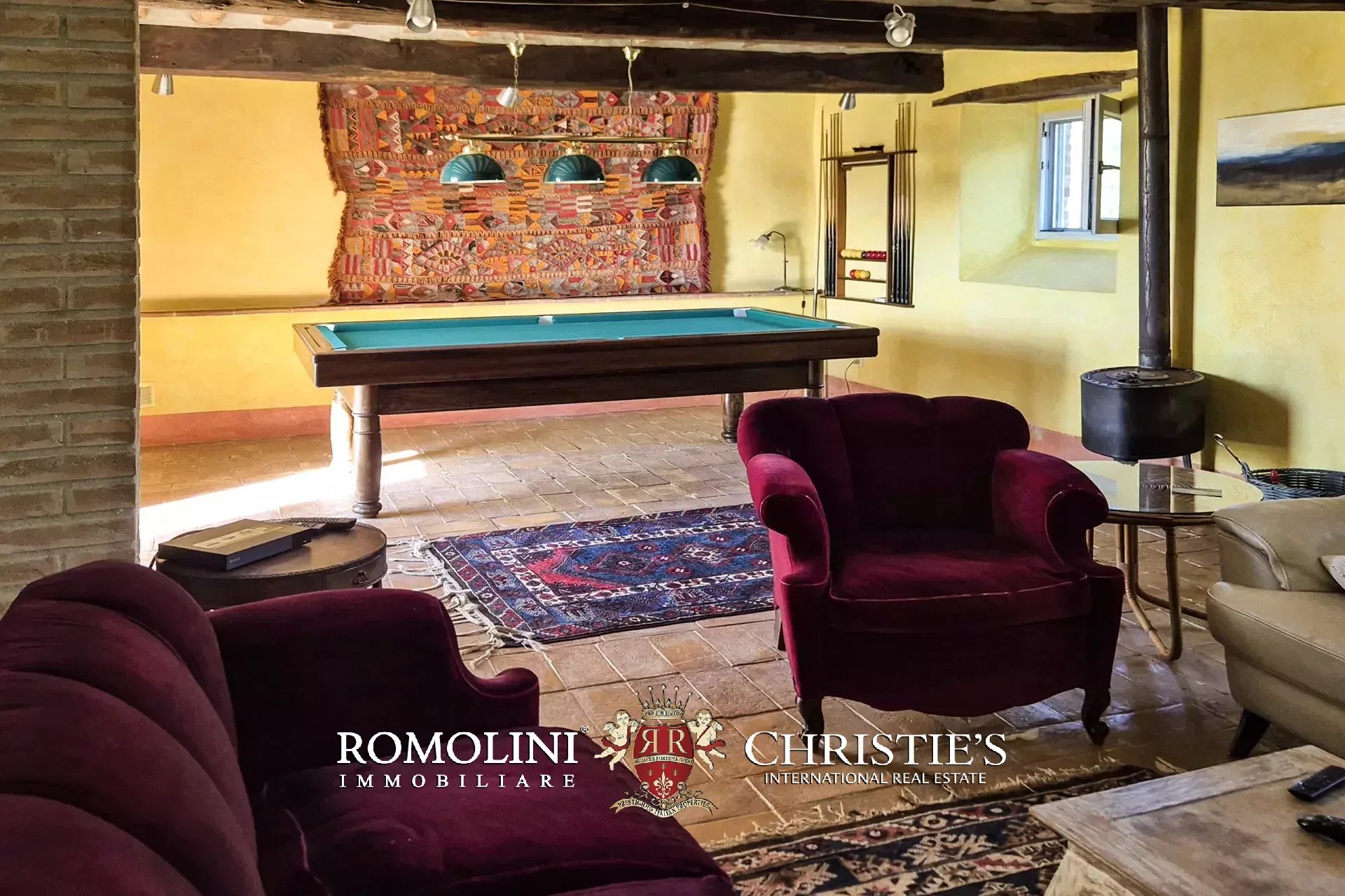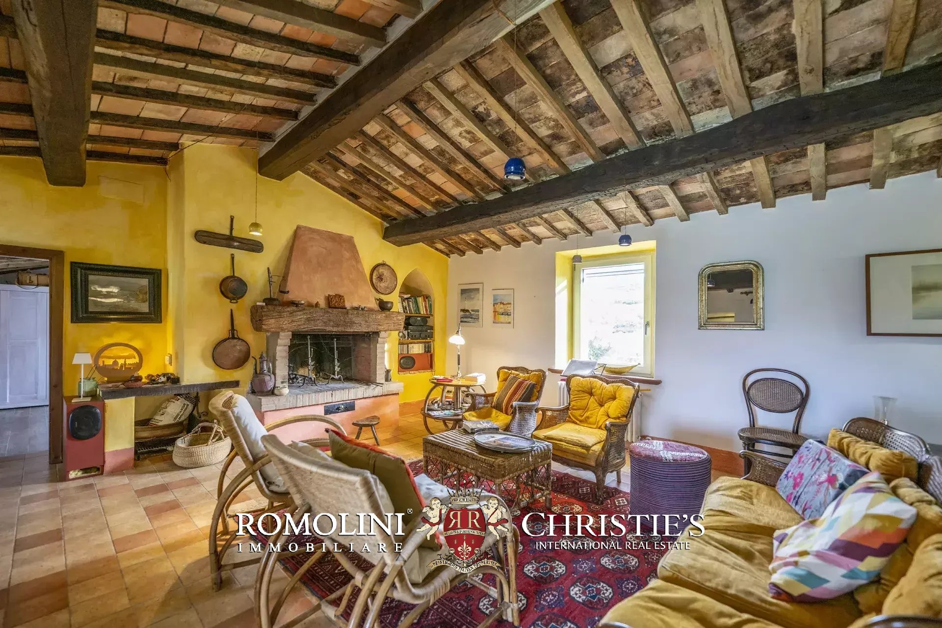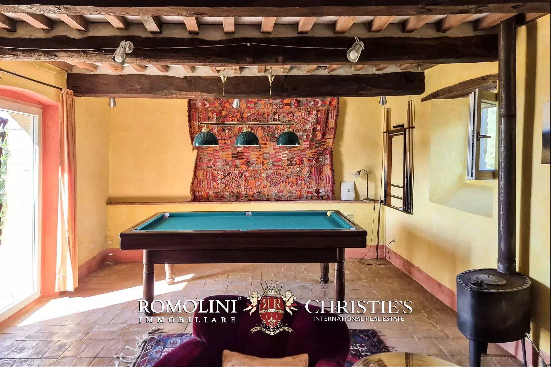 Al piano terra si trovano un grande soggiorno con biliardo e una camera servita da un bagno. All’estremità sud dell’edificio, con accesso indipendente, si trova un’ampia cantina/magazzino. Salendo al primo piano (accessibile anche direttamente dall’esterno tramite una caratteristica scala con forno antico) troviamo invece la sala da pranzo con annessa cucina, due camere e un bagno.