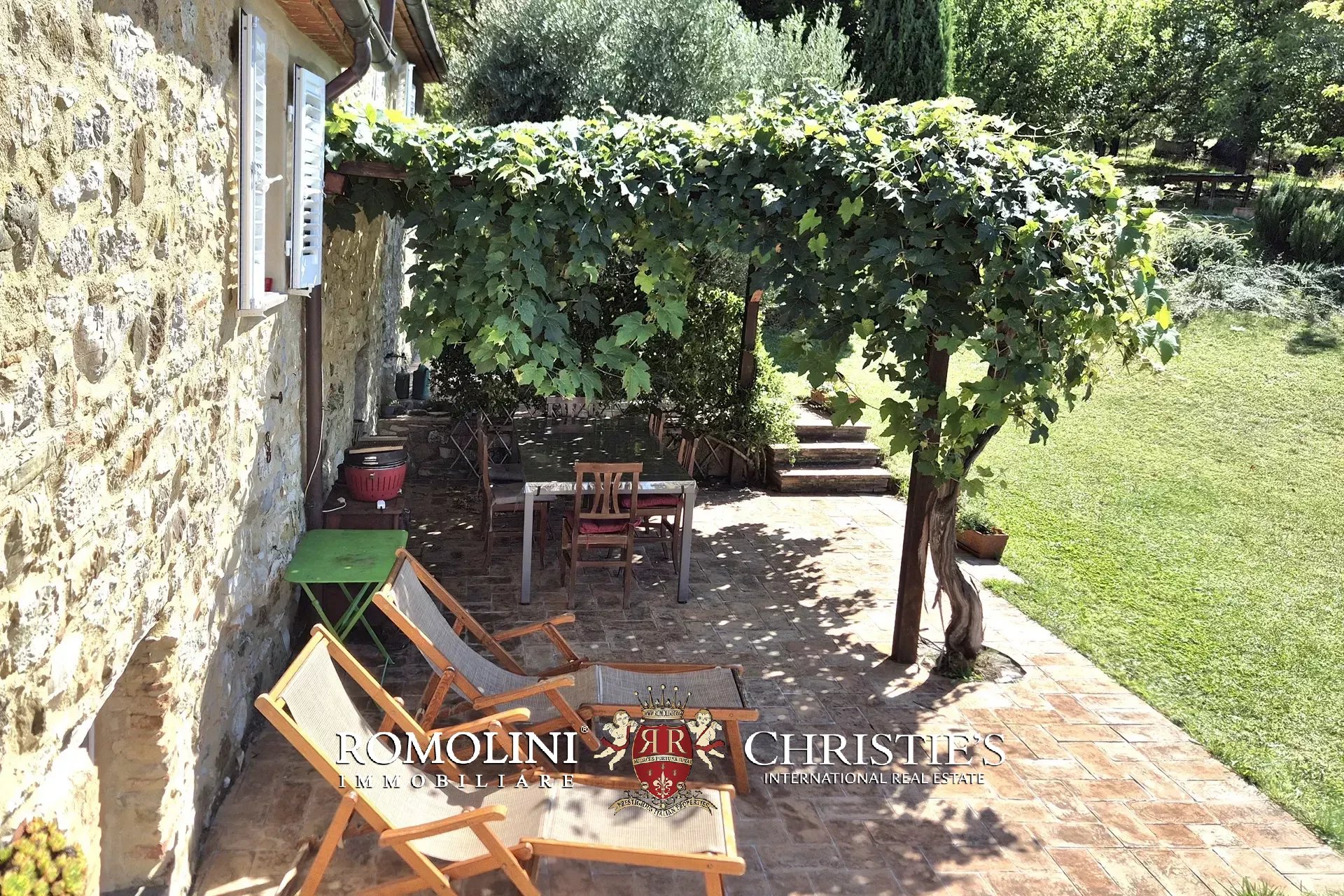 Alla proprietà si accede direttamente dalla strada provinciale tramite un cancello elettrico con controllo remoto e videocitofono. Questo cancello è anche dotato di un piccolo impianto fotovoltaico autonomo che assicura operatività anche in caso di guasti o emergenze sulla linea elettrica. La strada privata è dotata di fossette per la raccolta dell’acqua che riducono il rischio di danni e smottamenti lungo il percorso in caso di piogge.