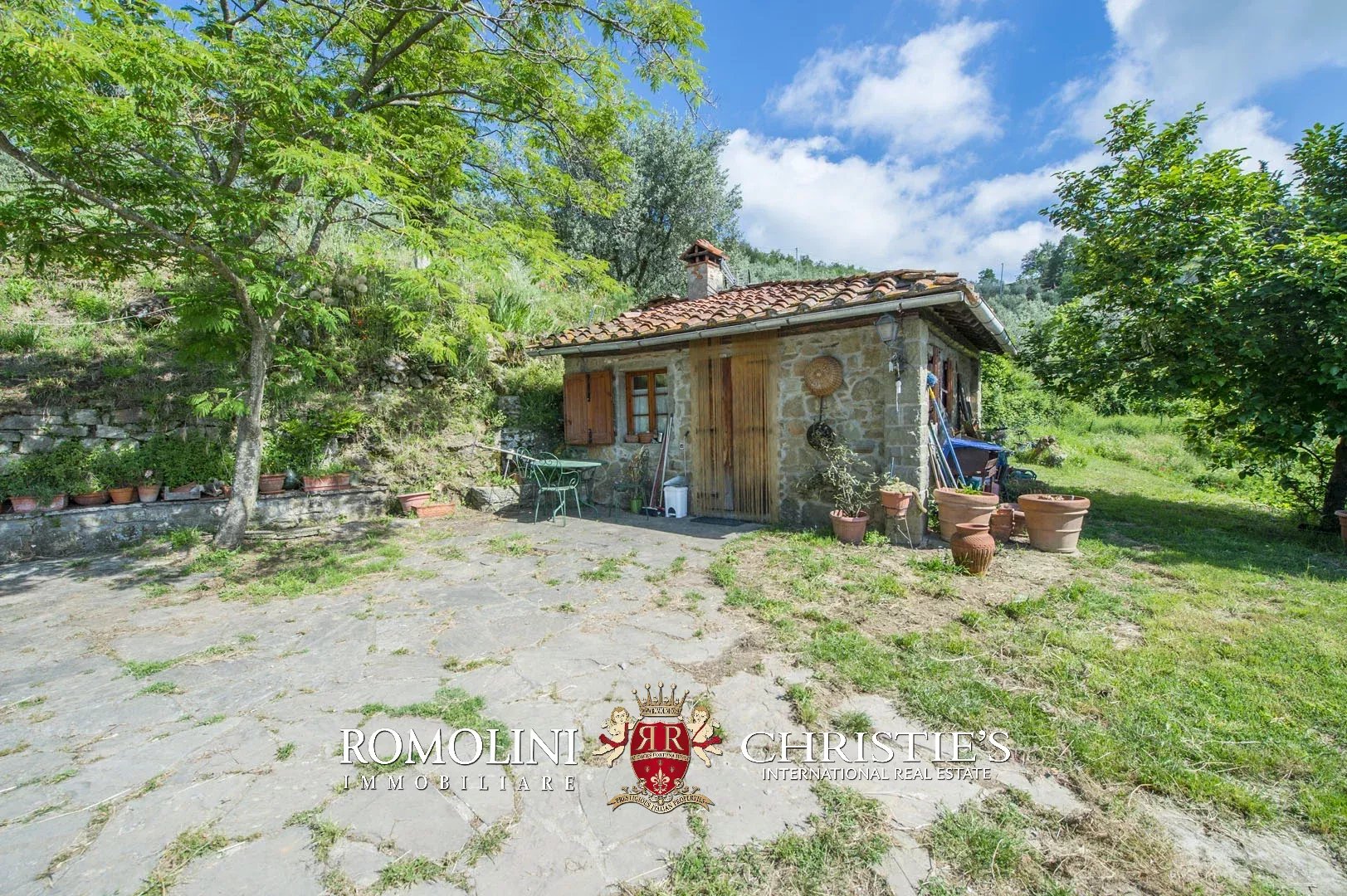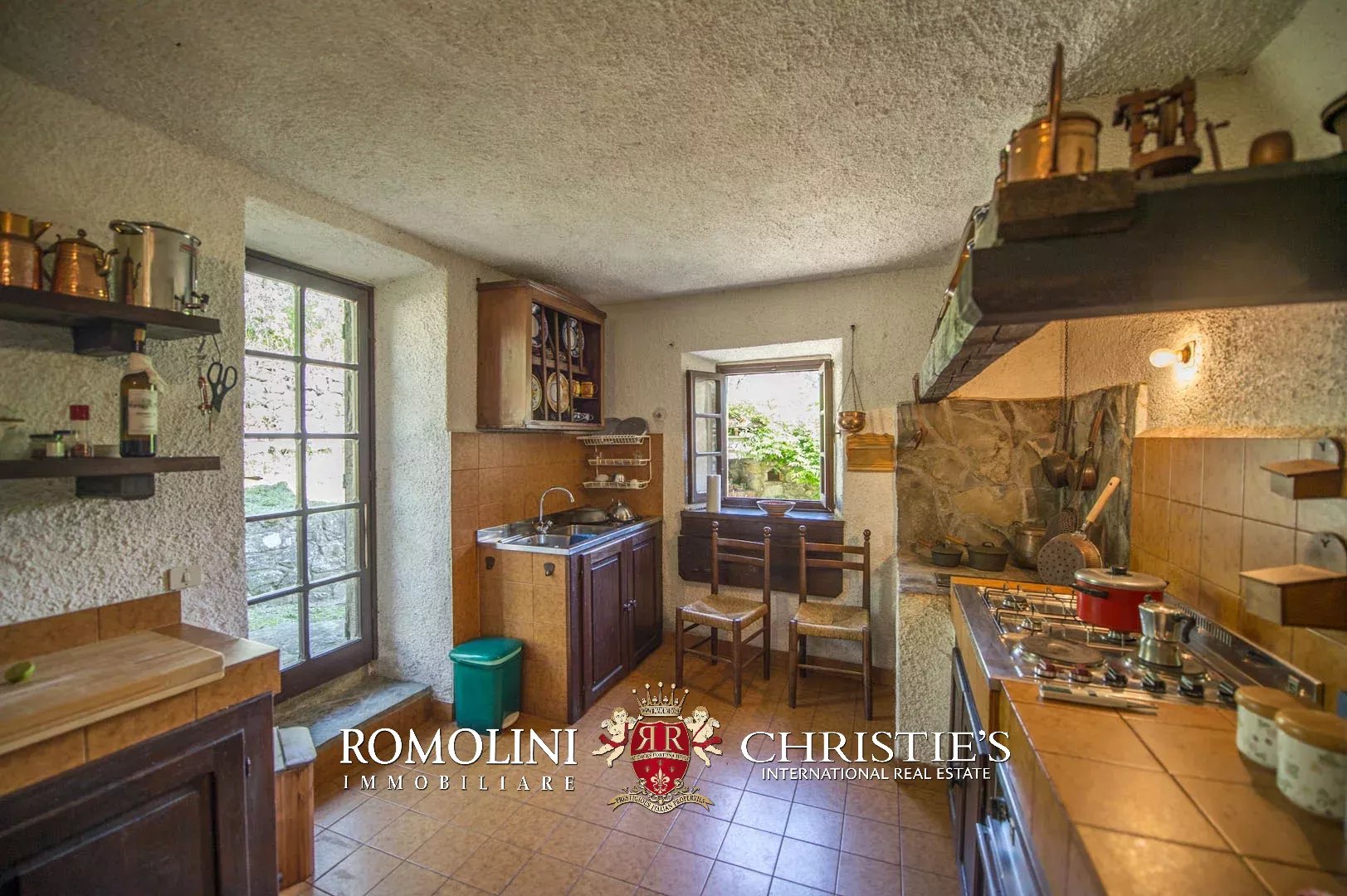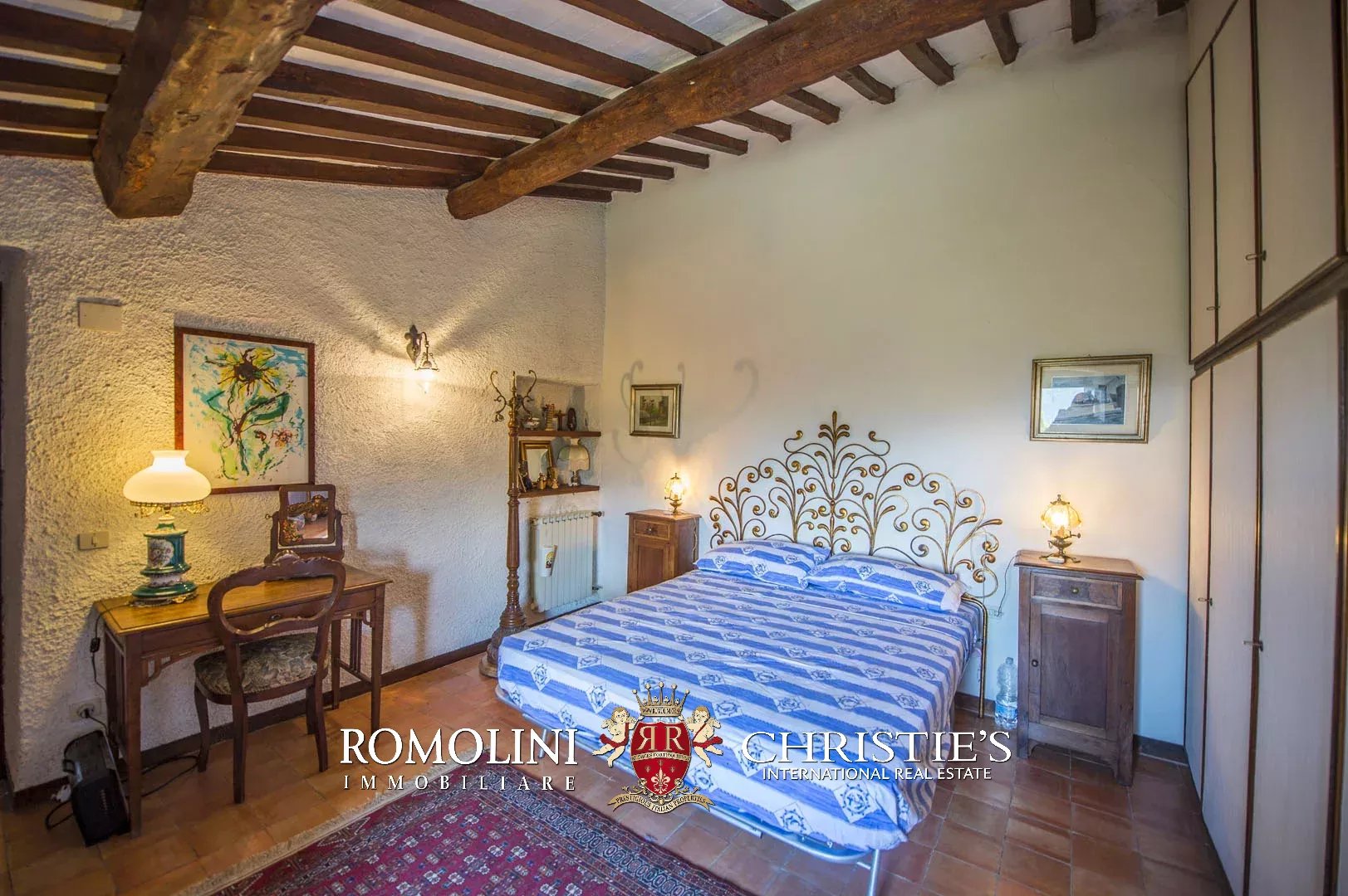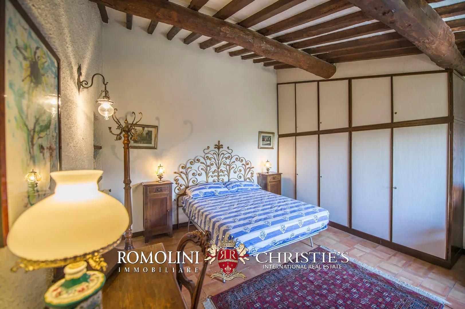 Sulle colline del Valdarno, in posizione panoramica, casale in pietra con 4,5 ettari di terreno e oliveta. L'edificio (300 m²) è stato ristrutturato negli anni Ottanta ed è strutturato su due piani:
