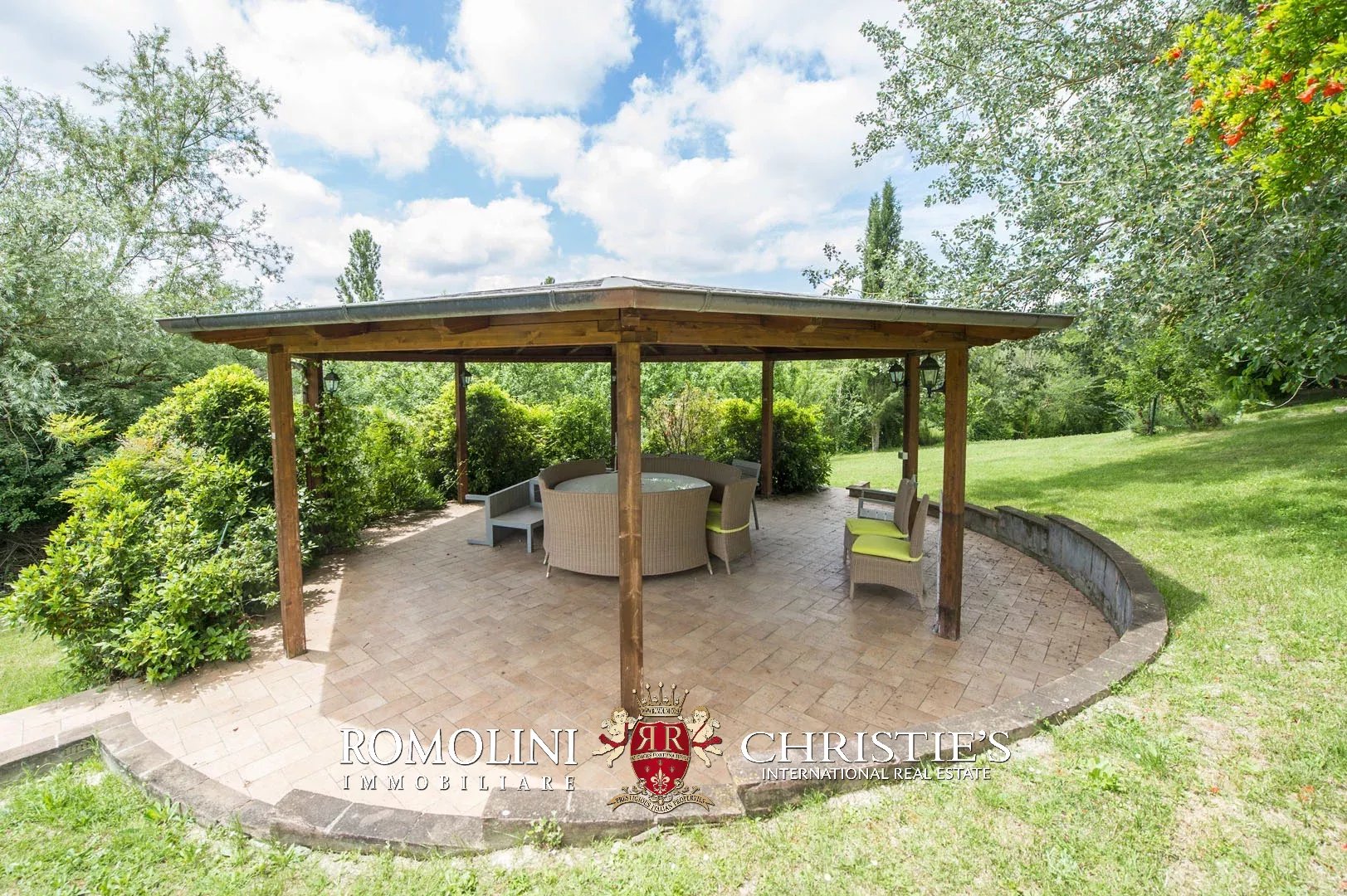 La proprietà viene completata da un gazebo esterno di 40 m² e da un bellissimo parco di 4.500 m².