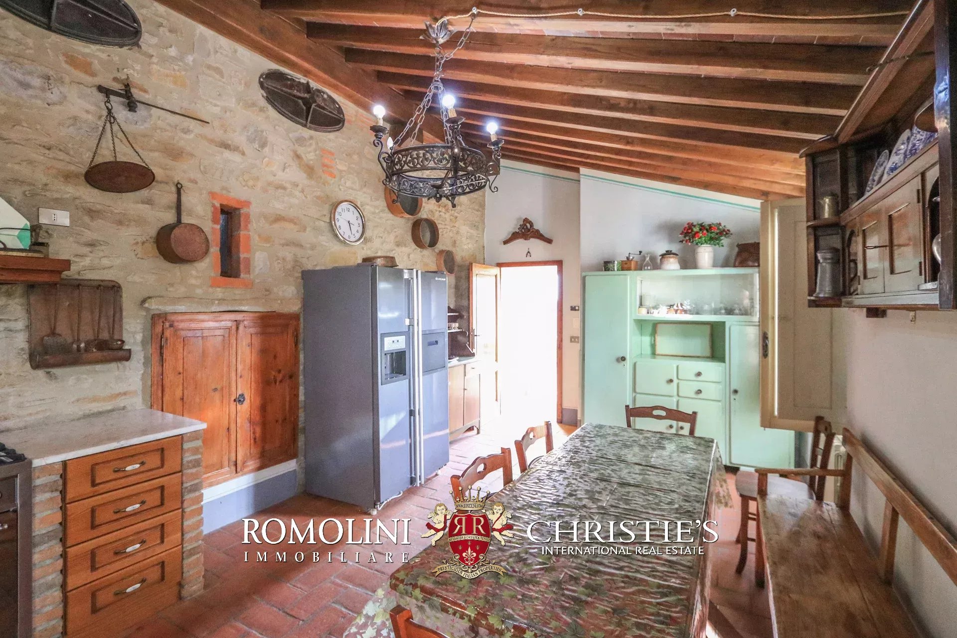 Il casale (440 m², 5 camere e 7 bagni) si sviluppa su tre livelli: