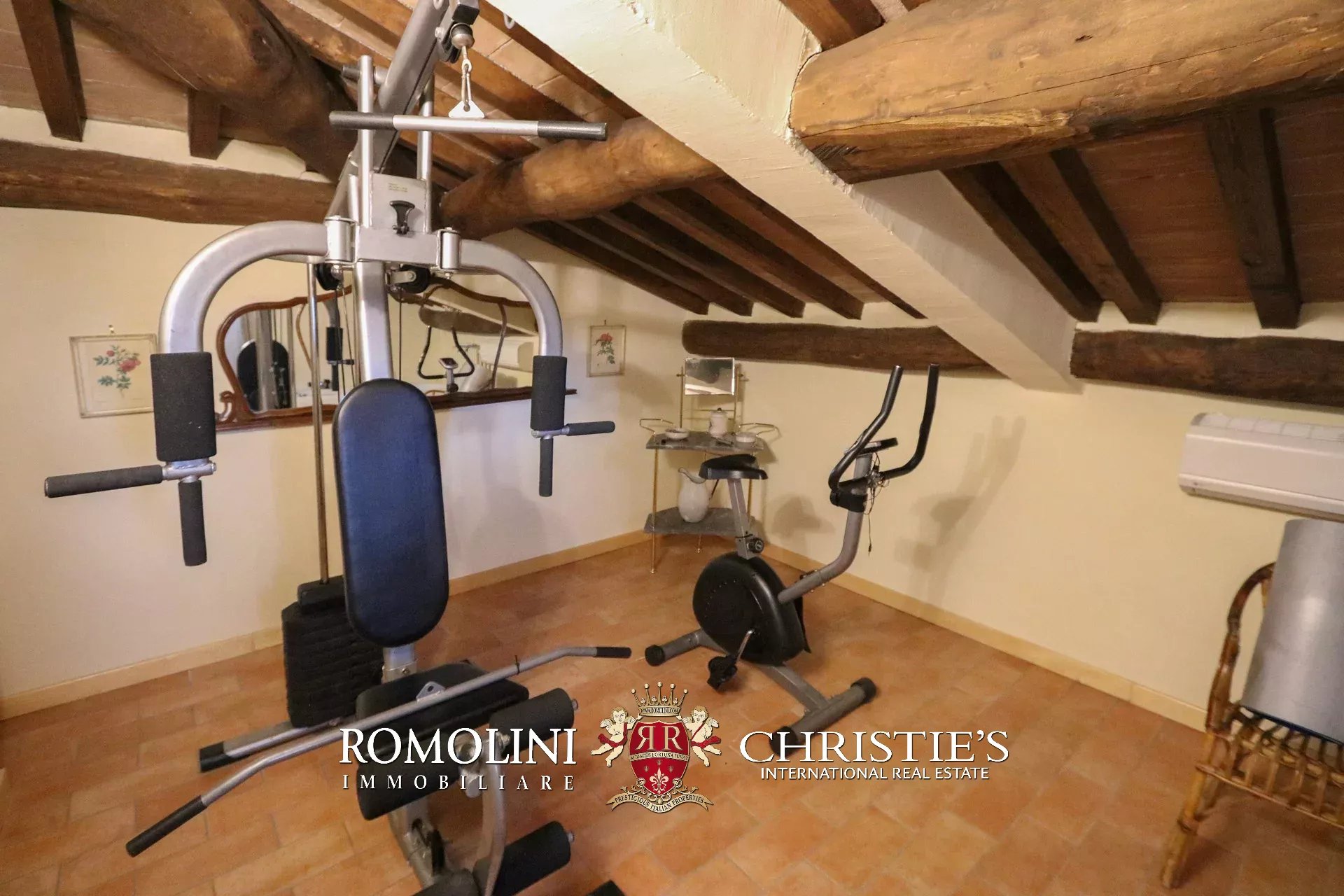 - Piano secondo: palestra (con aria condizionata), bagno con vasca idromassaggio e soffitte parzialmente abitabili (molto adatte per creare una piccola camera aggiuntiva).
