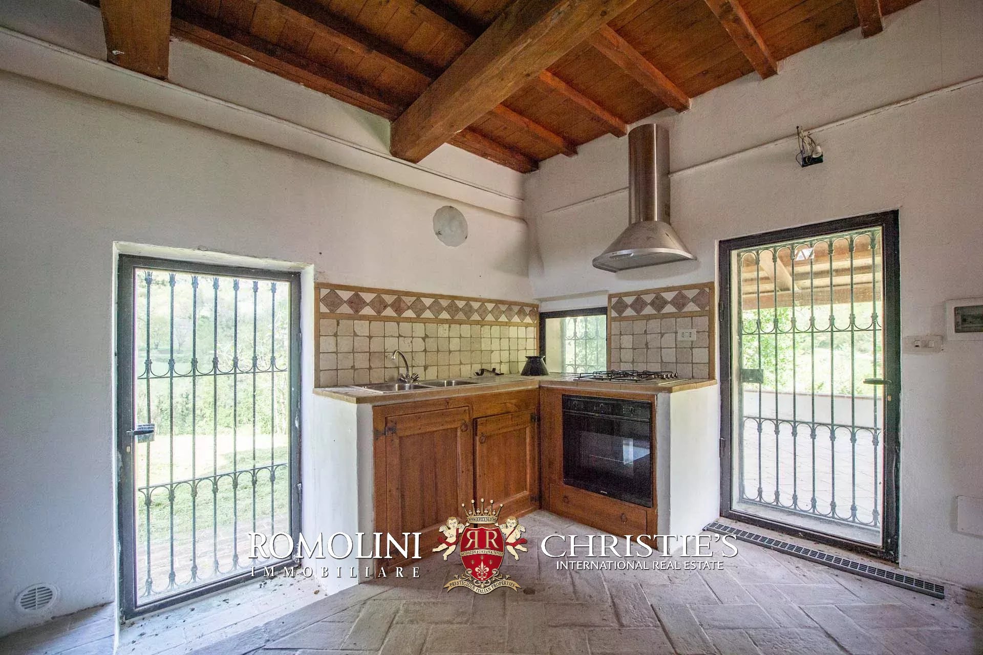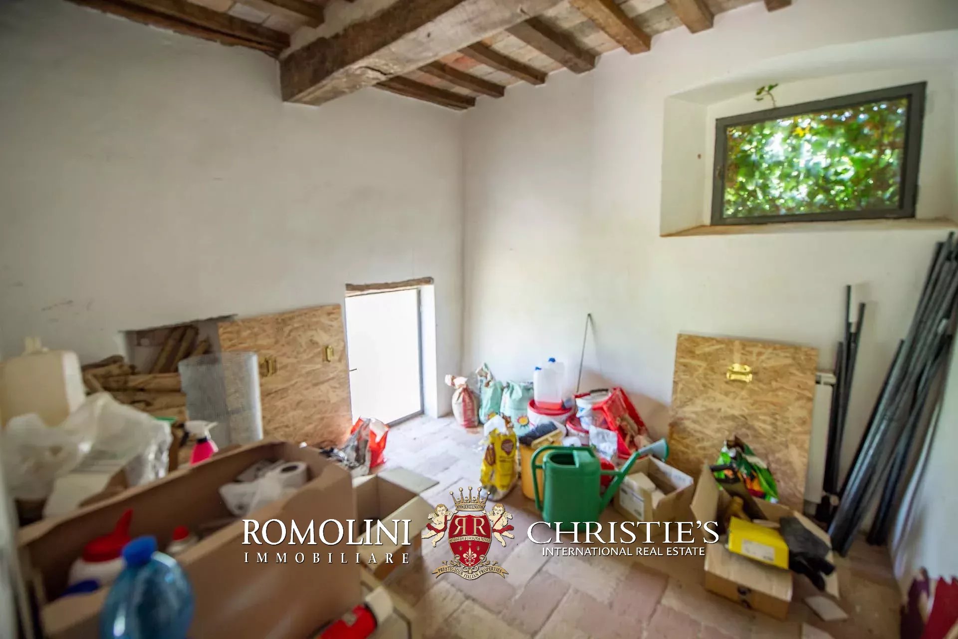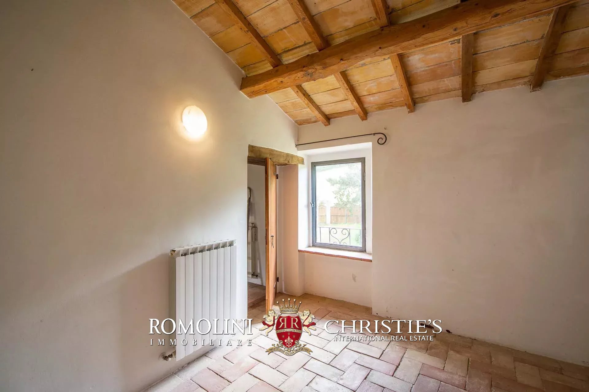 La proprietà è in buone condizioni e già abitabile, senza alcuna necessità di interventi strutturali. A livello di finiture, gli edifici conservano ancora le finiture tipiche dei rustici di campagna come pavimenti in cotto (particolarmente interessante a tal proposito il soggiorno al primo piano del casale), travi in legno, camini in pietra originali e le finestre ad alveare tipiche dei fienili. Gli ambienti sono per la maggior parte intonacati e pitturati di bianco così che la luce possa illuminare al meglio le stanze.