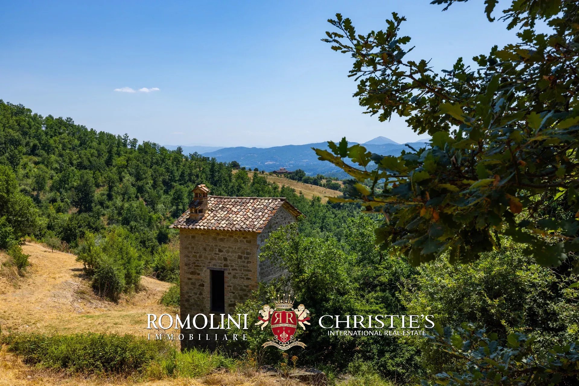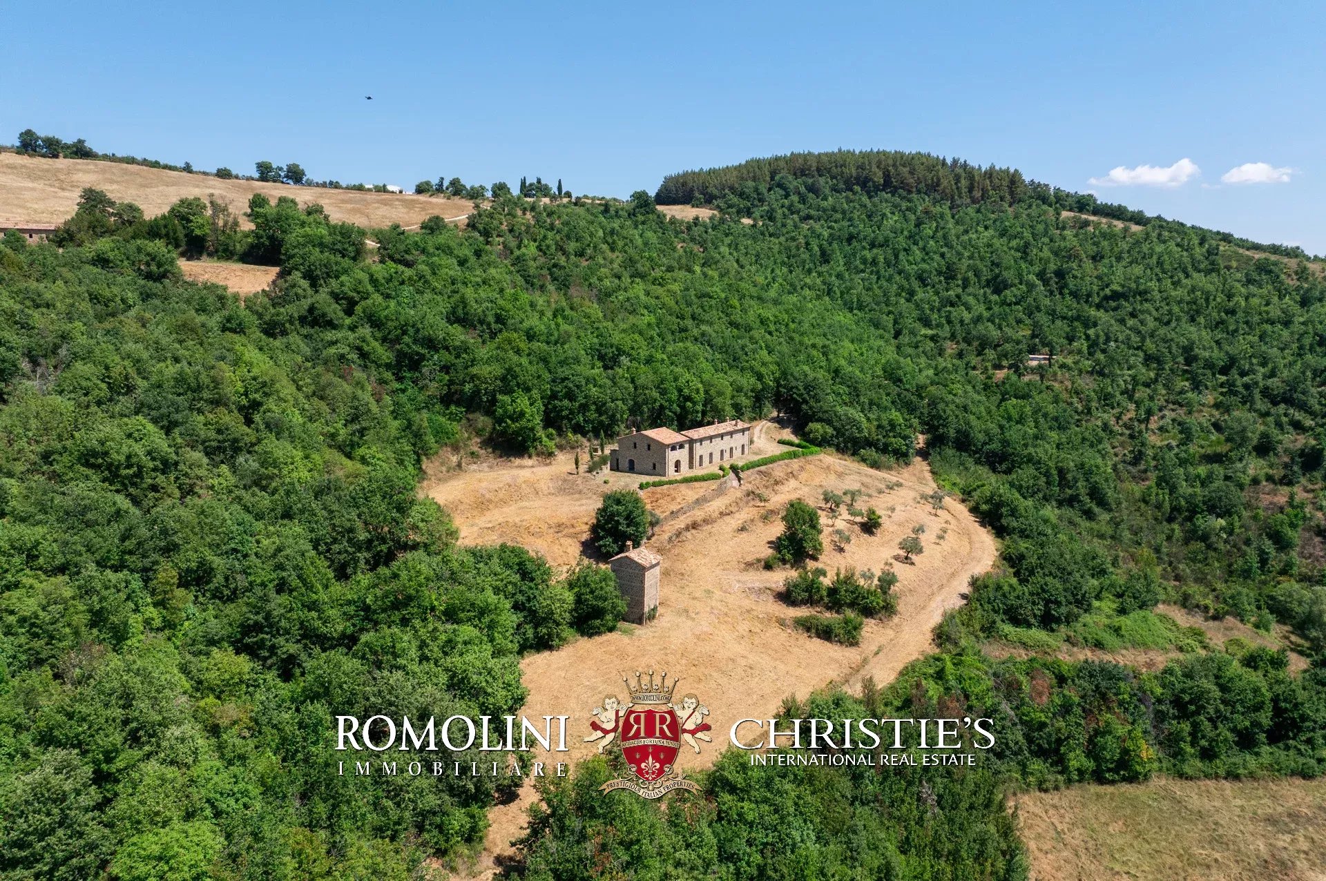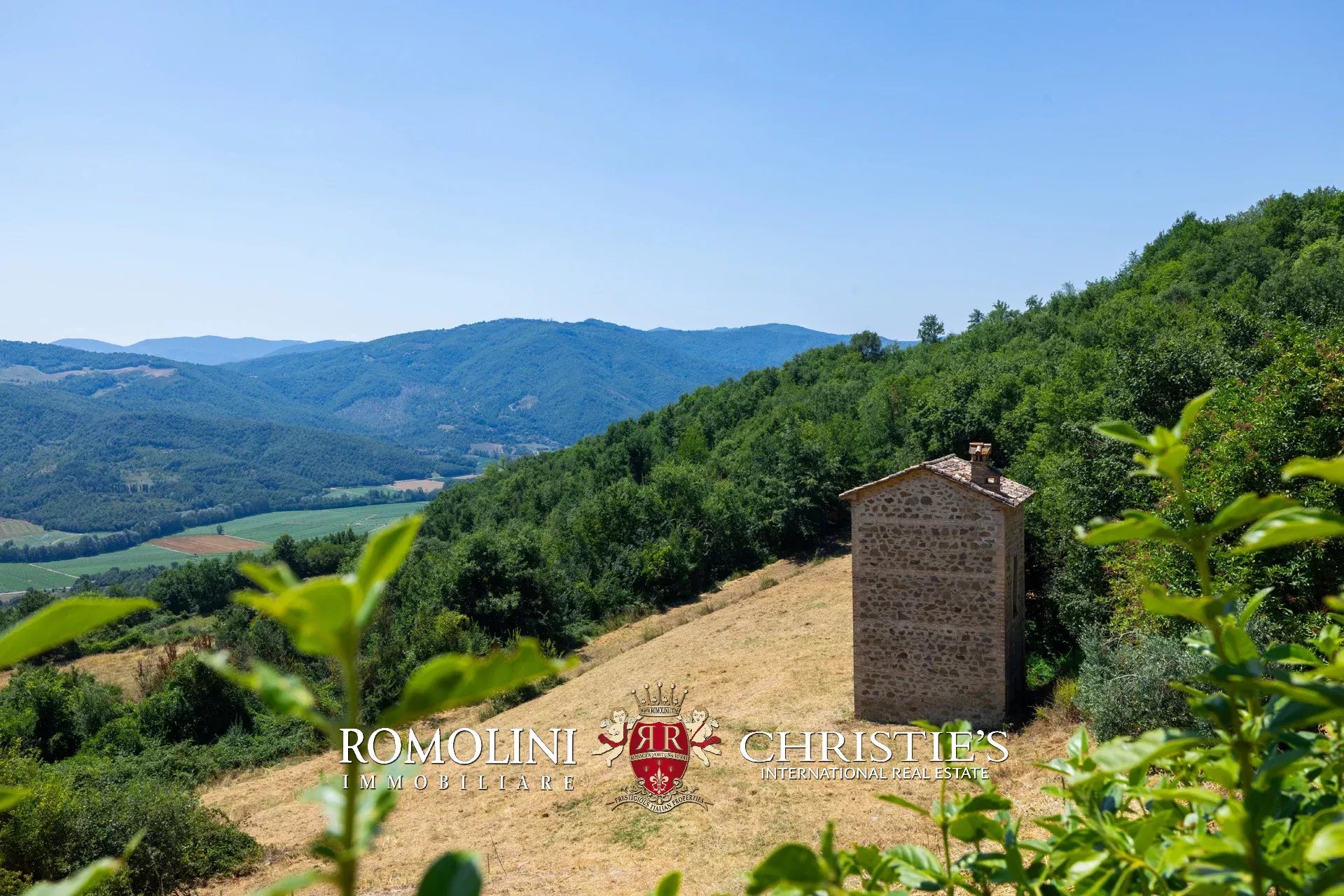 L’immobile fa parte di un più ampio compendio immobiliare articolato in tre corpi costituiti ciascuno da fabbricati e terreni in un contesto paesaggistico collinare di notevole pregio nell’alta valle del Tevere tra Umbria e Toscana. La Valle del Nestore è un’area rimasta incontaminata dove il fiume Nestore, da cui la stessa valle prende il nome, confluisce nel Tevere.