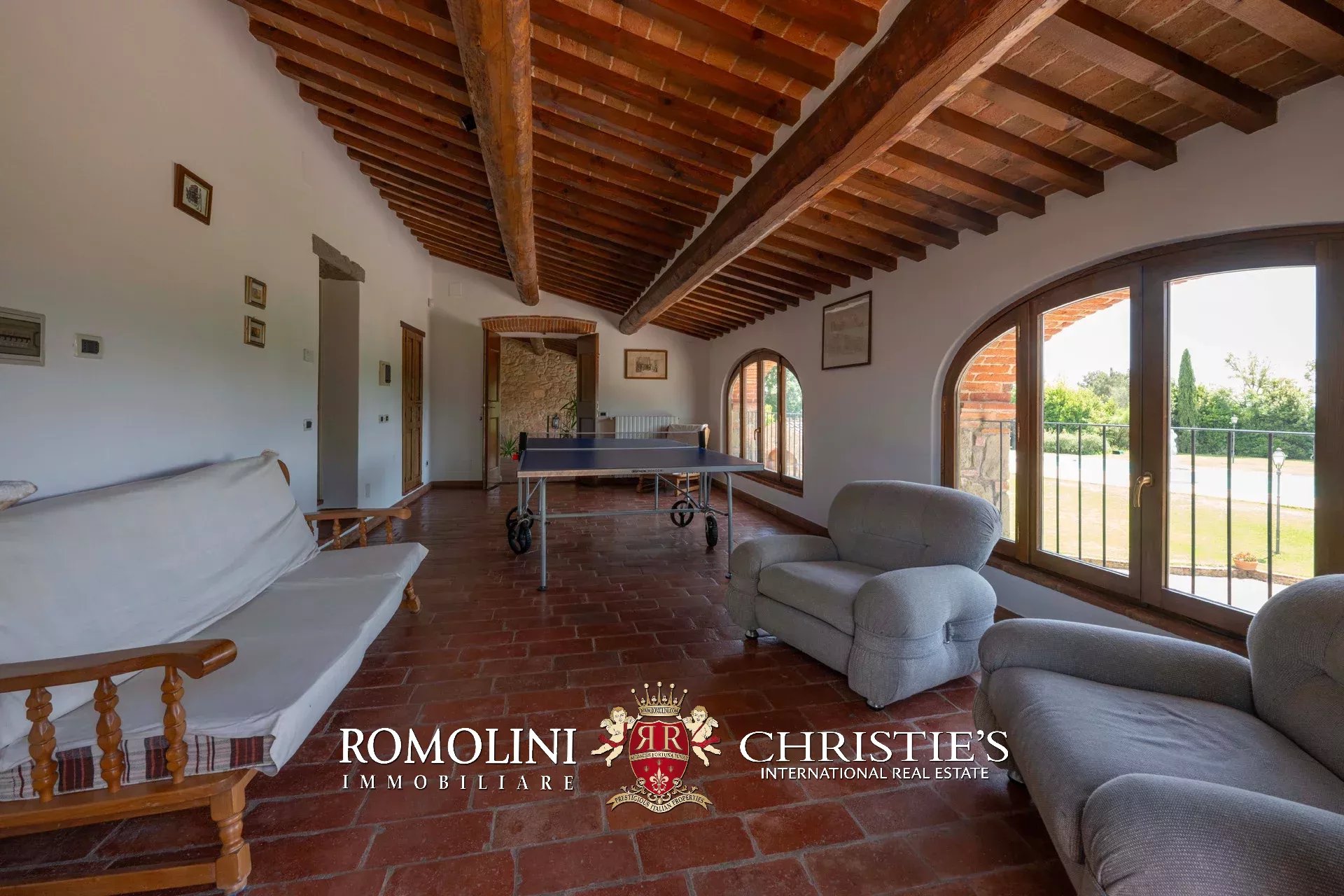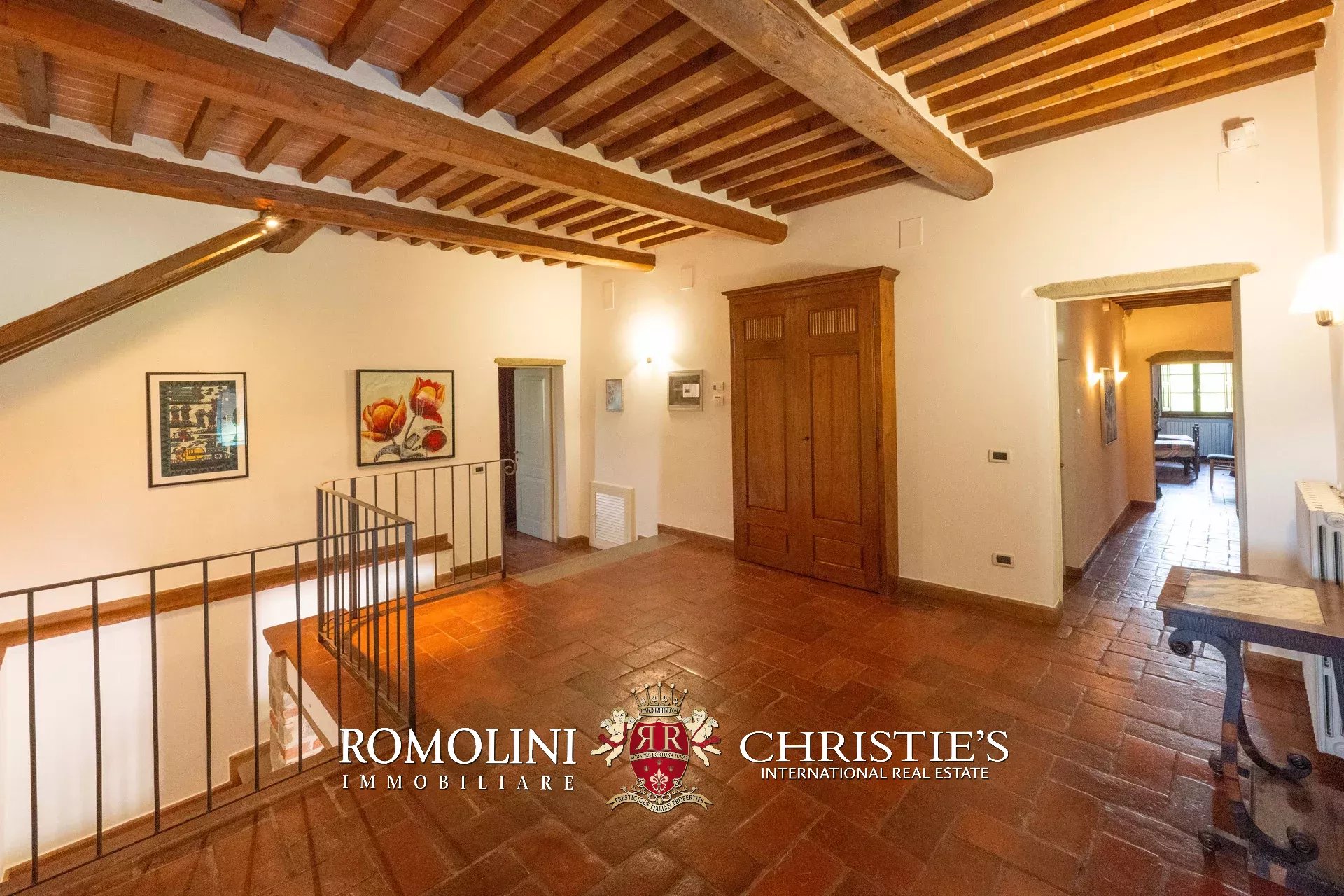 La villa (562 m², 4 camere e 5 bagni) è il risultato della ristrutturazione di una ex casa colonica e dispone di ambienti ampi e luminosi con finiture moderne che esaltano e valorizzano l’aspetto classico dell’edificio. La villa è dislocata su tre livelli oltre a un mezzanino: