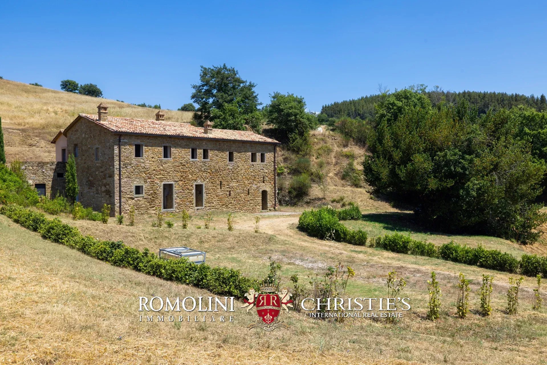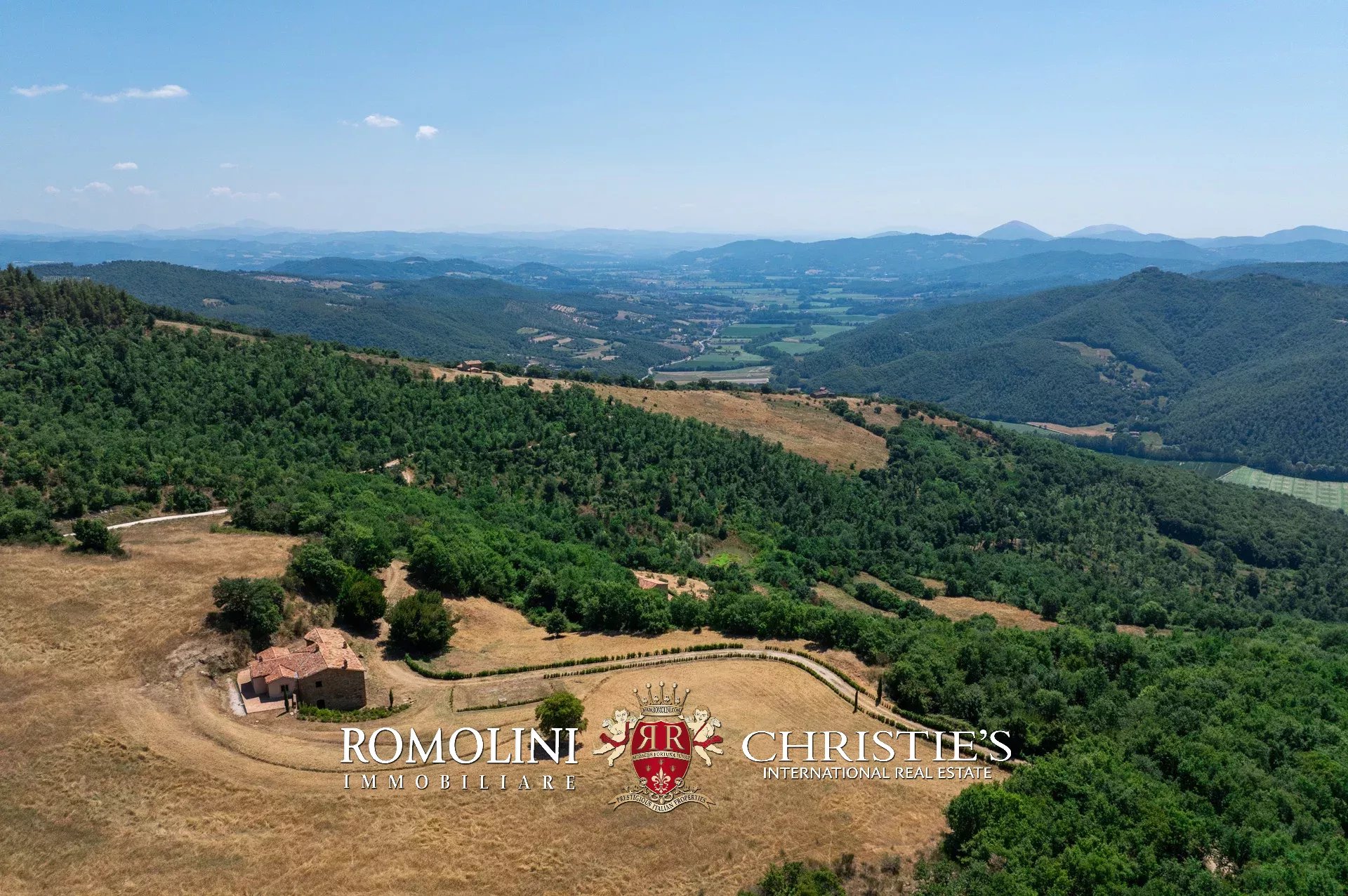 L’immobile fa parte di un più ampio compendio immobiliare articolato in tre corpi costituiti ciascuno da fabbricati e terreni in un contesto paesaggistico collinare di notevole pregio nell’alta valle del Tevere tra Umbria e Toscana. La Valle del Nestore è un’area rimasta incontaminata dove il fiume Nestore, da cui la stessa valle prende il nome, confluisce nel Tevere.