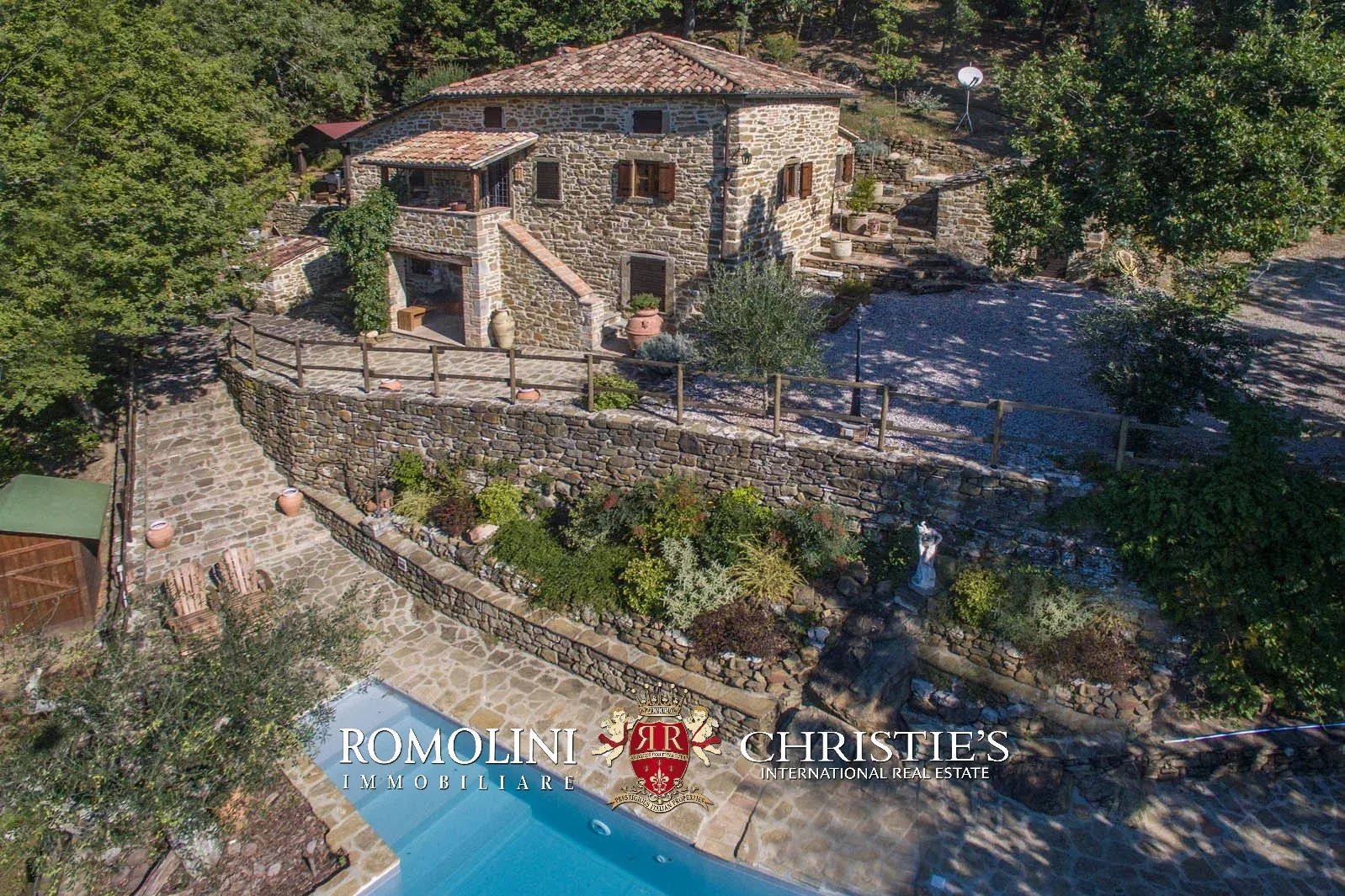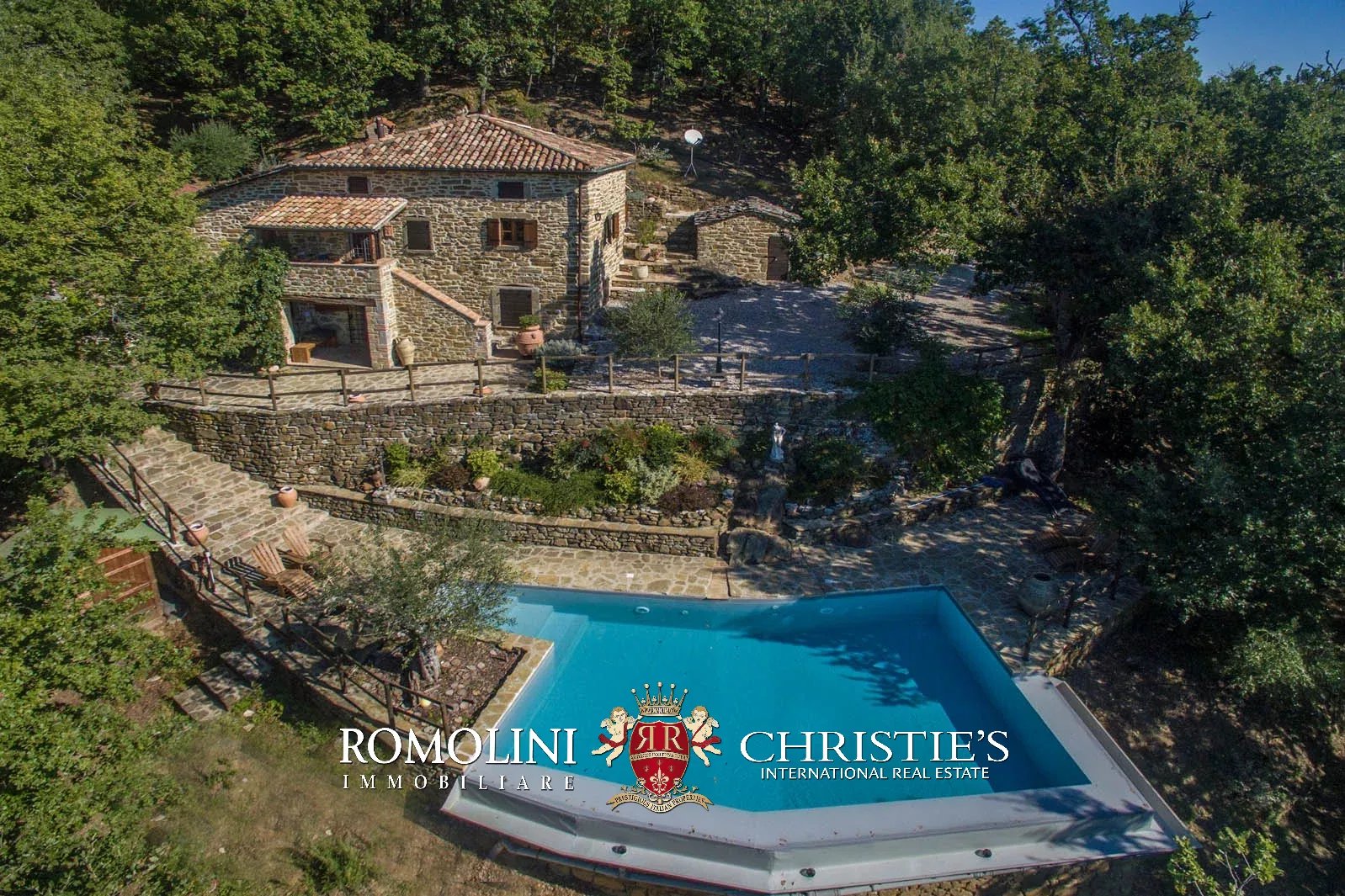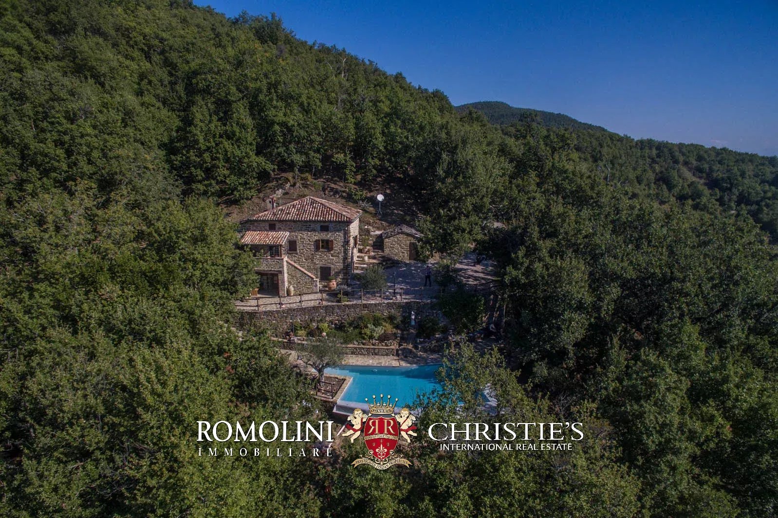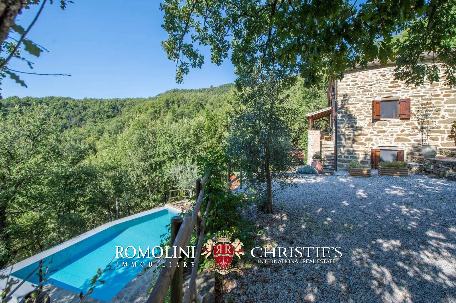 In Toscana, al confine con l’Umbria, casale in pietra con piscina e annesso. La proprietà si trova in posizione riservata, ma a soli cinque minuti di auto da un paesino con bar, alimentari e ristorante. Il casale si trova in mezzo al bosco, offre una splendida vista panoramica ed è quindi il posto ideale per trascorrere le vacanze.