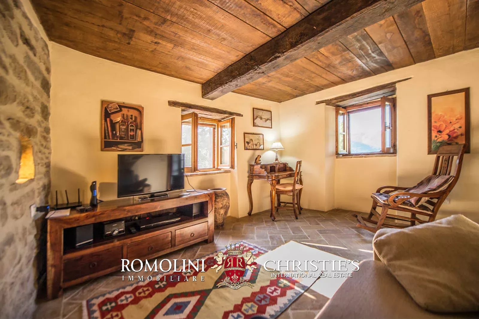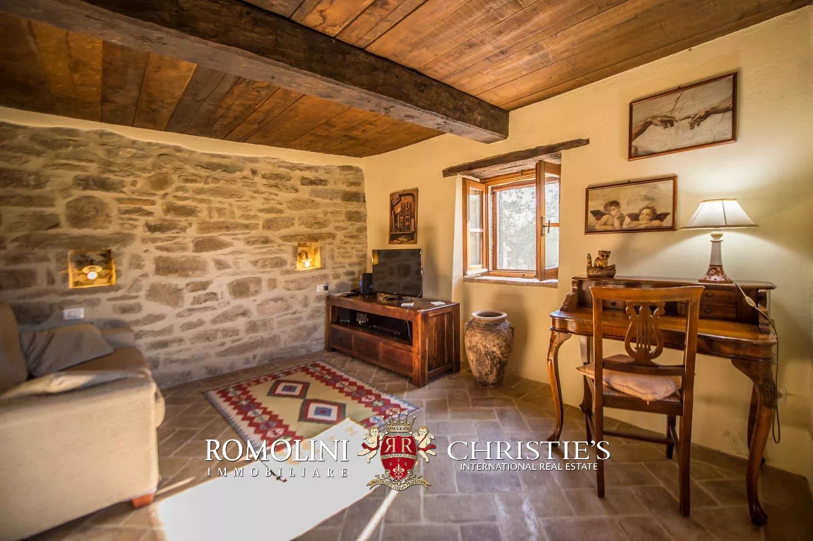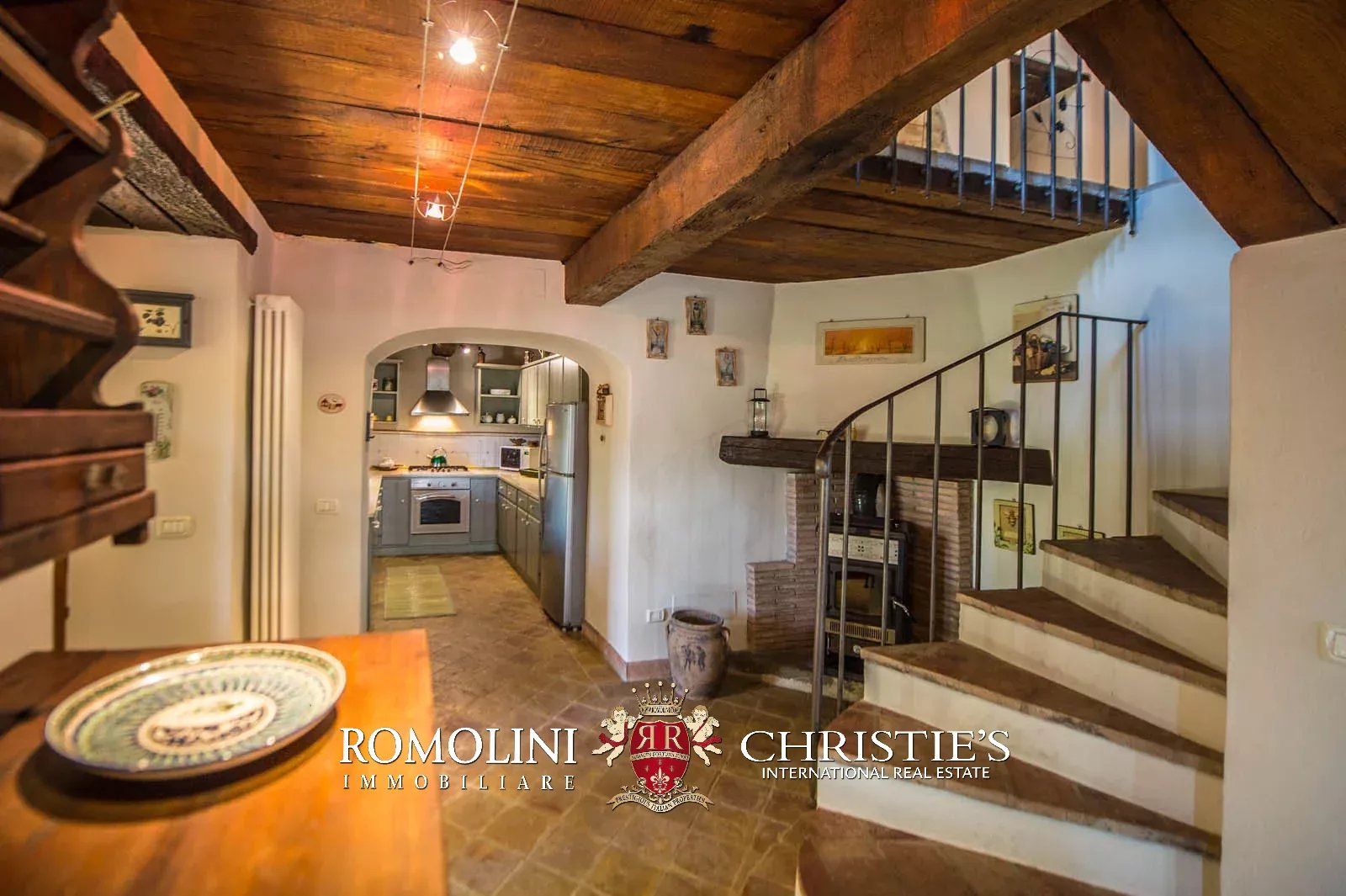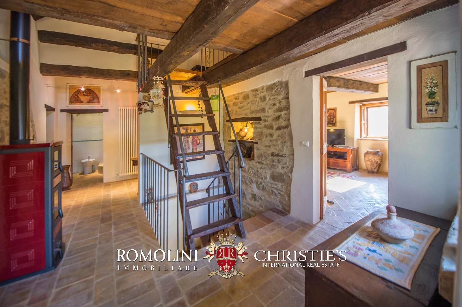 La proprietà è stata completamente ristrutturata ed è in buone condizioni. Il casale in pietra dispone di pareti con pietra a vista, soffitto con travi in legno, pavimento in cotto fatto a mano, caminetto con stufa a legna e una scala in legno.