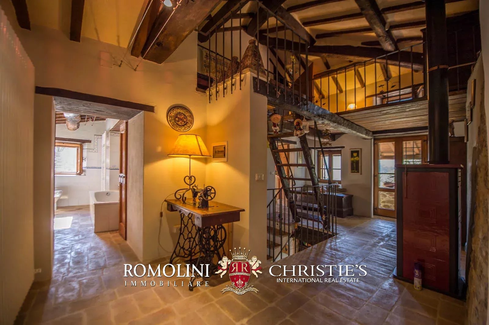 - Primo piano: salotto con TV, accessibile anche dalla loggia esterna, due camere e due bagni (uno con doccia e uno con vasca);