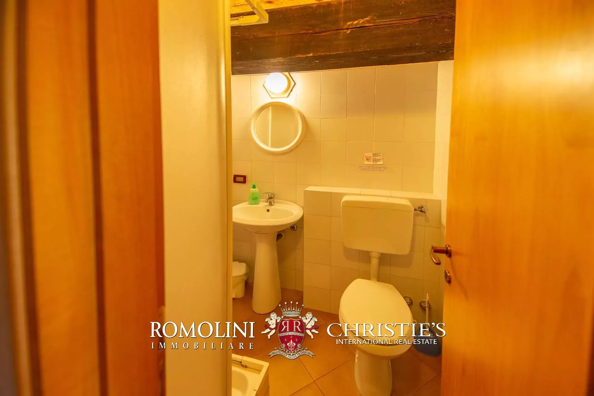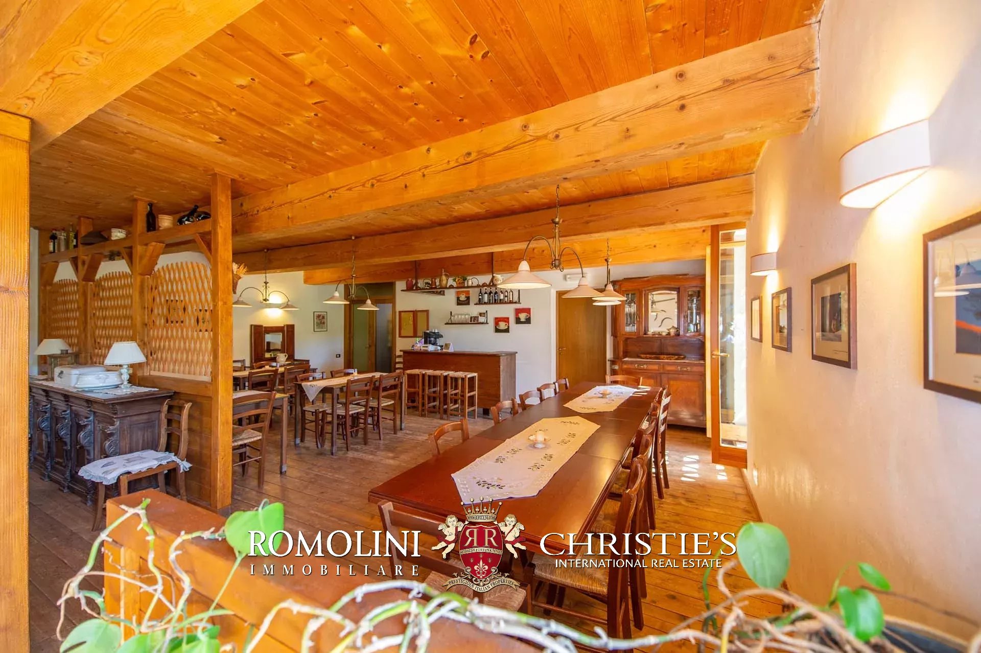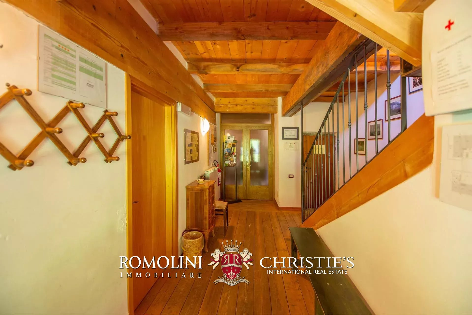 Nella parte ovest della casa al piano terreno sono presenti l’originale cucina con camino, due bagni e una cantina. Nella parte est sono invece presenti una stalla con sei box per cavalli, un magazzino e a nord un garage seminterrato a uso del proprietario. Al primo piano nella parte occidentale si trova l’appartamento della famiglia del titolare, mentre quella orientale è ad uso agrituristico con accesso dal lato nord. Alla parte agrituristica si accede attraverso una loggia aperta di circa 50 mq. Nell’ingresso si trovano un locale adibito a direzione, la scala di accesso al secondo piano, e l’ingresso della grande sala da pranzo. Allo stesso piano si trova la cucina del ristorante, con la dispensa e un bagno di servizio. Il secondo piano è riservato alle camere e ai bagni per gli ospiti dell’agriturismo. La soffitta a cui si accede con scala a pioli è in parte abitabile.