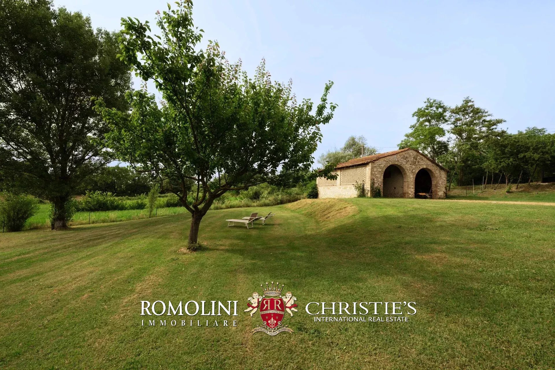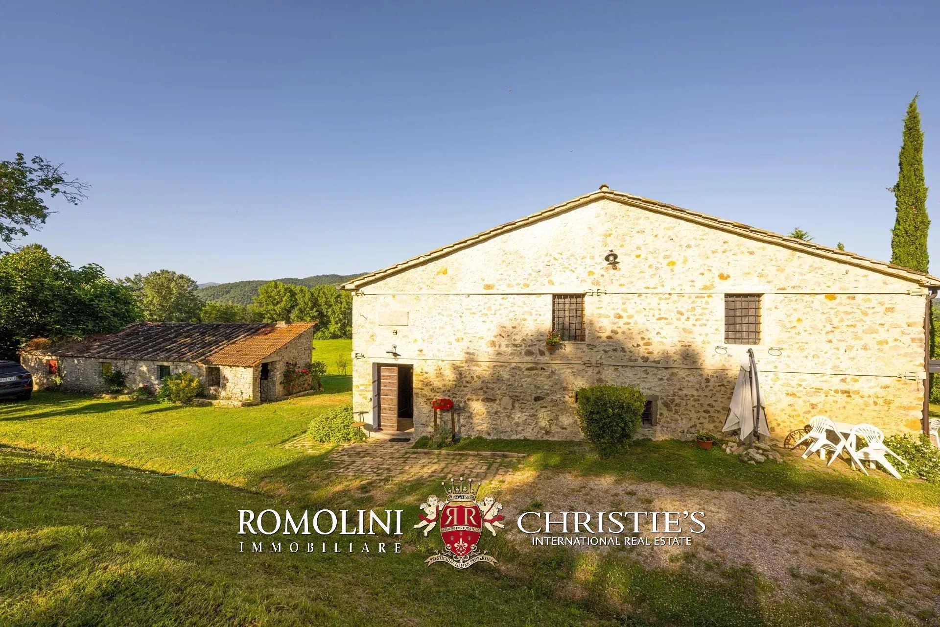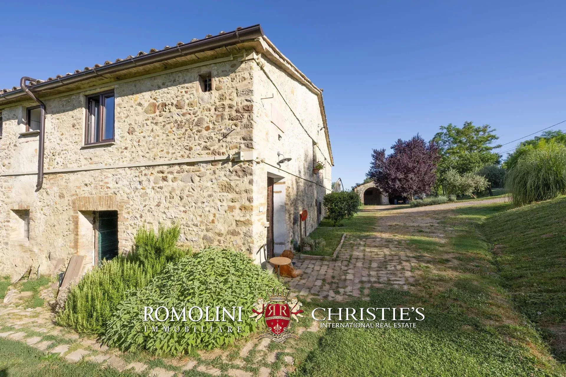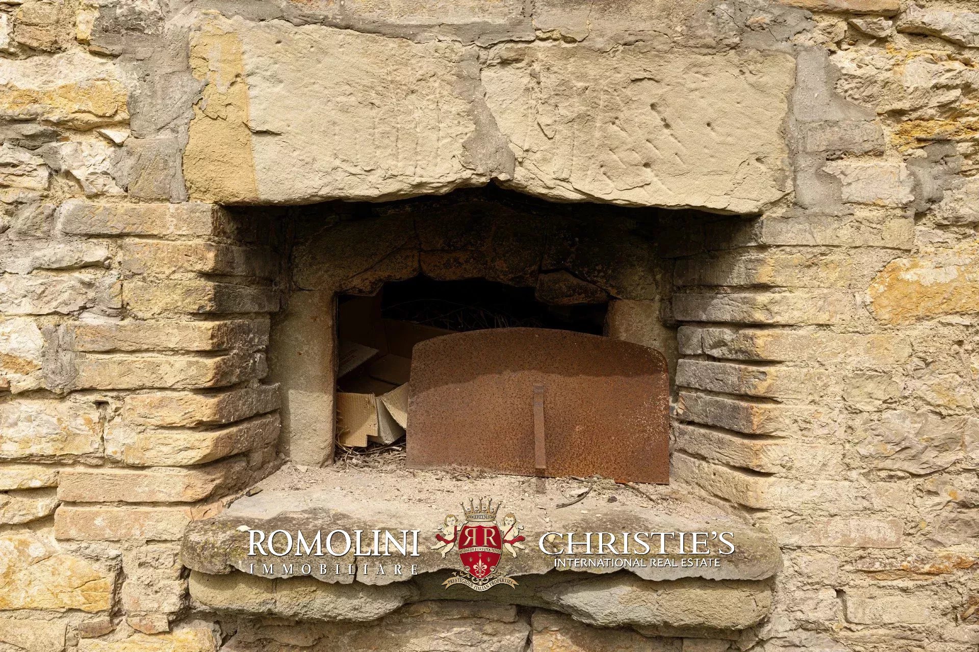 Le facciate esterne del casale sono rivestite in pietra tipica della zona, impreziosite da stuccature tono su tono che ne esaltano l’armonia cromatica. All'interno, i sottosolai presentano le tradizionali travature in legno, che conferiscono un tocco di autenticità e calore agli ambienti. Gli archi in mattoncini e le scale in cotto originale aggiungono un ulteriore elemento di charme e storicità.