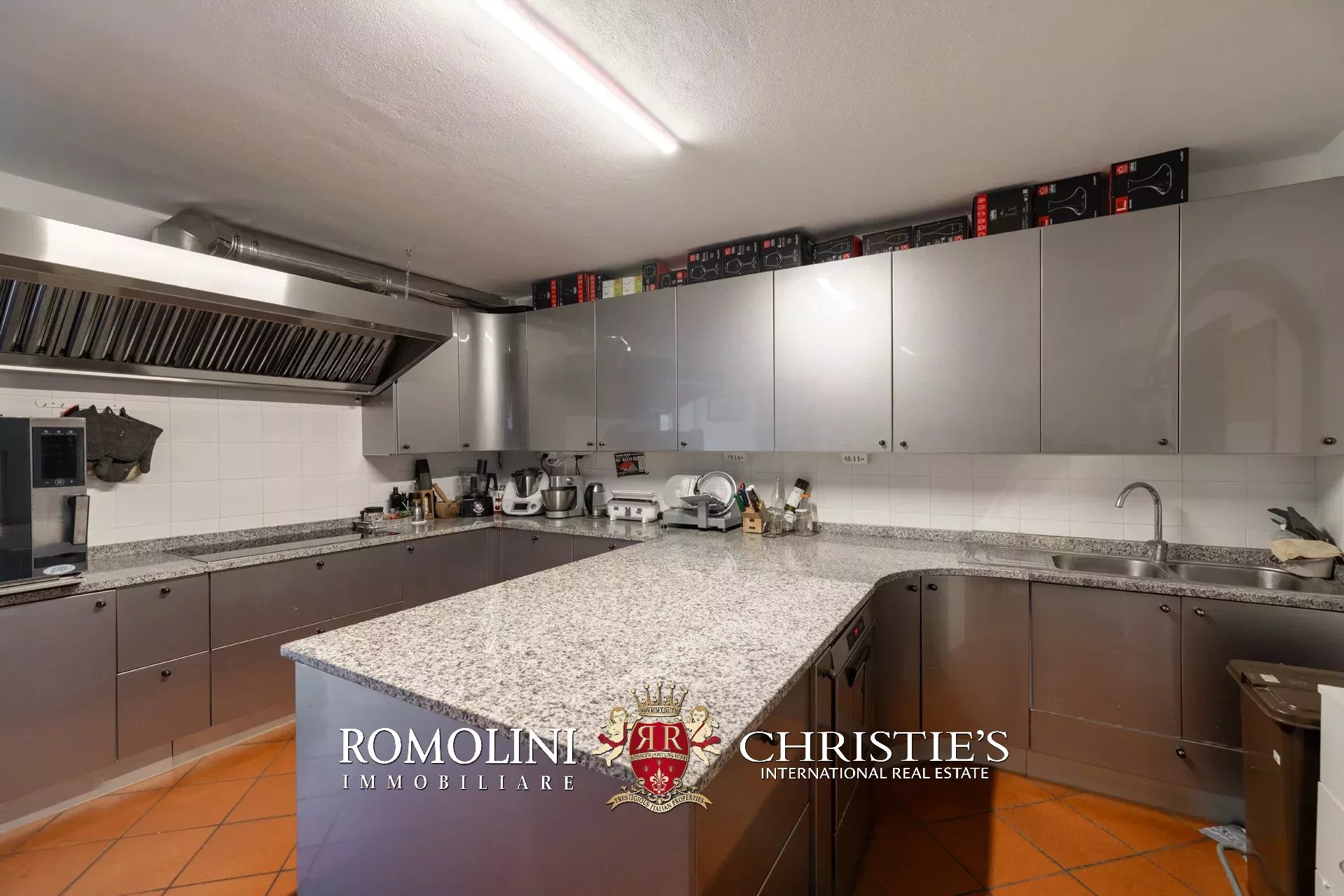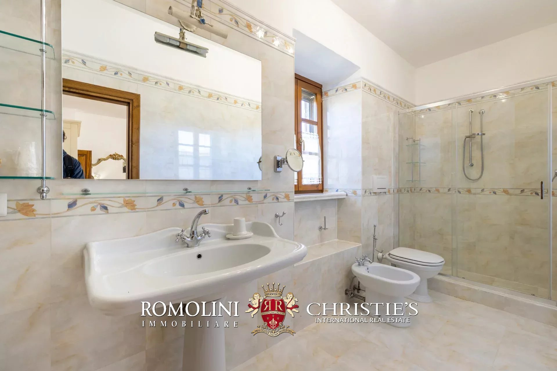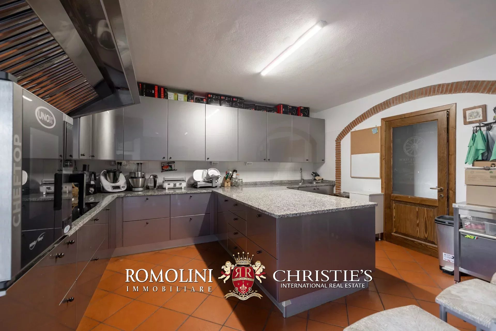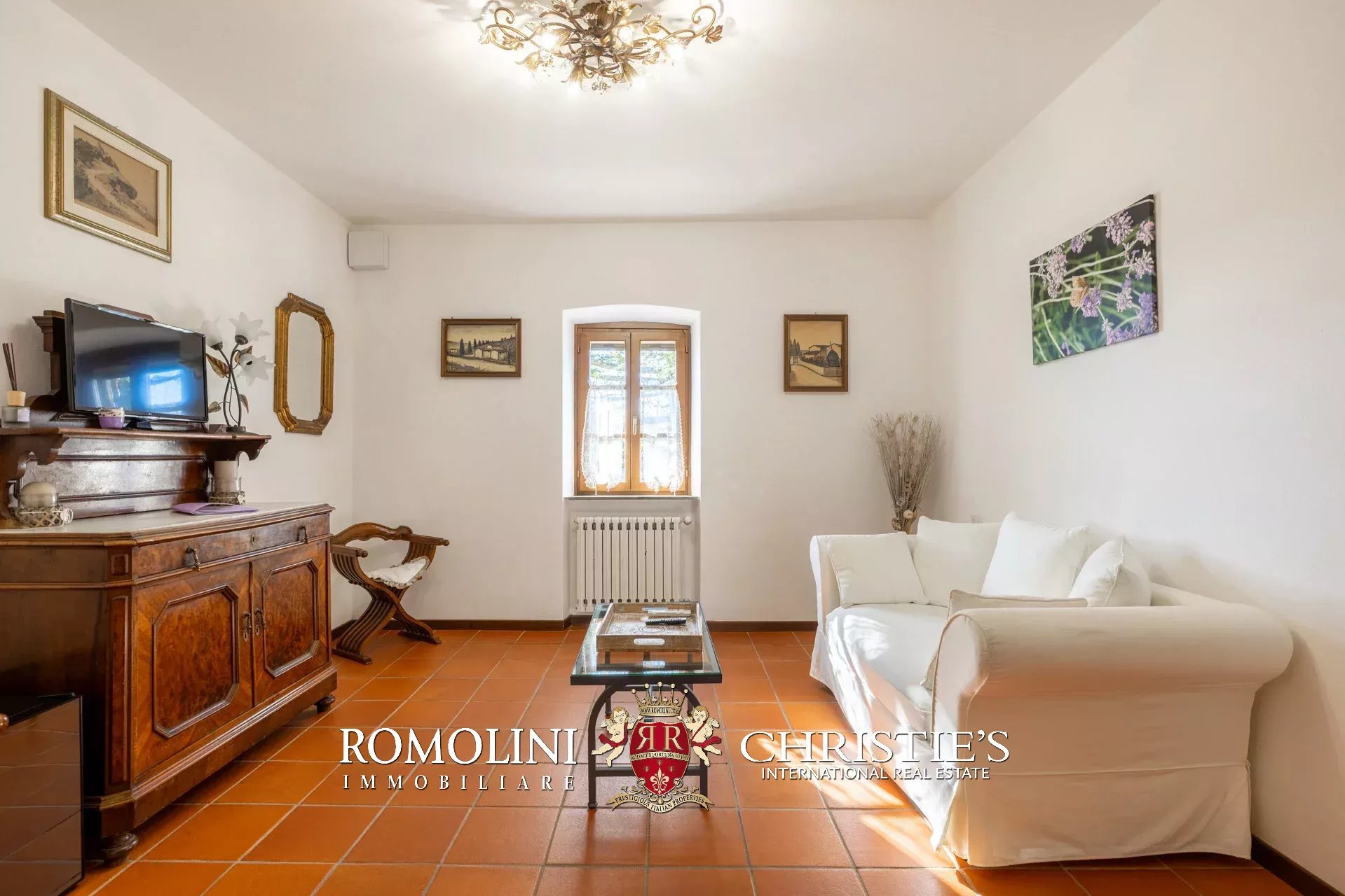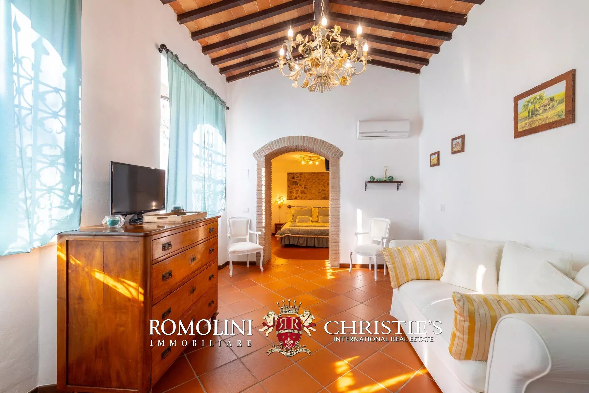 La villa (550 m², 5 camere e 6 bagni) è un grande edificio rustico in pietra, anticamente una torre longobarda, interamente ristrutturato nel 2021 e disposto su tre livelli. Al piano terra si trova un grande soggiorno con camino (originariamente la stalla per le vacche chianine da lavoro) disimpegno con forno a legna, cucina professionale con dispensa, bagno e camera con bagno en-suite corredata di zona giorno ricavata dalla chiusura di un’antica loggia. Un locale accessorio accessibile dall’esterno è dedicato a centrale termica ed accoglie la moderna ed efficiente caldaia a pellet utilizzata per il riscaldamento e la produzione di acqua calda sanitaria nella casa principale e nella dependance. Un portico di 45 m² completa l’edificio sul lato sud.