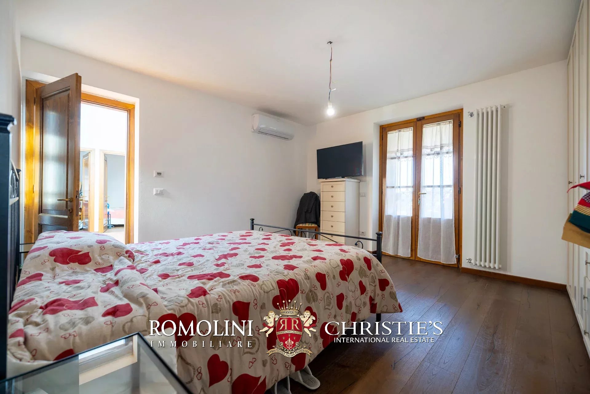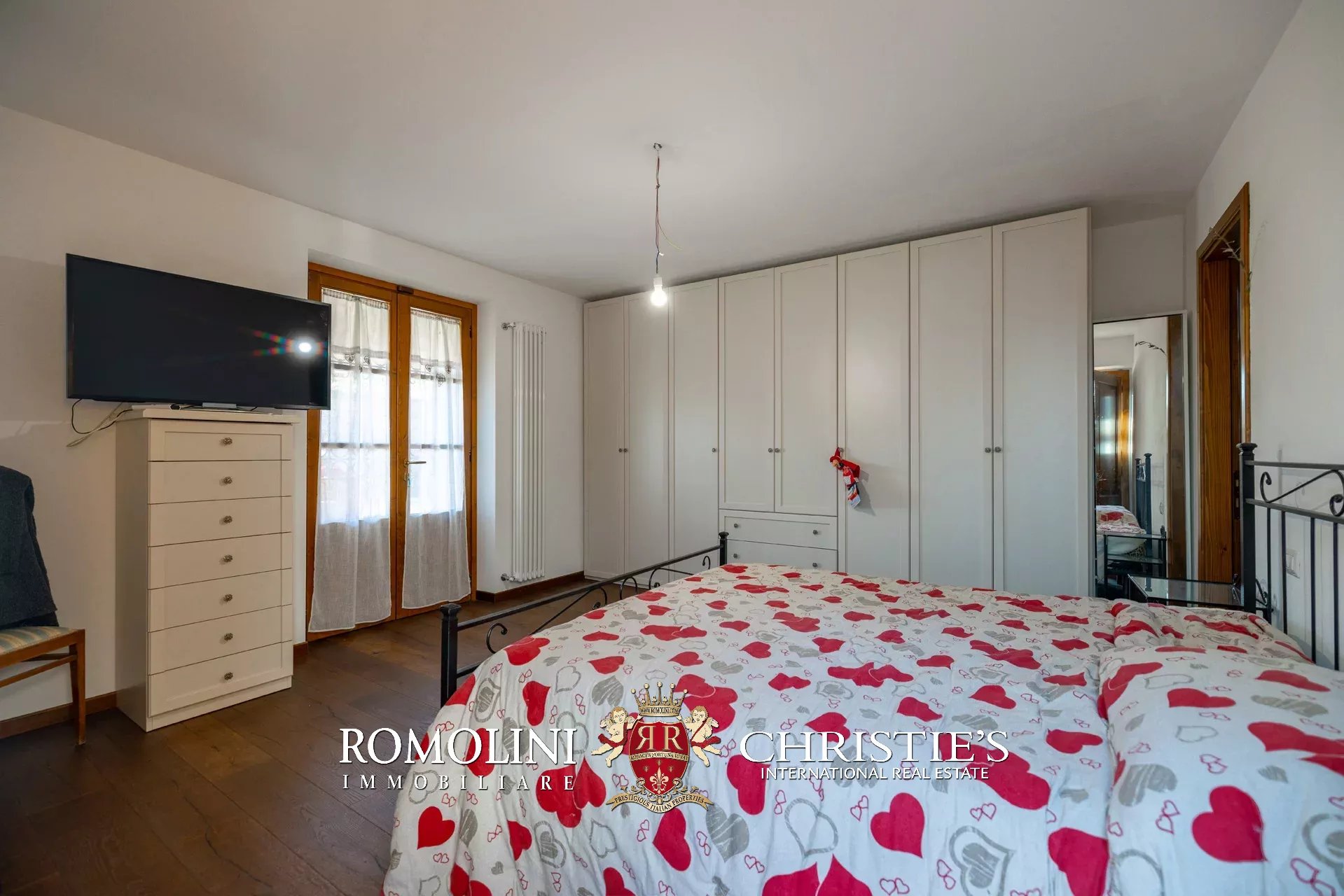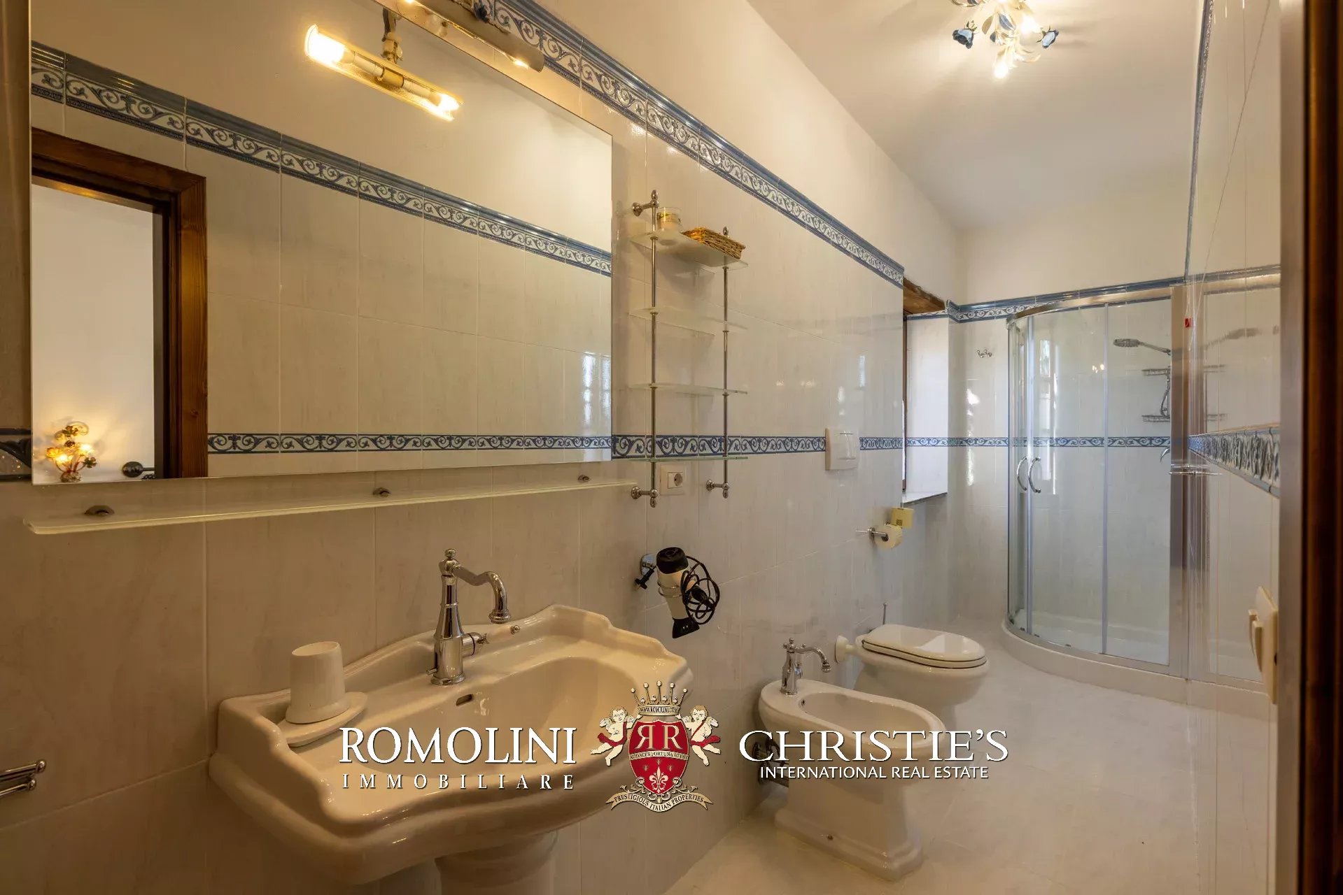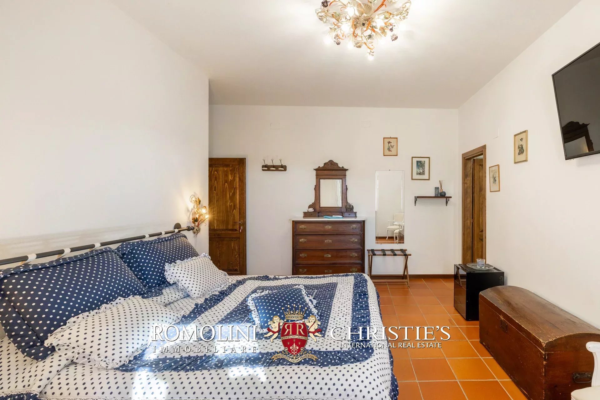 Al piano superiore, il disimpegno centrale conduce a una graziosa sala TV con camino e a quattro camere con bagno en-suite, due delle quali collegate a delle mansarde esclusive molto utili come depositi e/o cabine armadio.