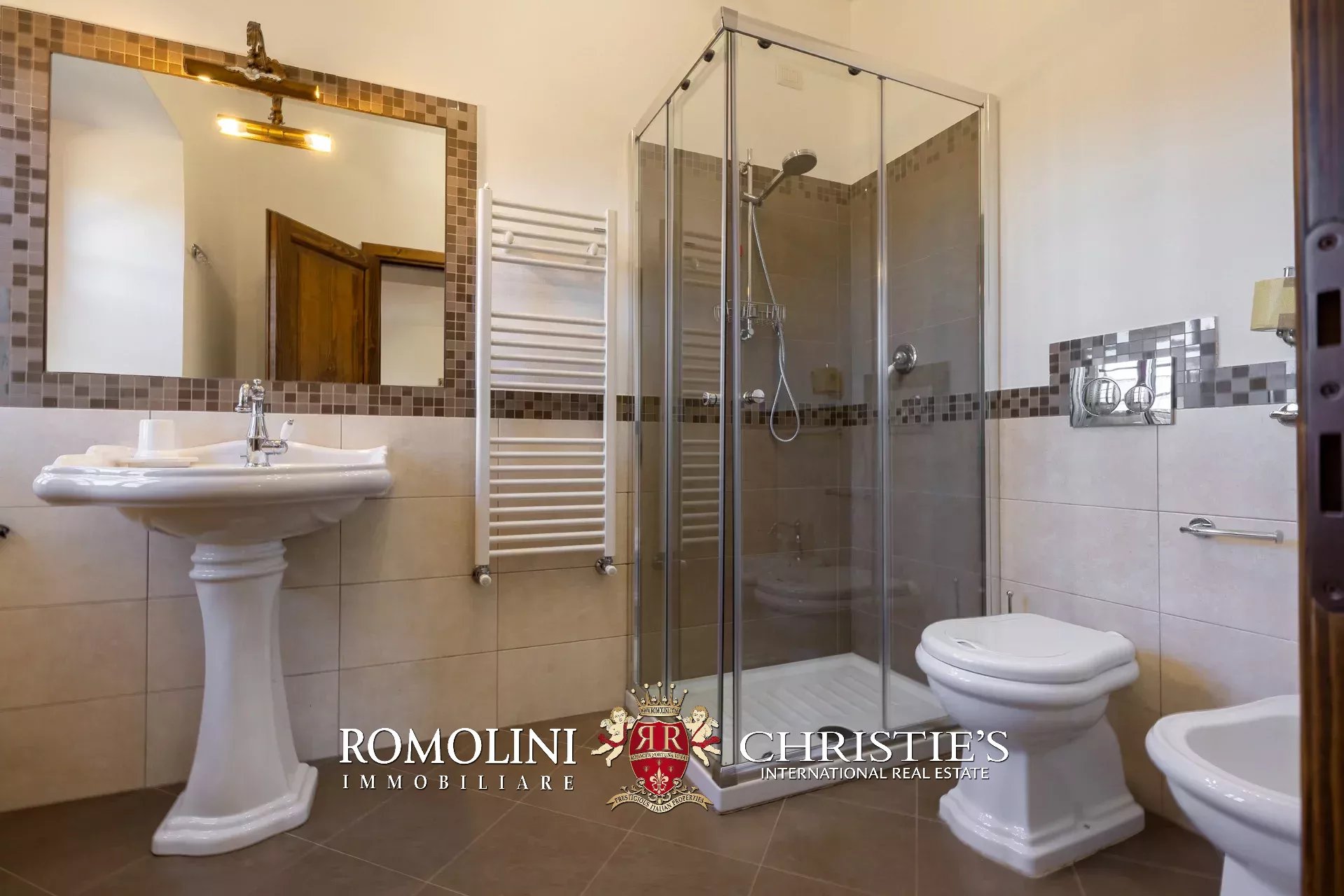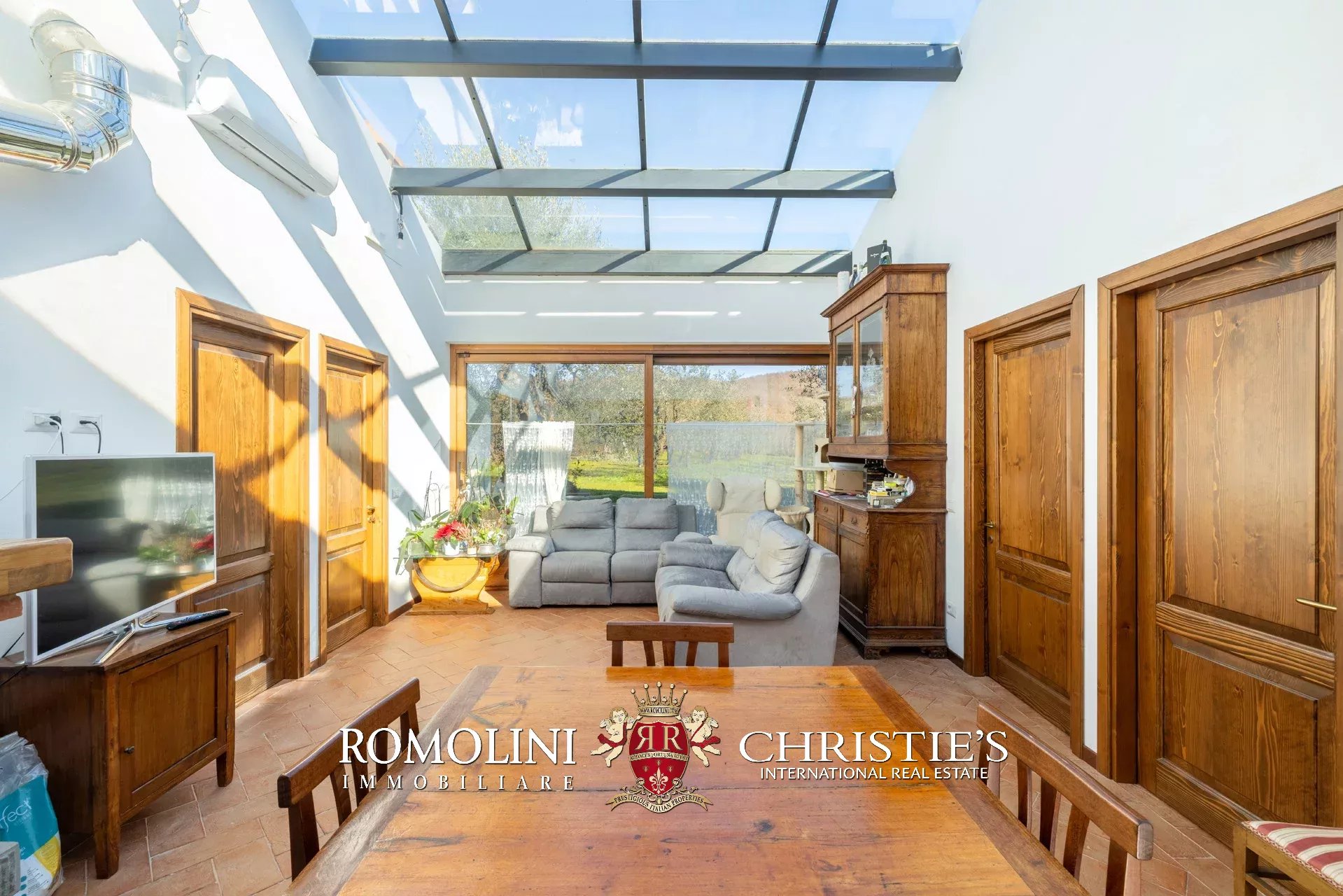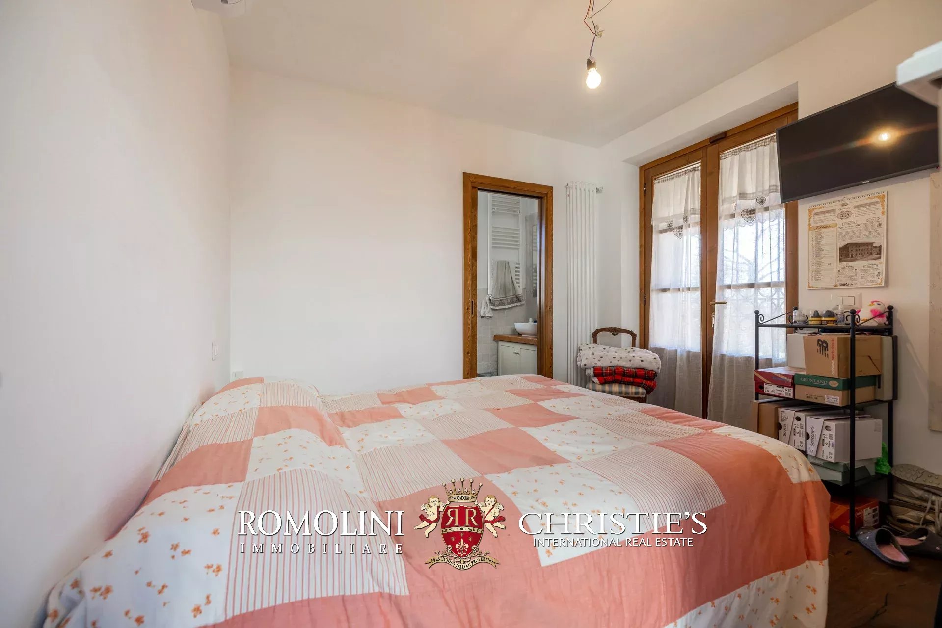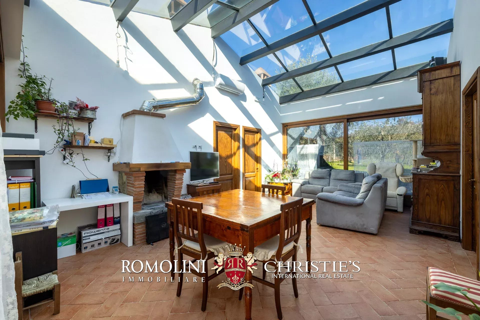 Al piano superiore, il disimpegno centrale conduce a una graziosa sala TV con camino e a quattro camere con bagno en-suite, due delle quali collegate a delle mansarde esclusive molto utili come depositi e/o cabine armadio.