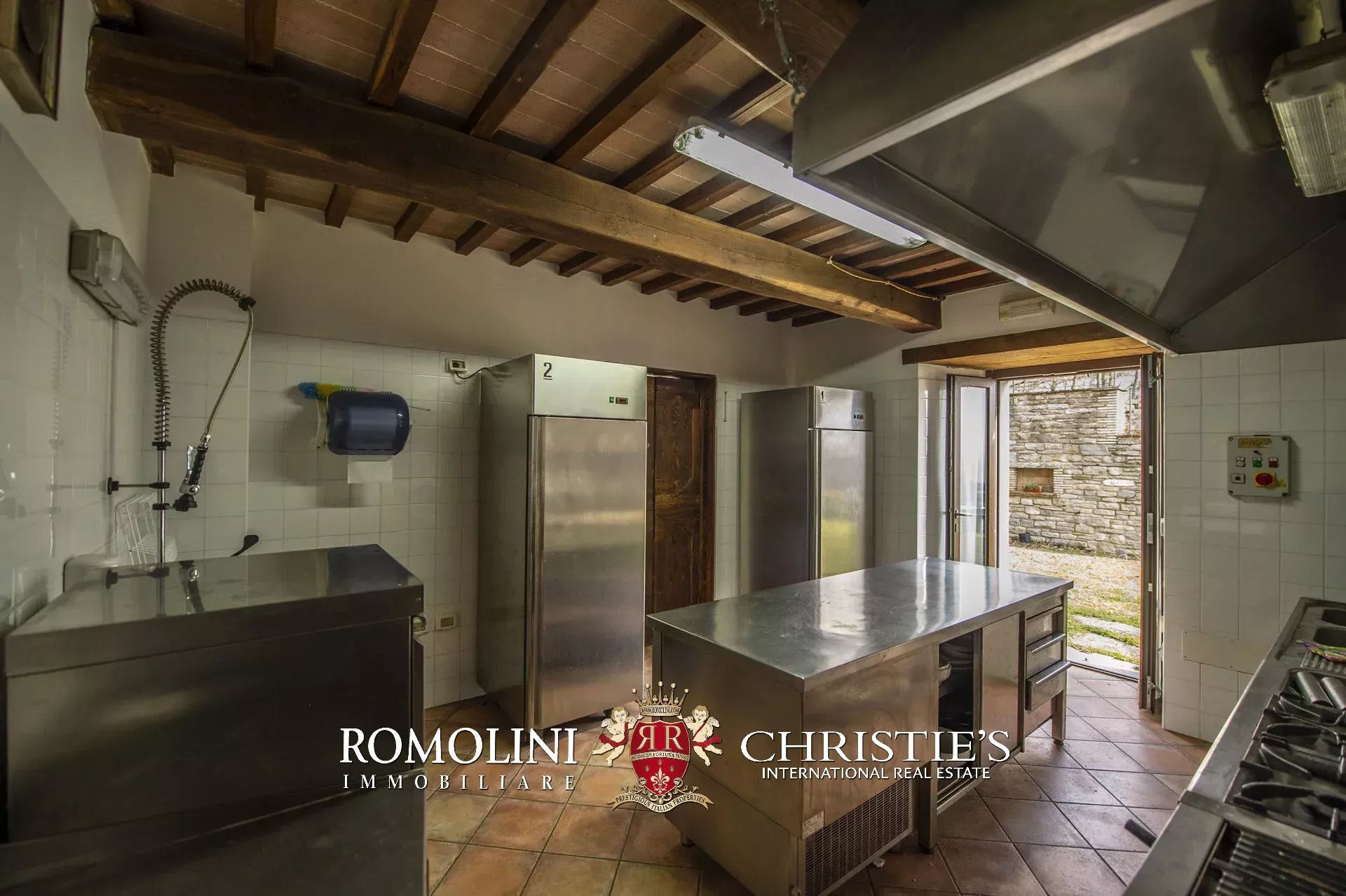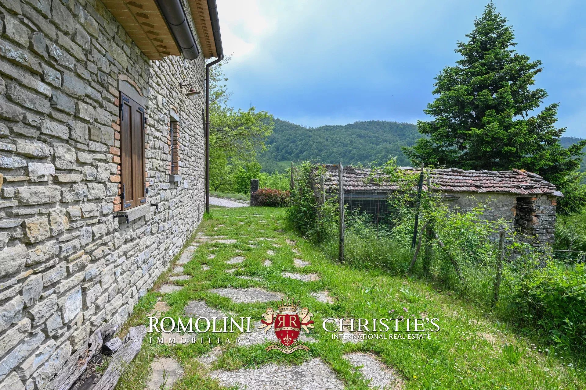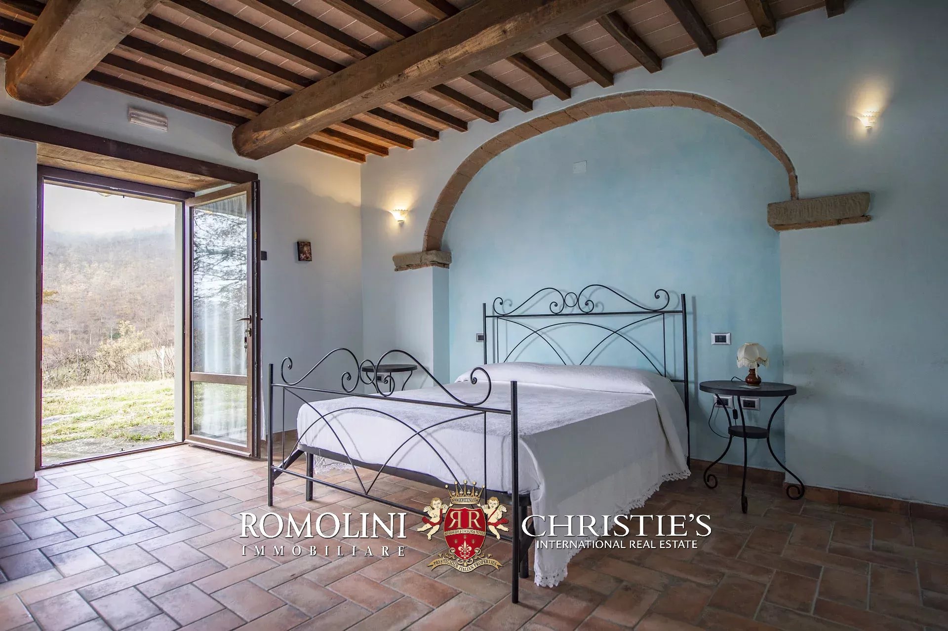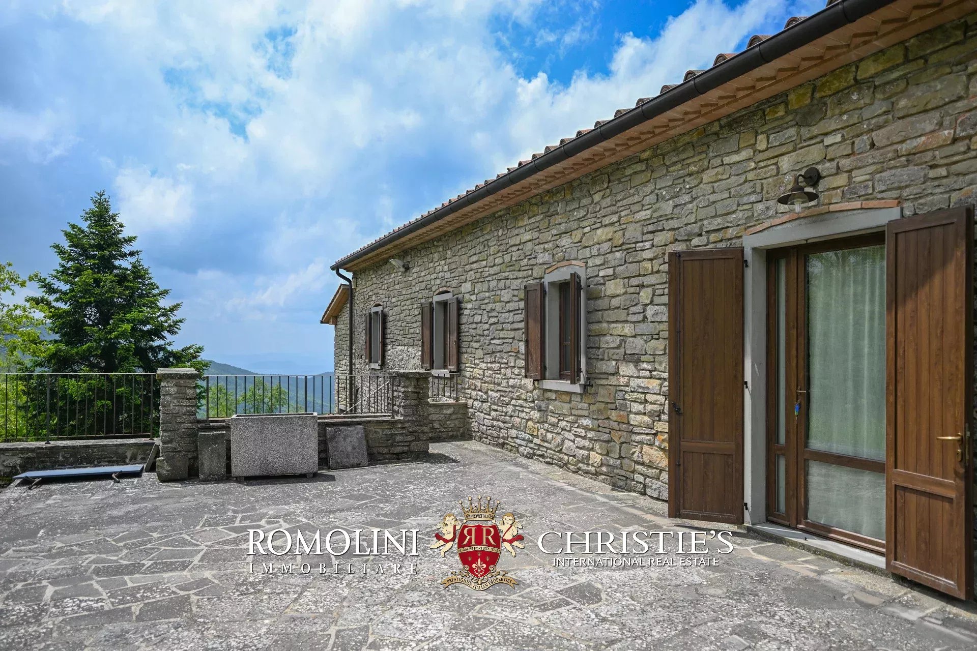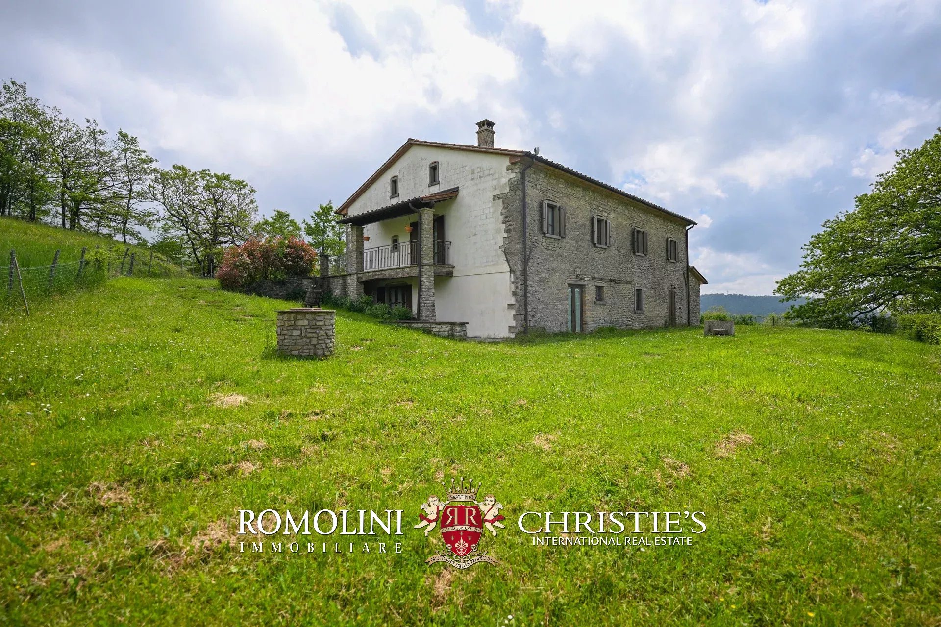 In posizione riservata ma molto panoramica sulle colline tra Umbria e Marche, a 800 m sul livello del mare, casa colonica ristrutturata in vendita, attualmente usata come agriturismo. La proprietà dispone di 7 camere (inclusi due appartamenti indipendente) oltre a una grande sala ristorante al piano terra. La proprietà è circondata in gran parte da pascoli e boschi con piante tipiche della zona, frequentati dalla fauna locale (cinghiali, lepri, daini, istrici).
