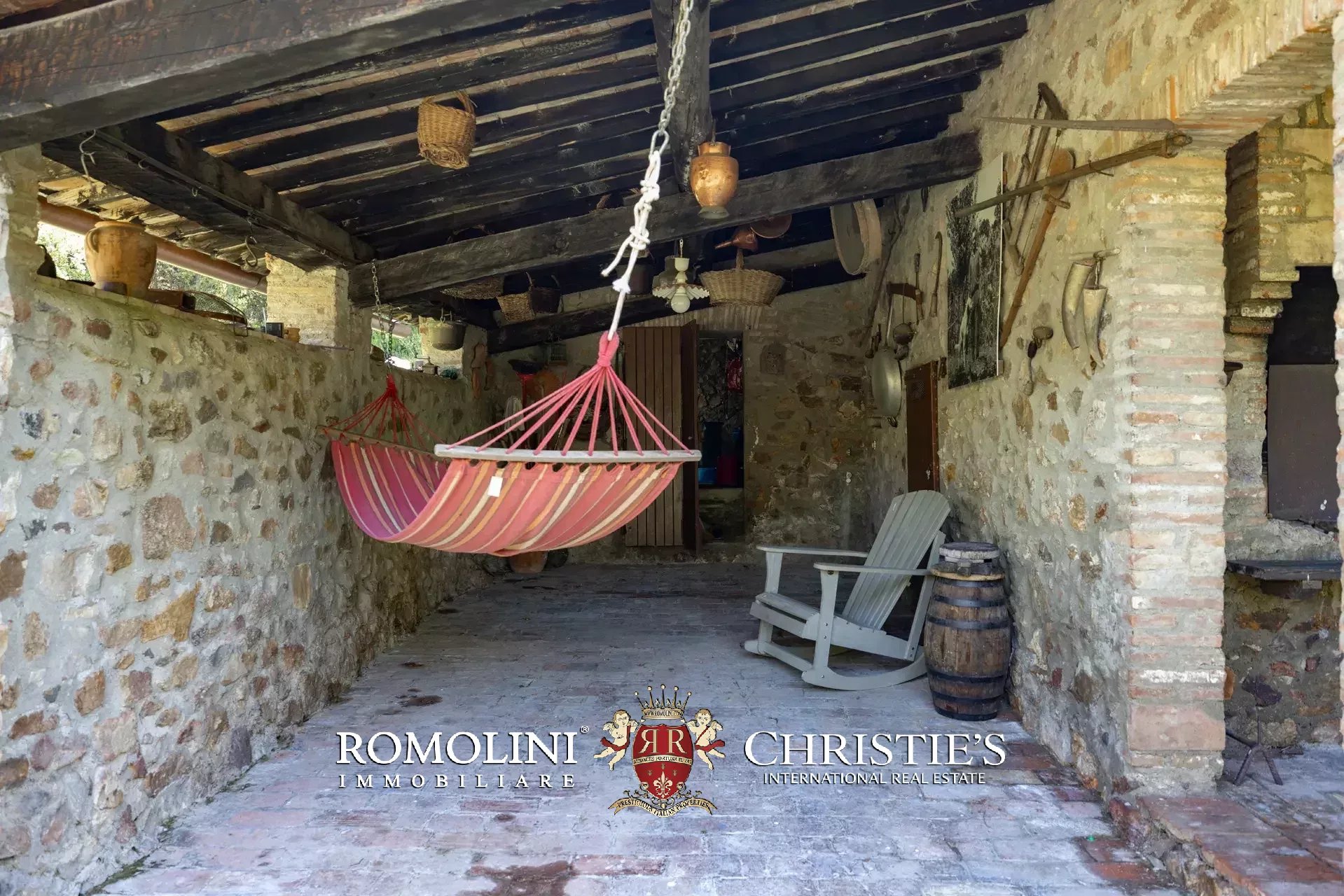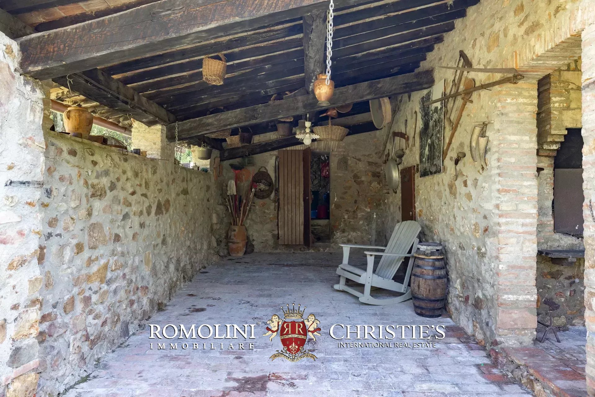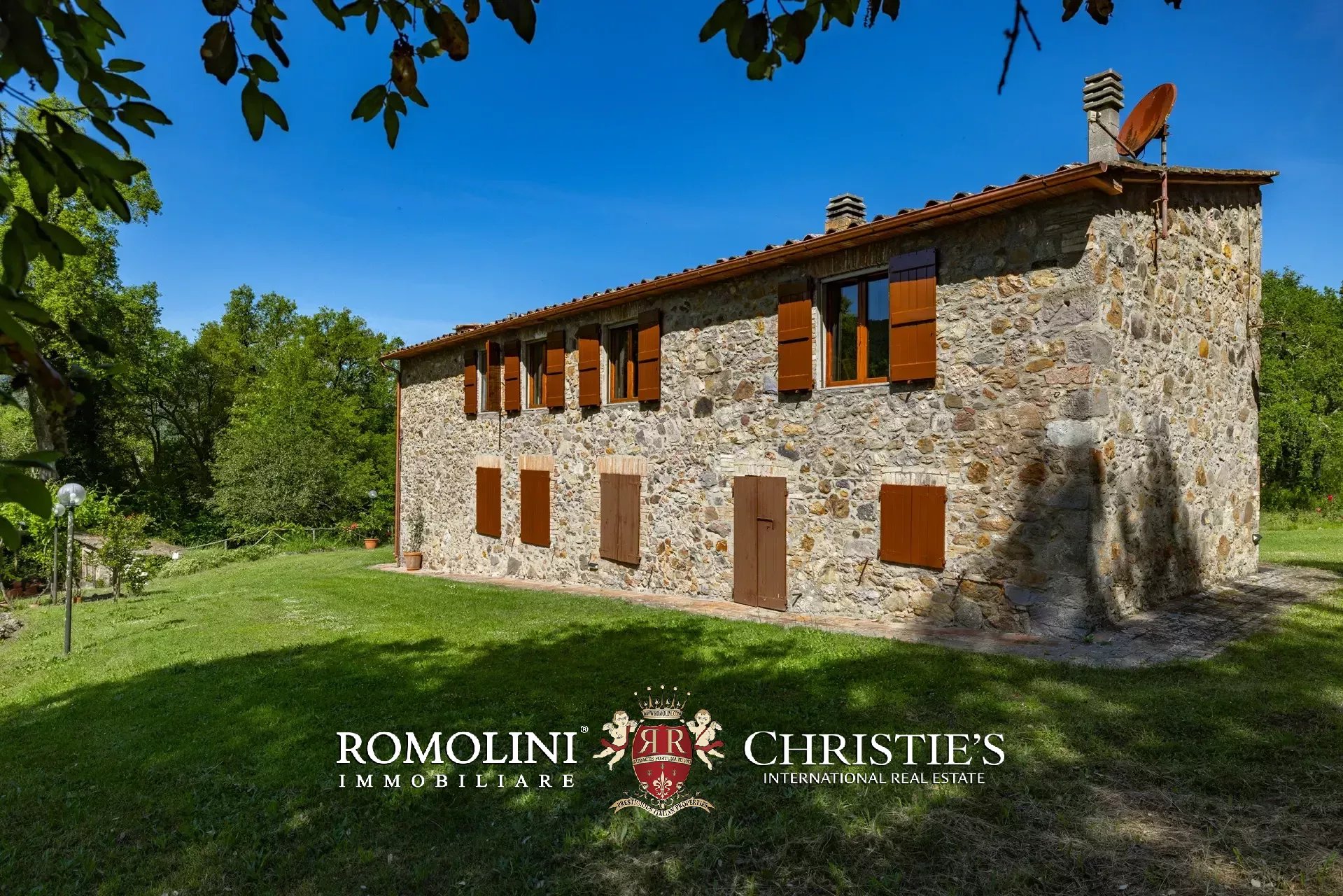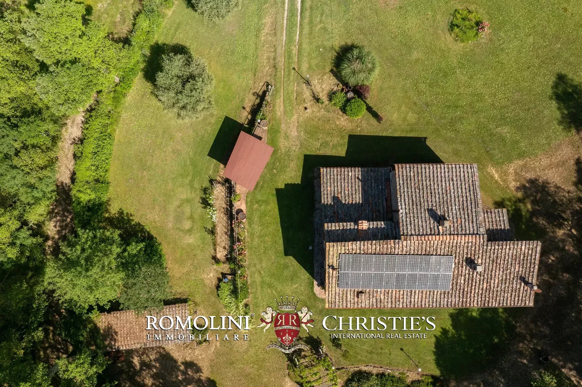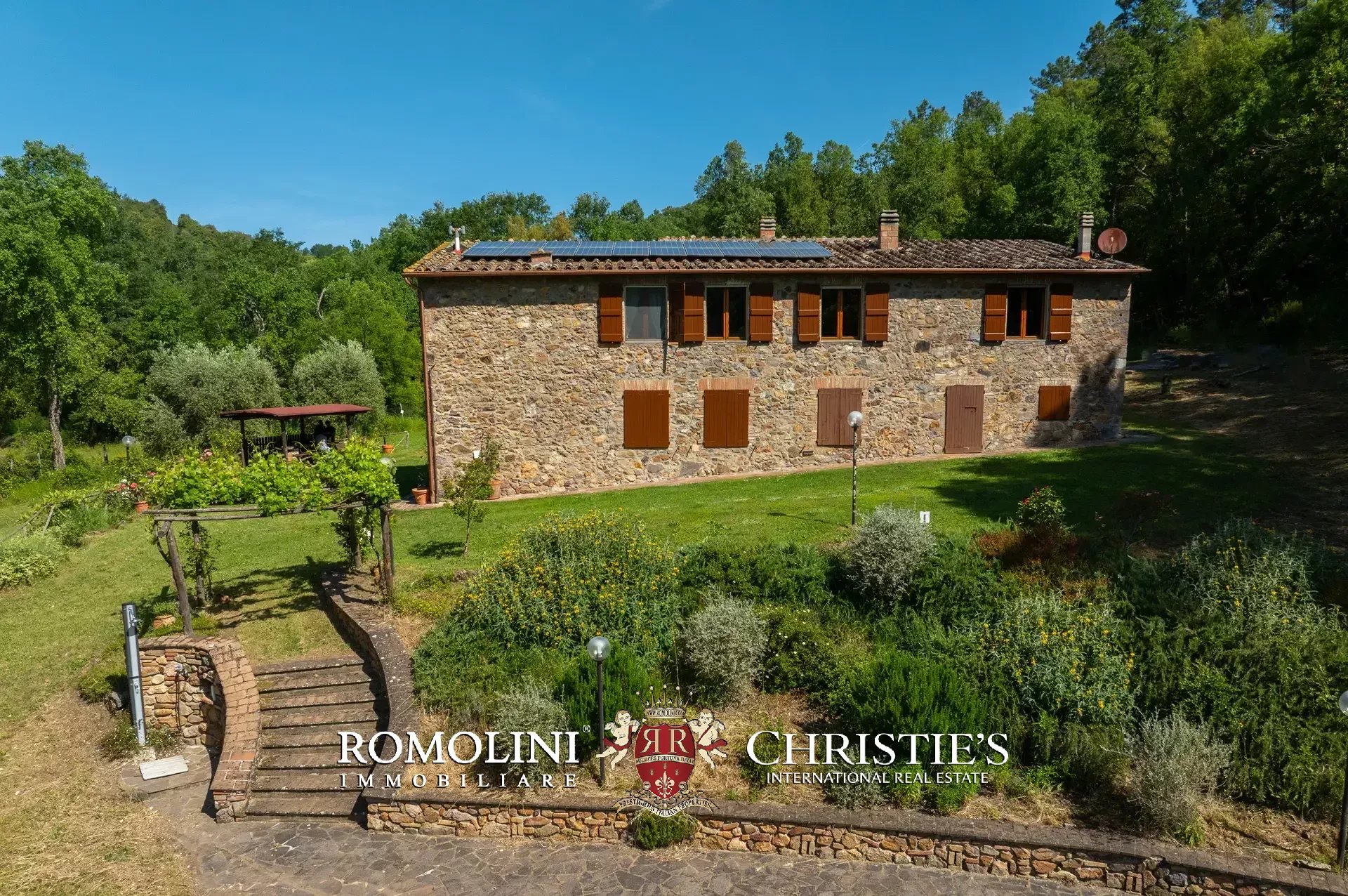 Il casale è circondato da 7.100 m² di giardino, ben curato e interamente recintato a protezione contro gli animali selvatici. A breve distanza dall’edificio trovano posto una bella piscina 12 × 6 m illuminata e una pergola con forno a legna, ideale per cene e aperitivi all’aperto.