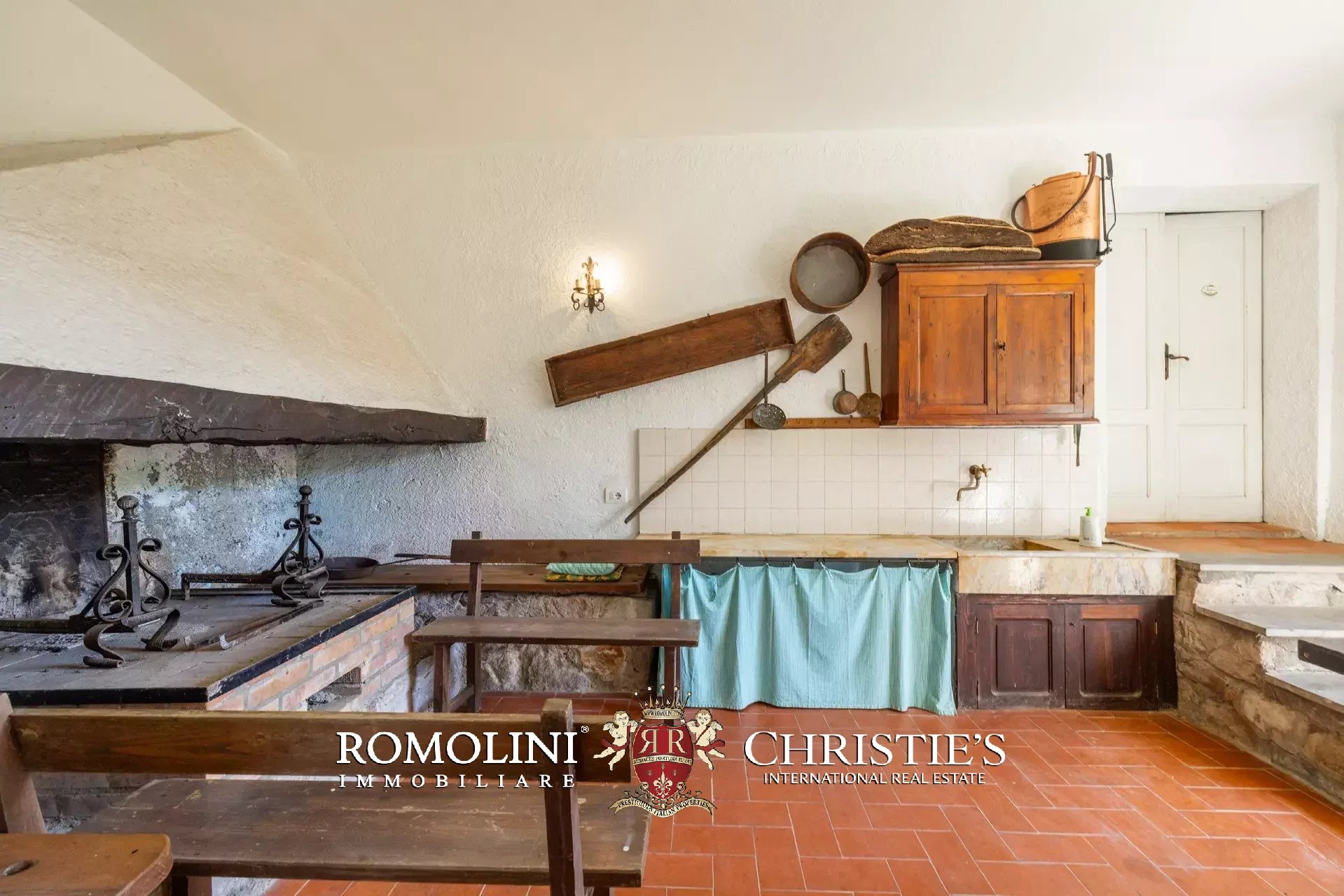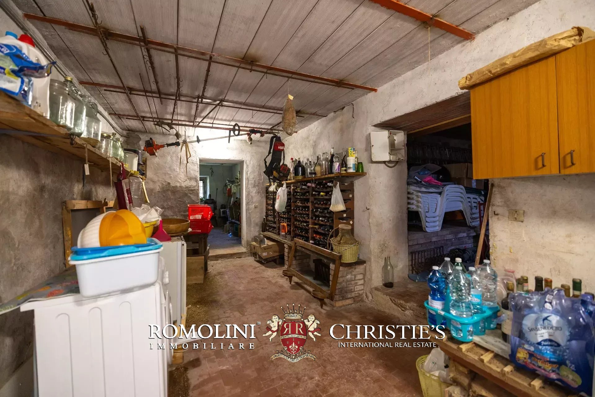 - Piano terreno: stanza rustica adibita a soggiorno con zona pranzo e accesso su un porticato con tavolo, sedie e antico forno a legna, cucina e bagno con doccia;