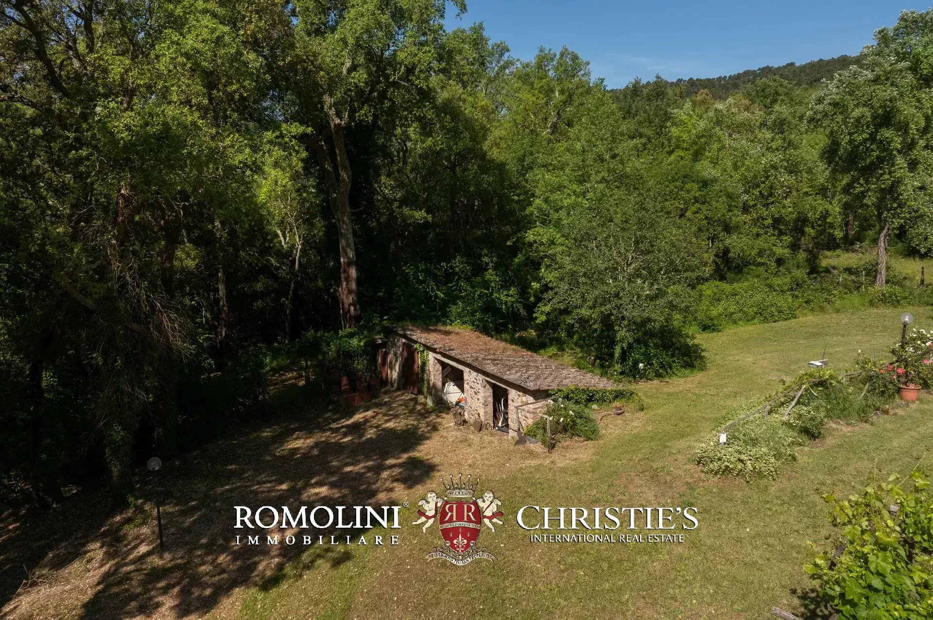 Completano la proprietà le vecchie stalle per gli animali (43 m²) poste ai margini del giardino e un capanno agricolo (41 m²) situato in una piccola radura nel bosco, non troppo lontano dal casale.