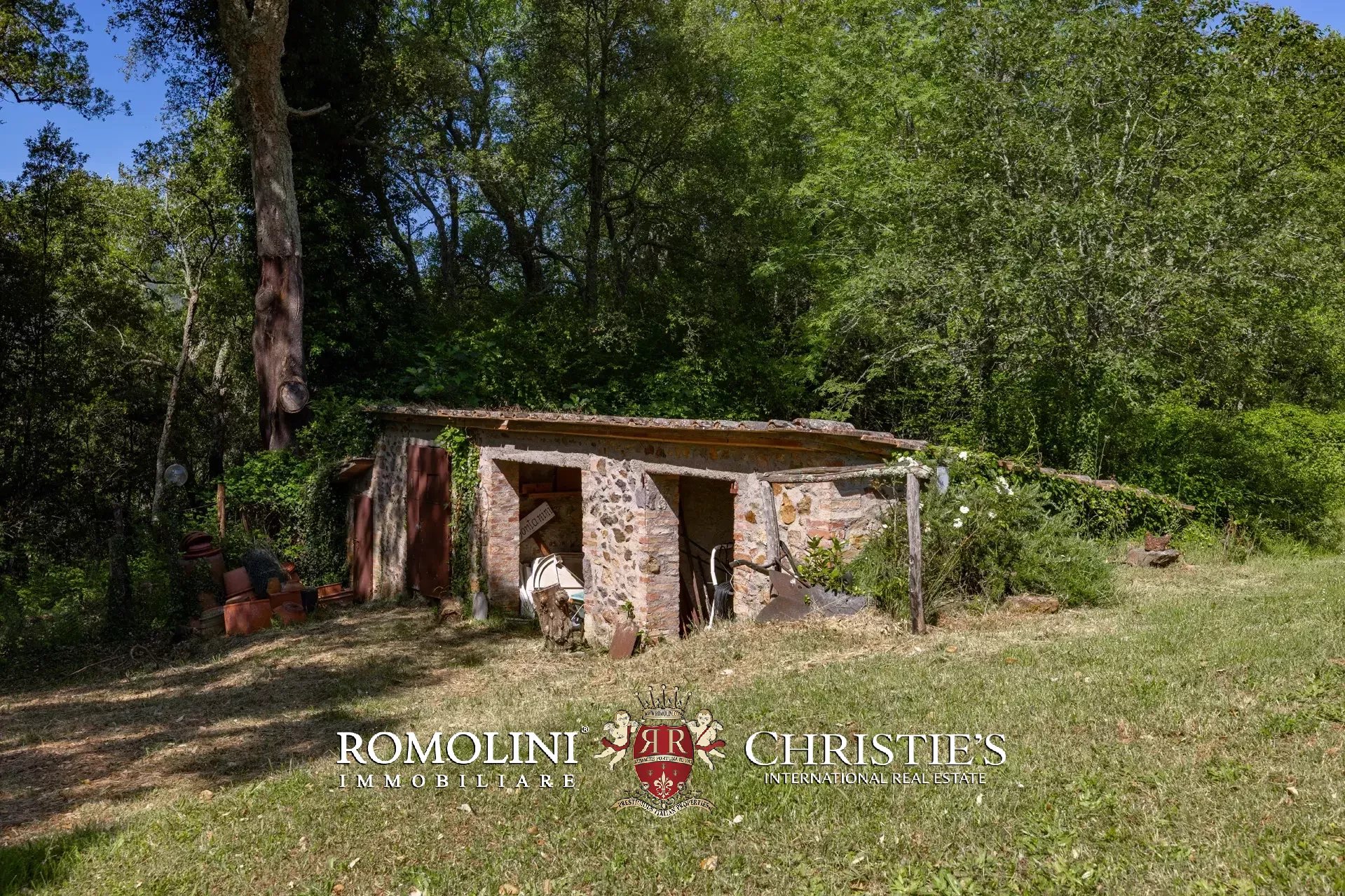 In posizione tranquilla e isolata, in un verde bosco di piante di sughero, casale rustico con piscina in vendita. L’immobile (290 m²) è stato usato in passato come casa vacanze e attività ricettiva; seppur abitabile, l’edificio necessita di alcuni lavori di ammodernamento. Attorno all’edifici si stende un giardino di 7.100 m² circondato da boschi per oltre 50 ettari, il tutto all’interno della Riserva Naturale della Val di Farma.