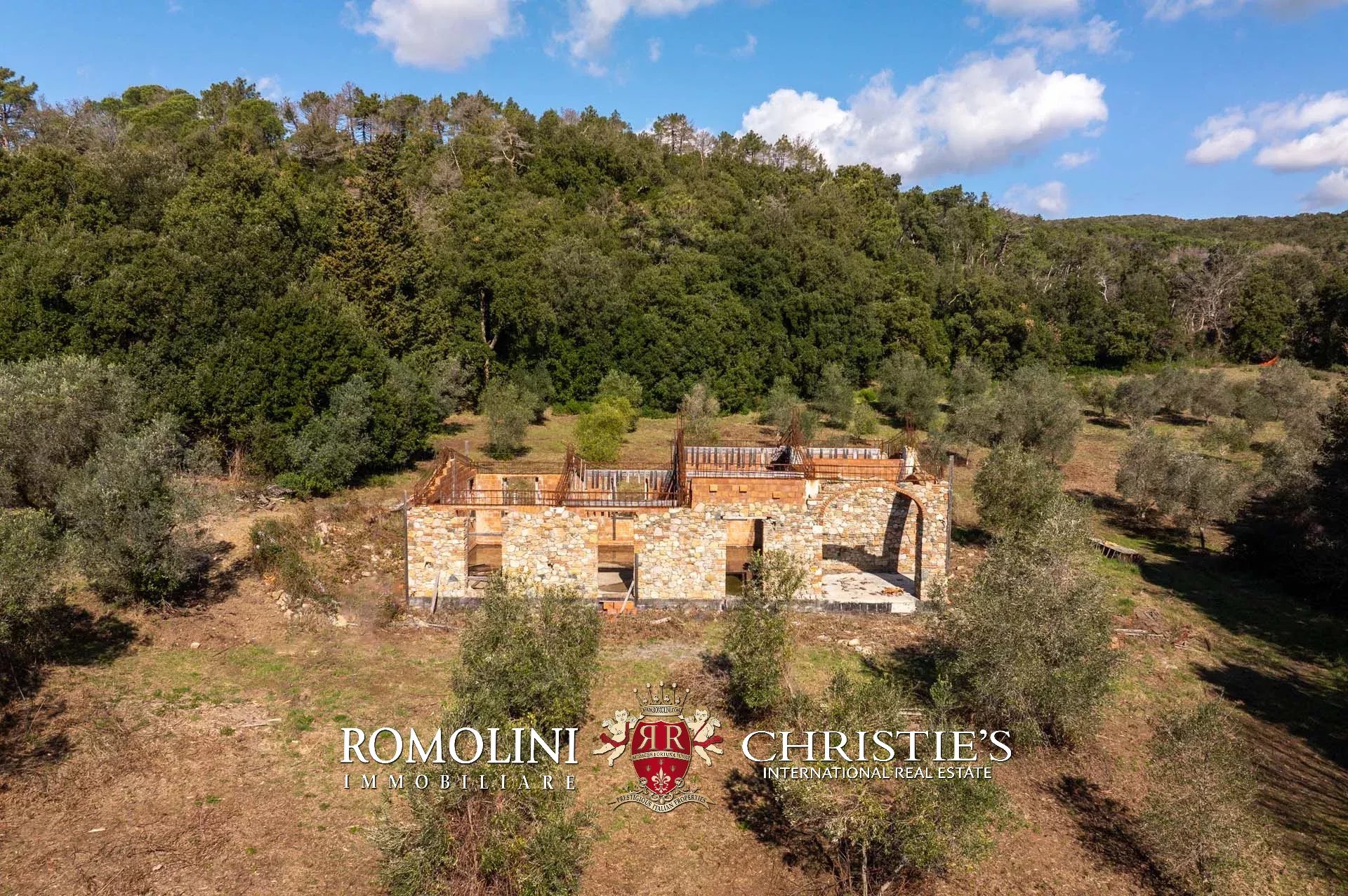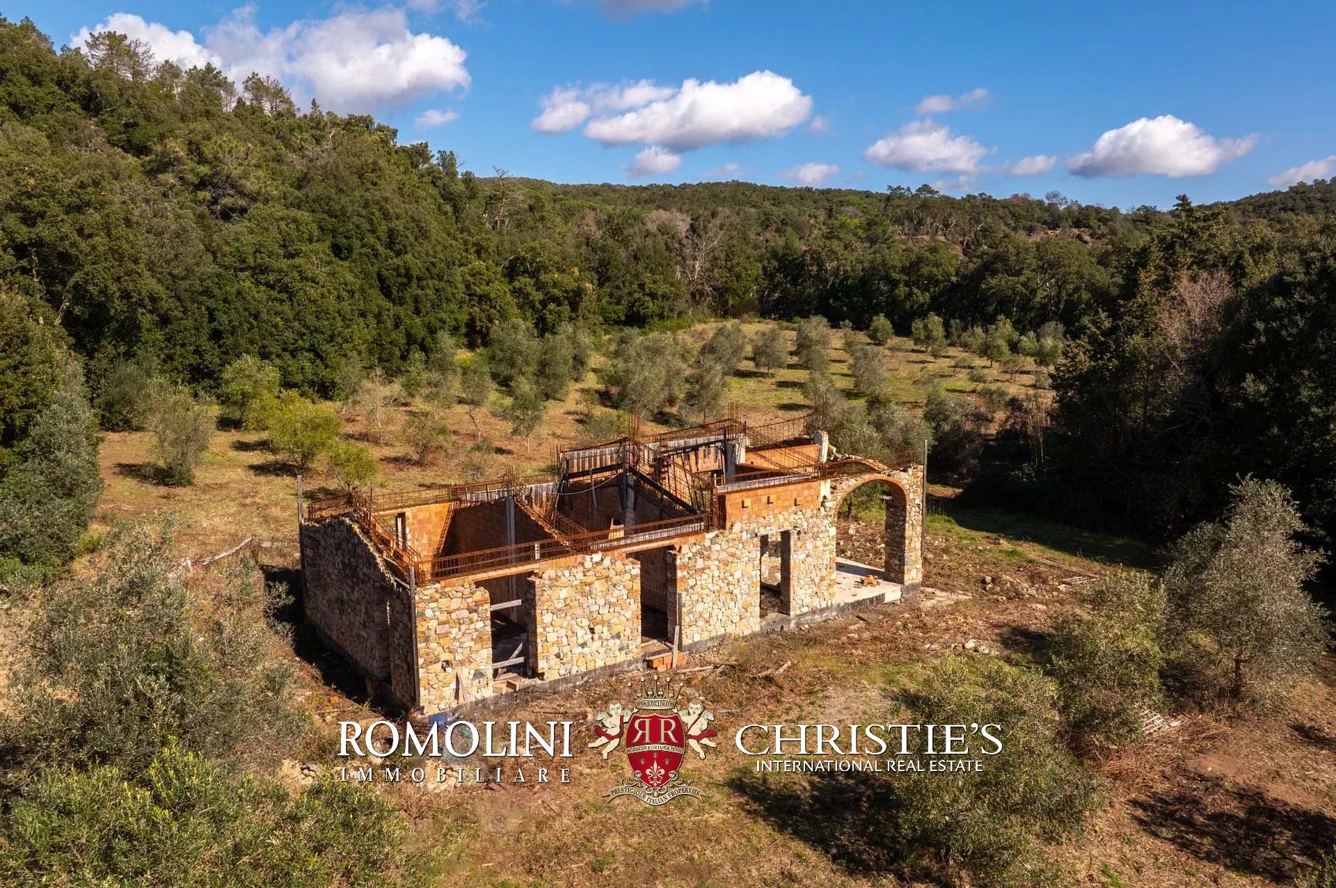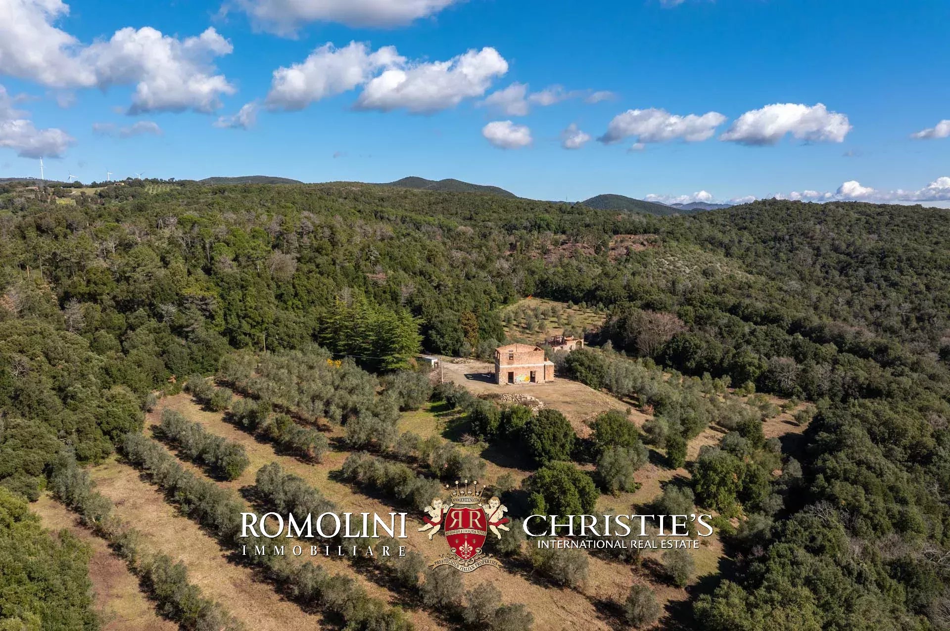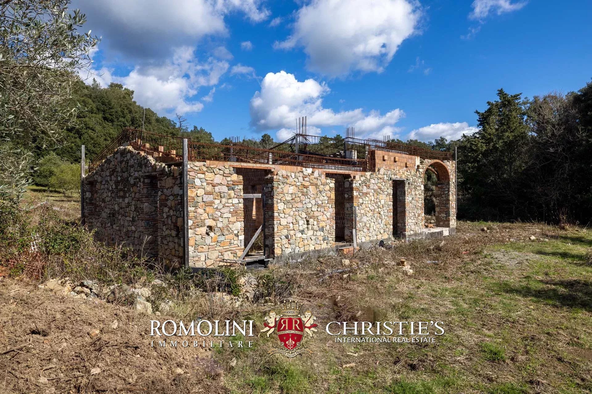 Sulle colline di Cecina, a pochi chilometri dal mare e in posizione panoramica, casale da completare in vendita. La proprietà include, oltre al casale, una dependance e progetti approvati per la realizzazione di garage e piscina (per un totale di oltre 600 m² e 7 camere).