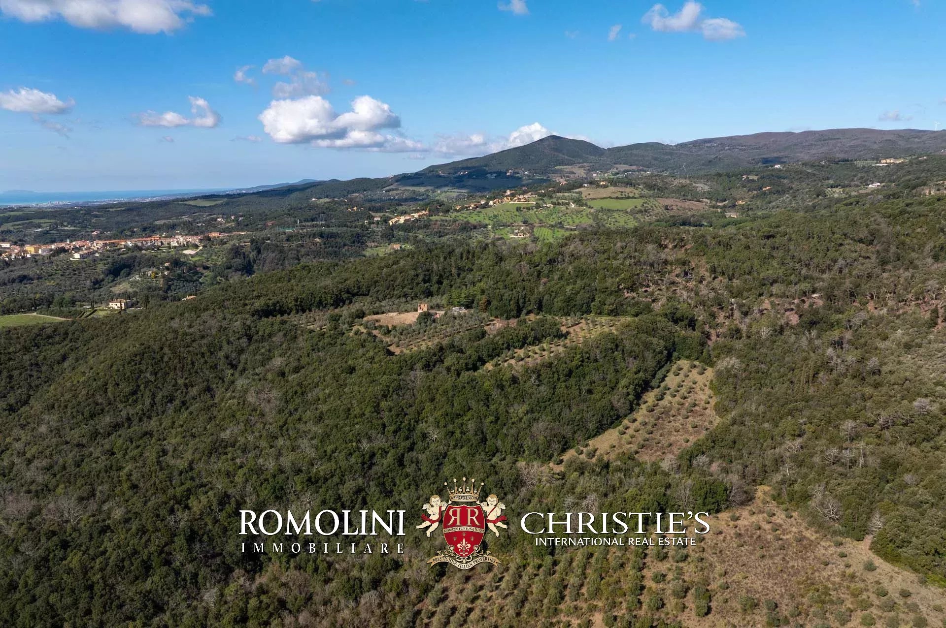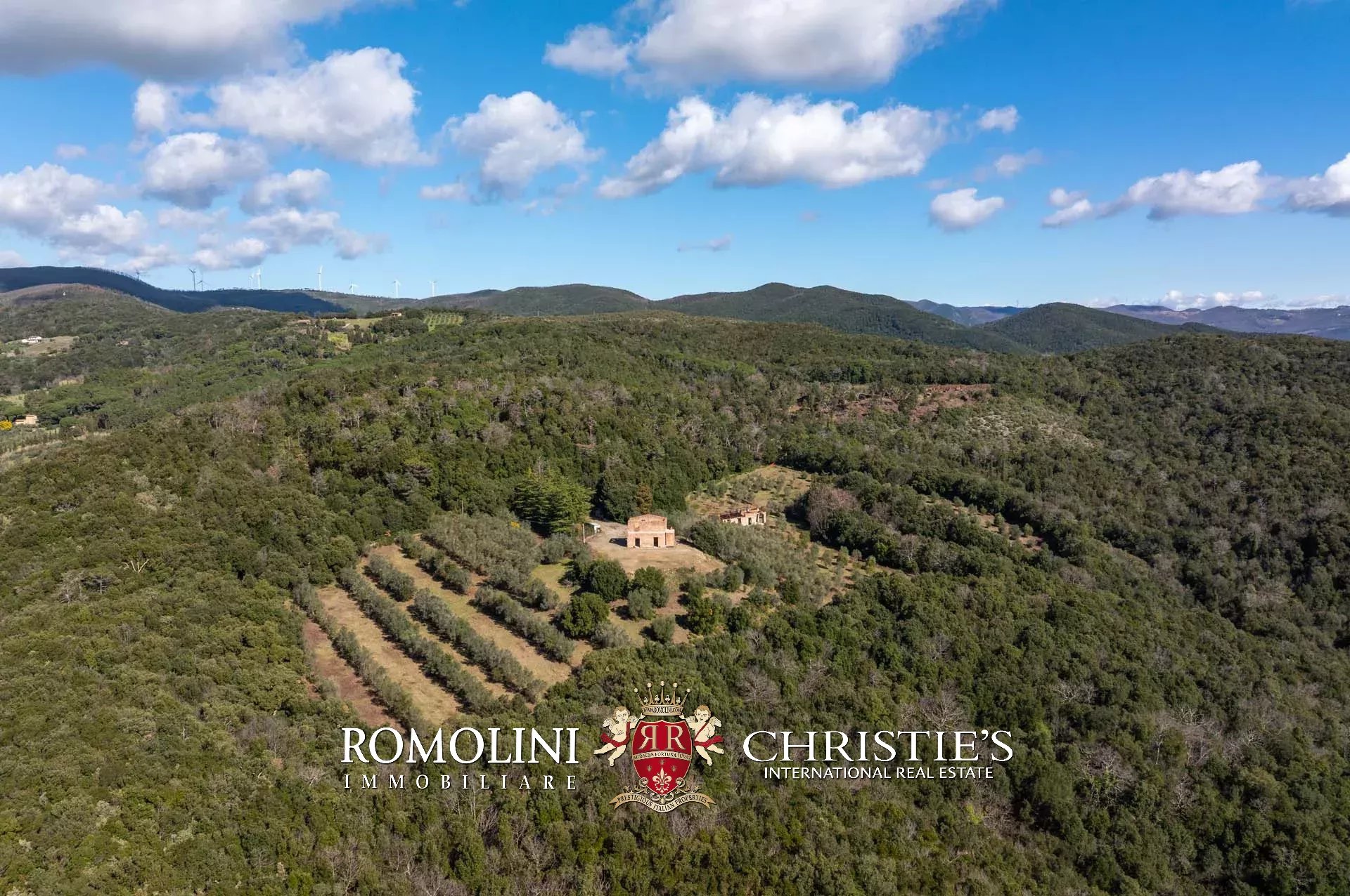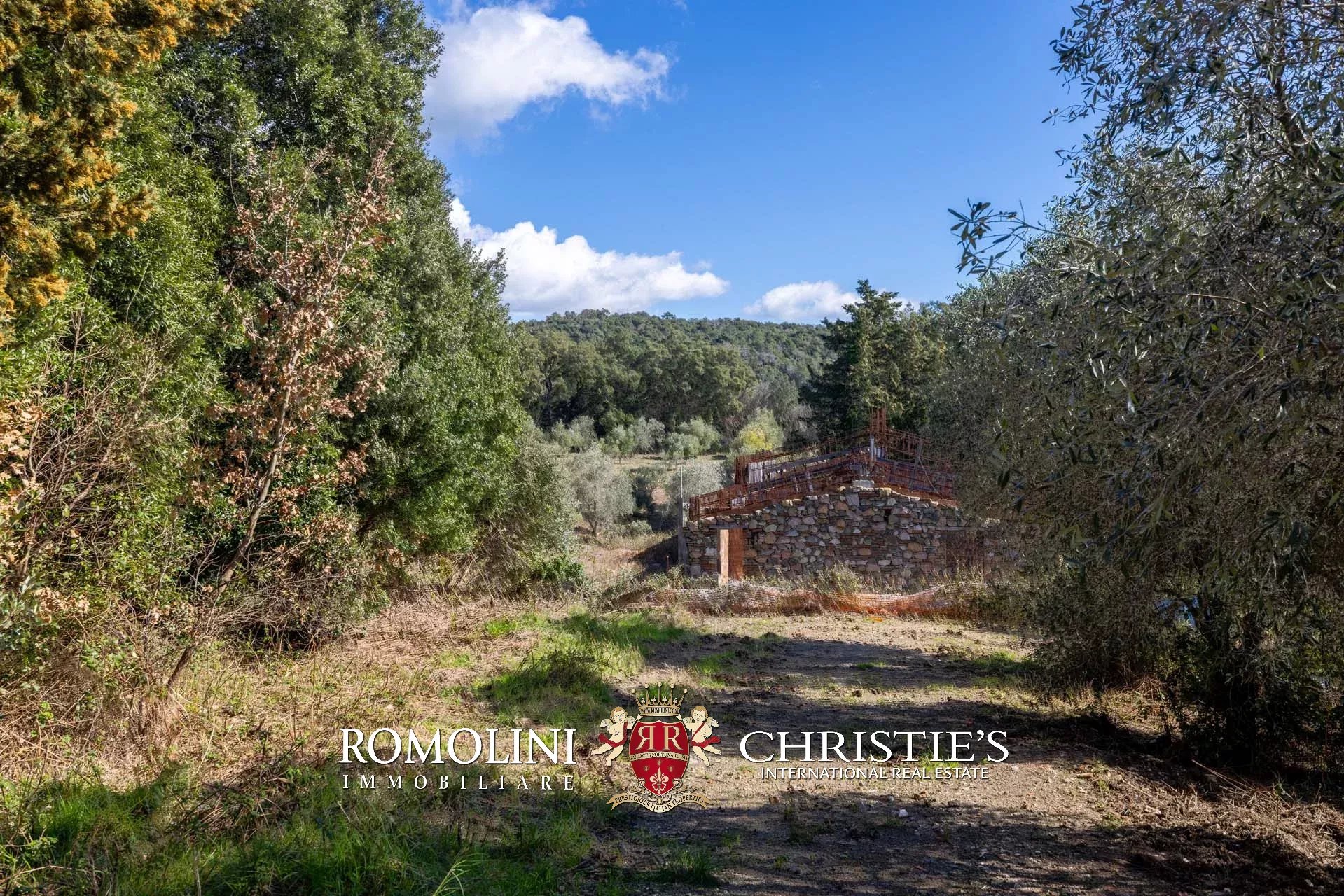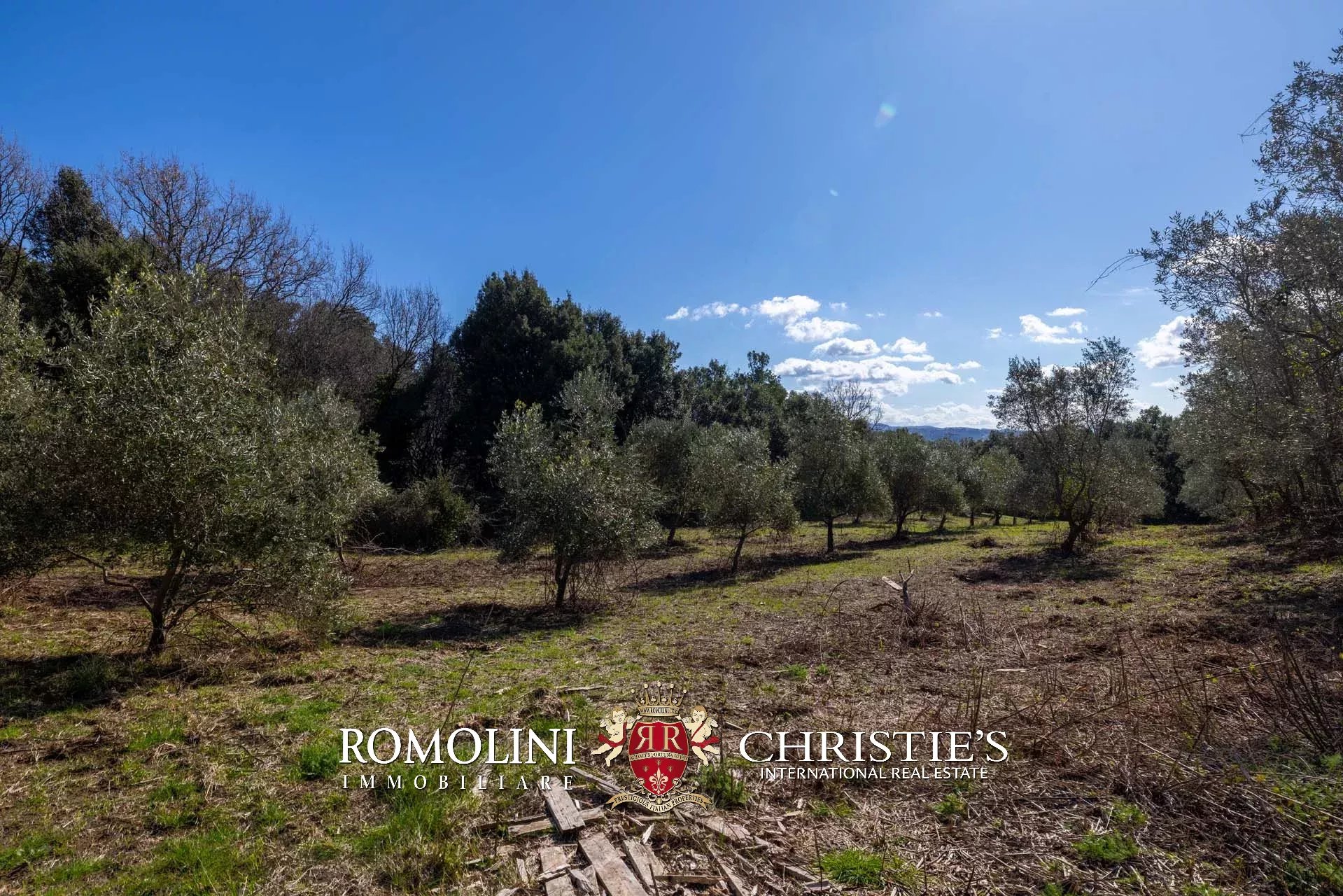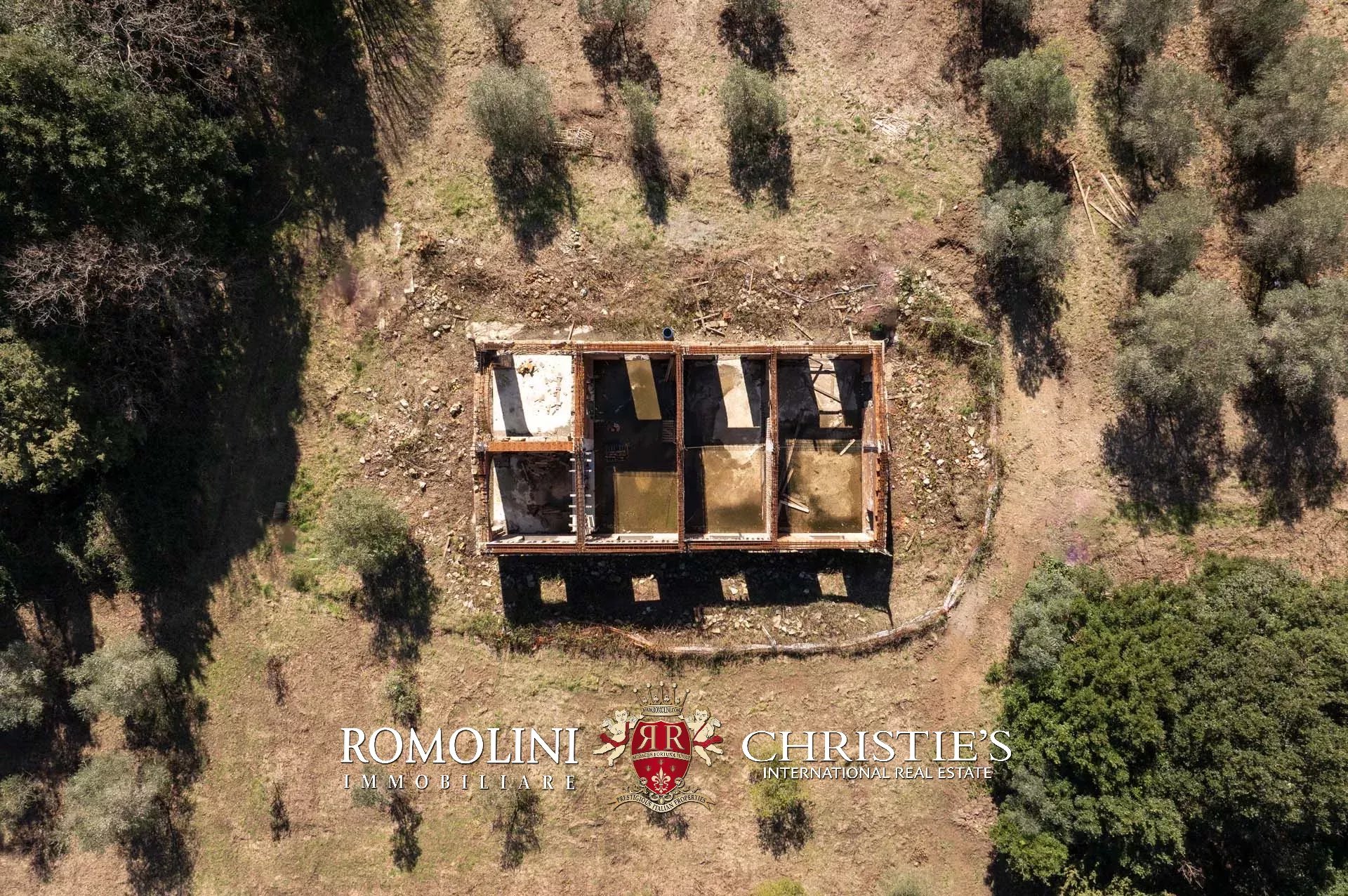Il casale si trova in collina, circondato da circa 50,7 ettari di terra. Il giardino (ancora da realizzare) dovrebbe avere una superficie di circa 2.000 m² e andrebbe a trovarsi attorno al casale, incorniciato dagli ulivi di proprietà (circa 2,2 ha in totale). Porzioni di seminativo (3,6 ha) sparse per la tenuta permetterebbero di impiantare nuove colture, tra cui una vigna che godrebbe dell’ottimo clima mitigato dal vicino Mar Tirreno.