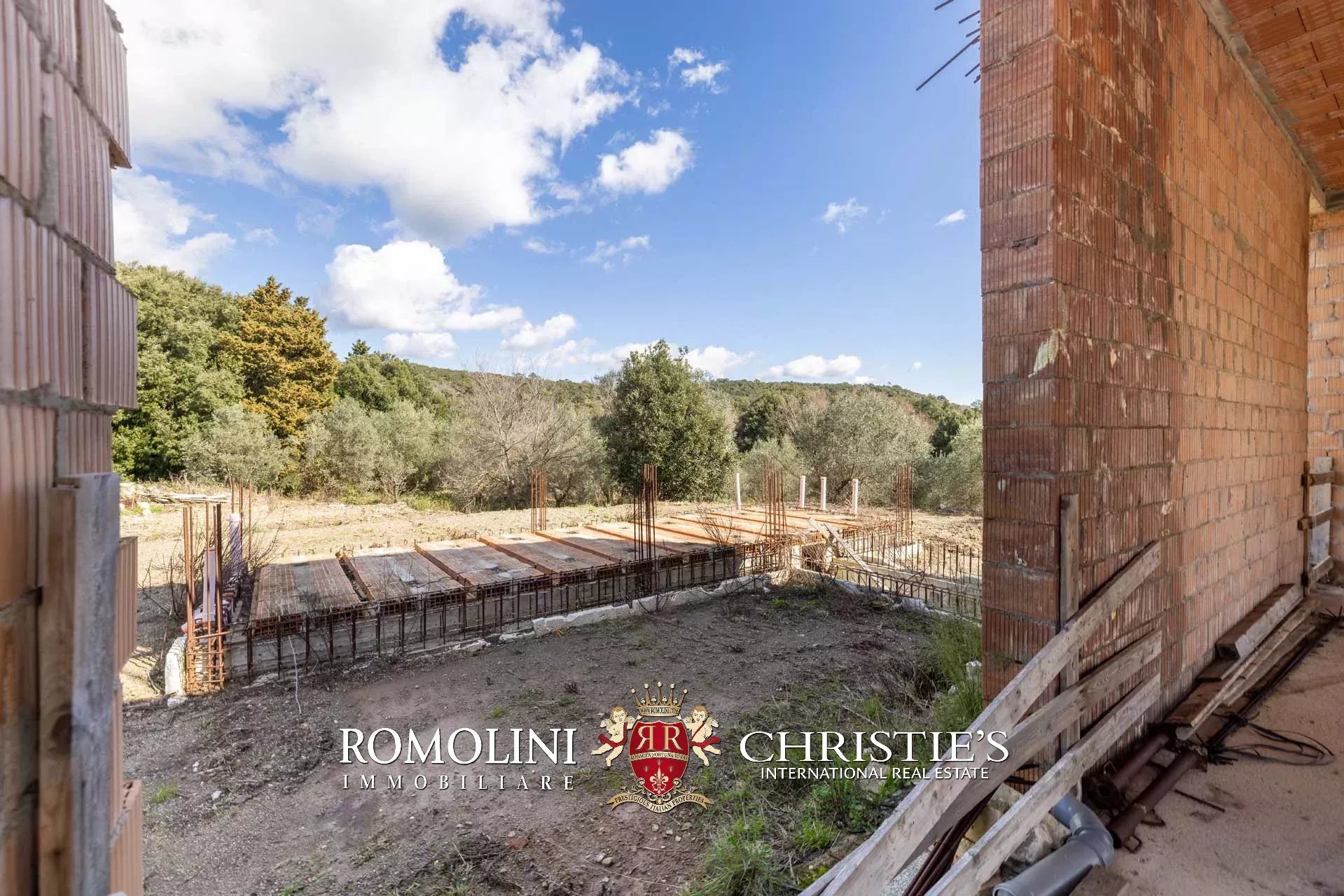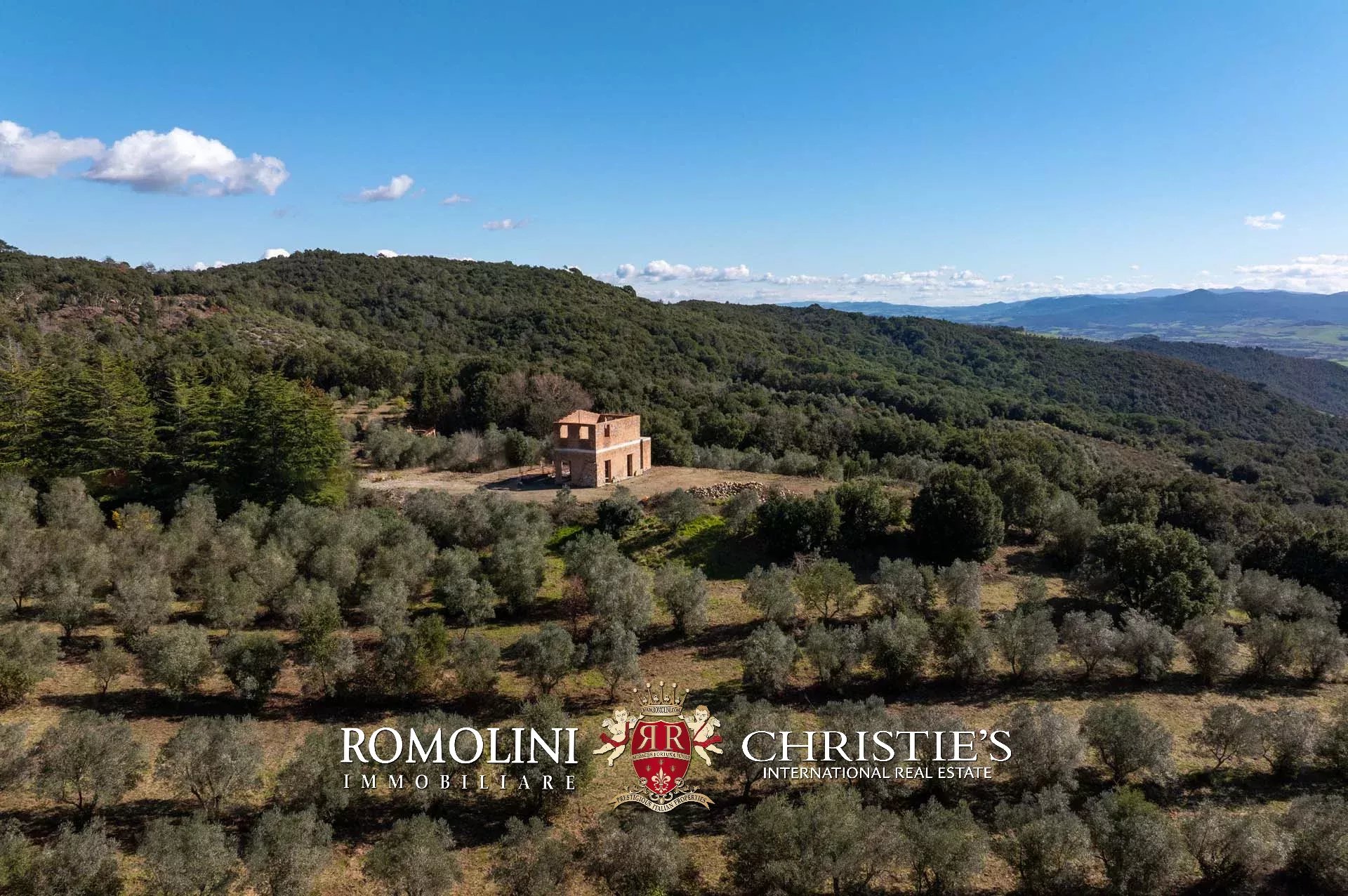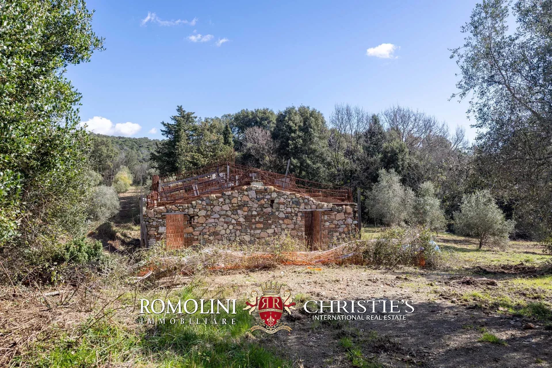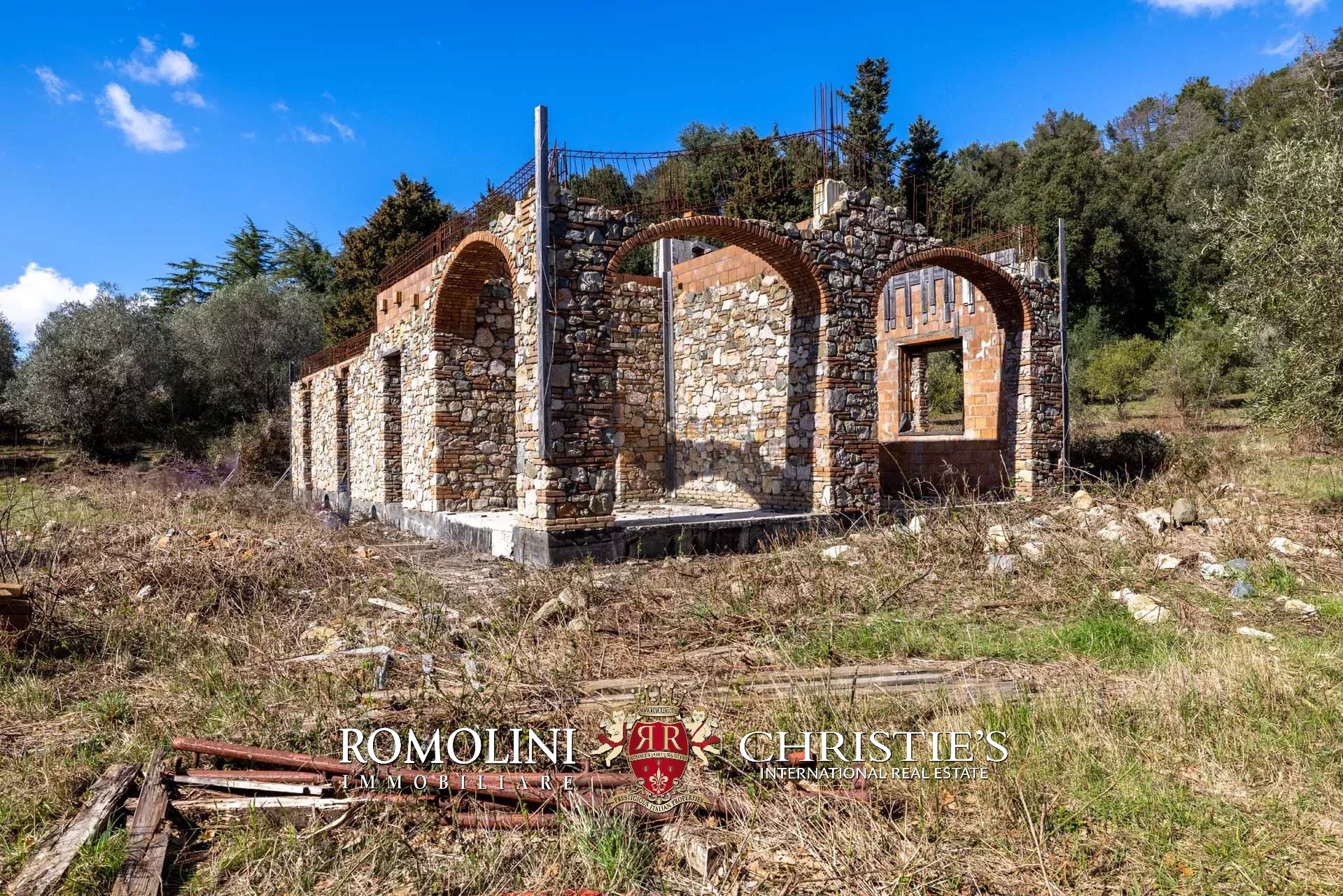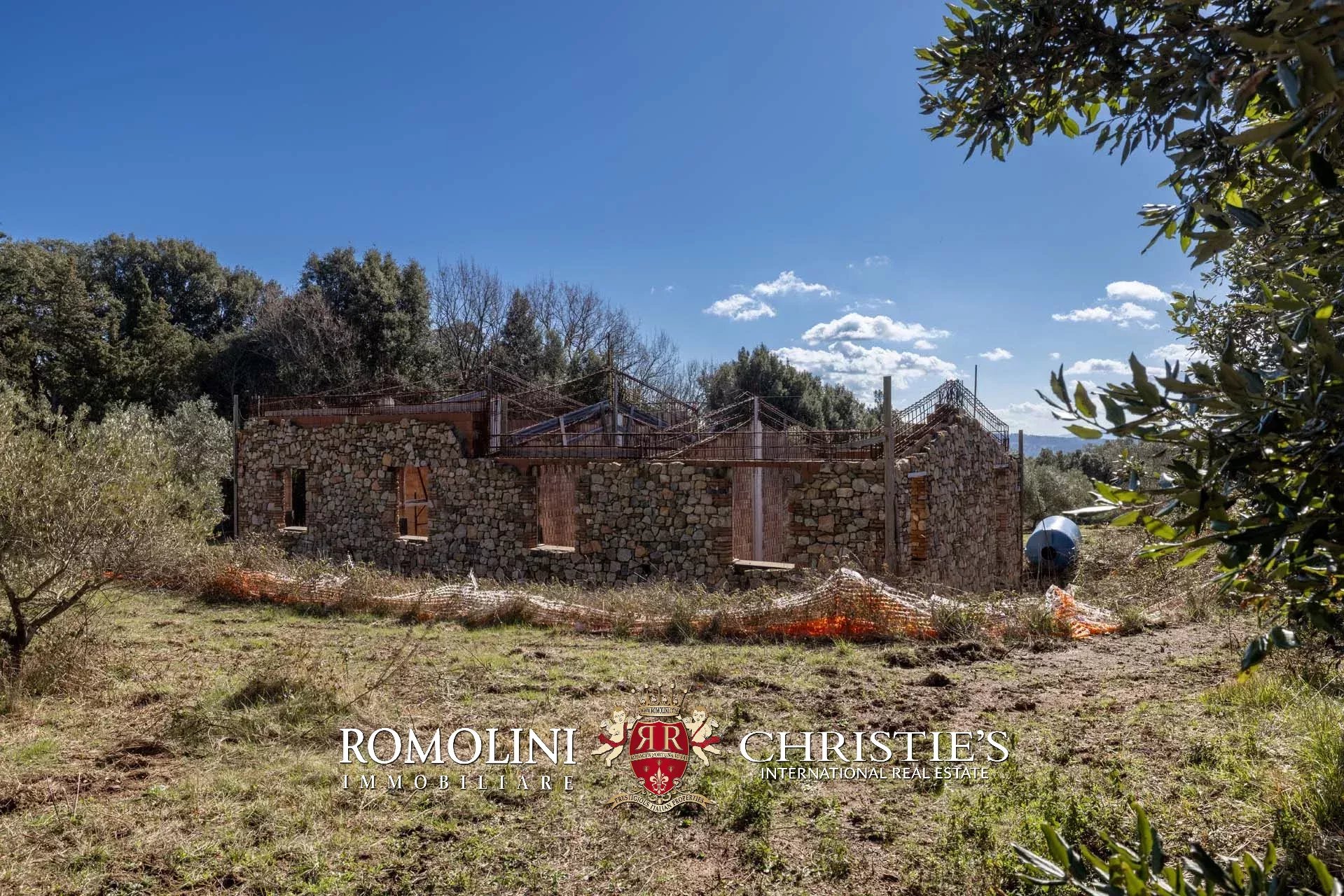 Il casale si trova in collina, circondato da circa 50,7 ettari di terra. Il giardino (ancora da realizzare) dovrebbe avere una superficie di circa 2.000 m² e andrebbe a trovarsi attorno al casale, incorniciato dagli ulivi di proprietà (circa 2,2 ha in totale). Porzioni di seminativo (3,6 ha) sparse per la tenuta permetterebbero di impiantare nuove colture, tra cui una vigna che godrebbe dell’ottimo clima mitigato dal vicino Mar Tirreno.