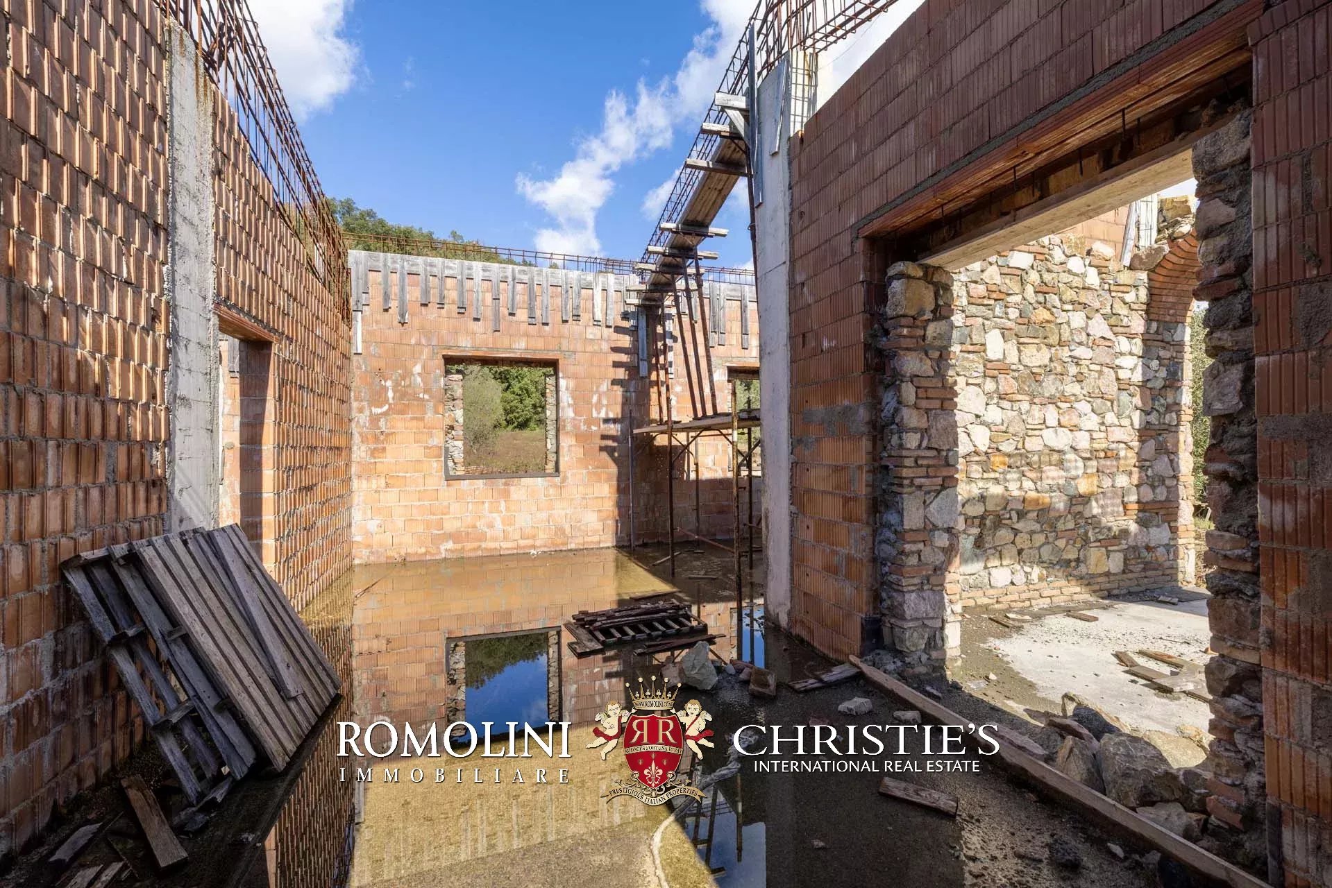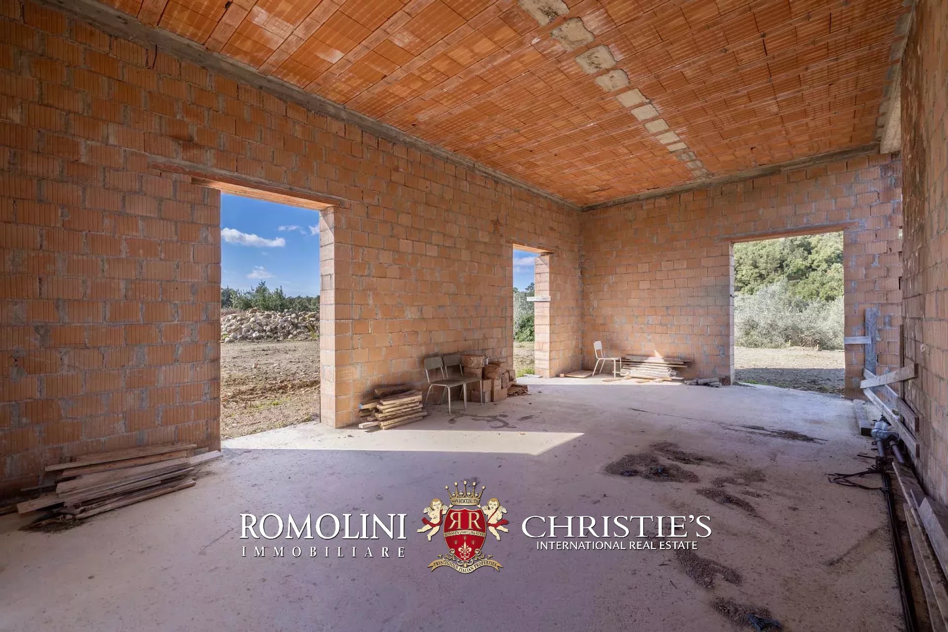 Il casale (274 m², 4 camere e 6 bagni) è un edificio in corso di costruzione, strutturato su tre piani (due fuori terra) che prevedono la seguente distribuzione degli spazi: