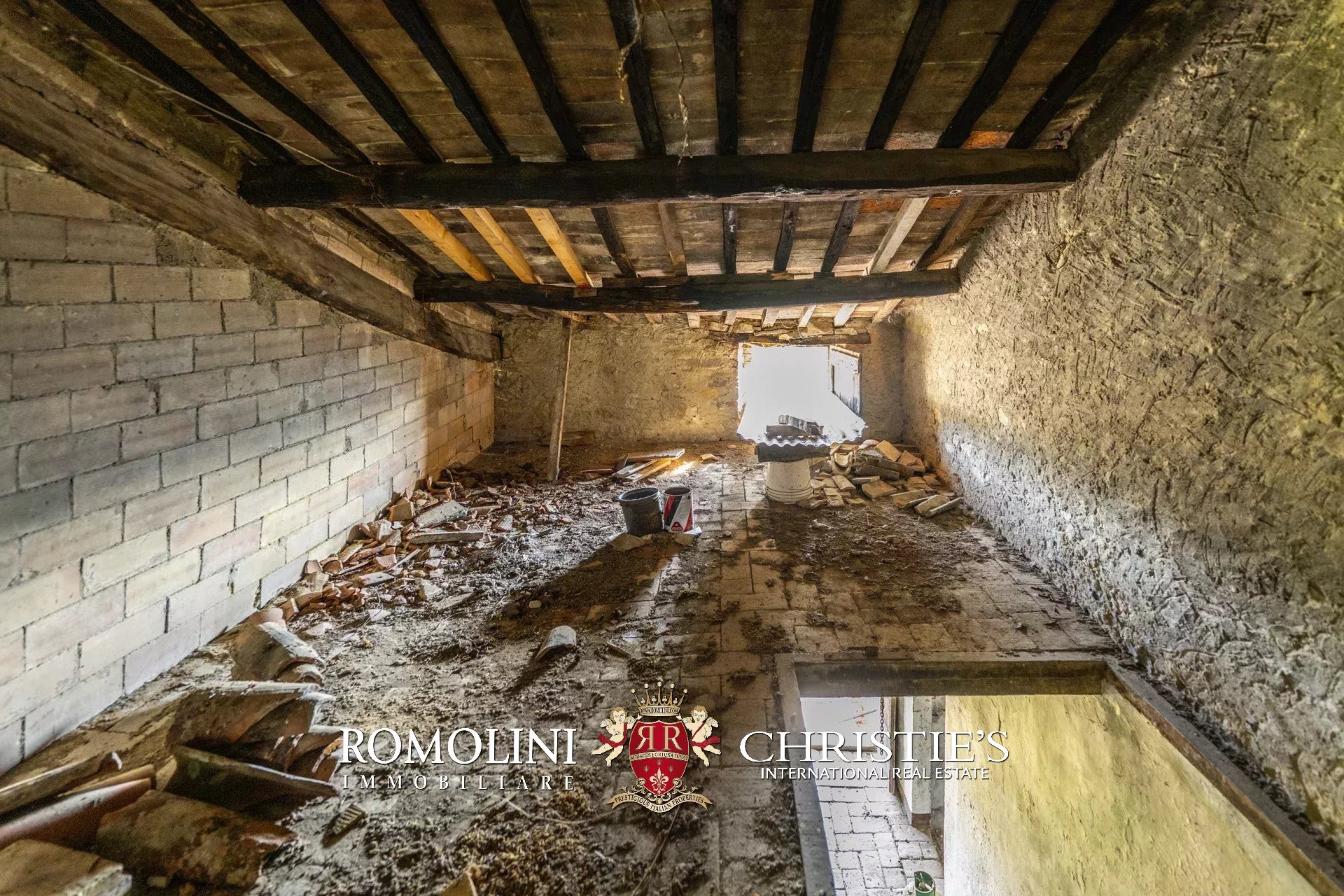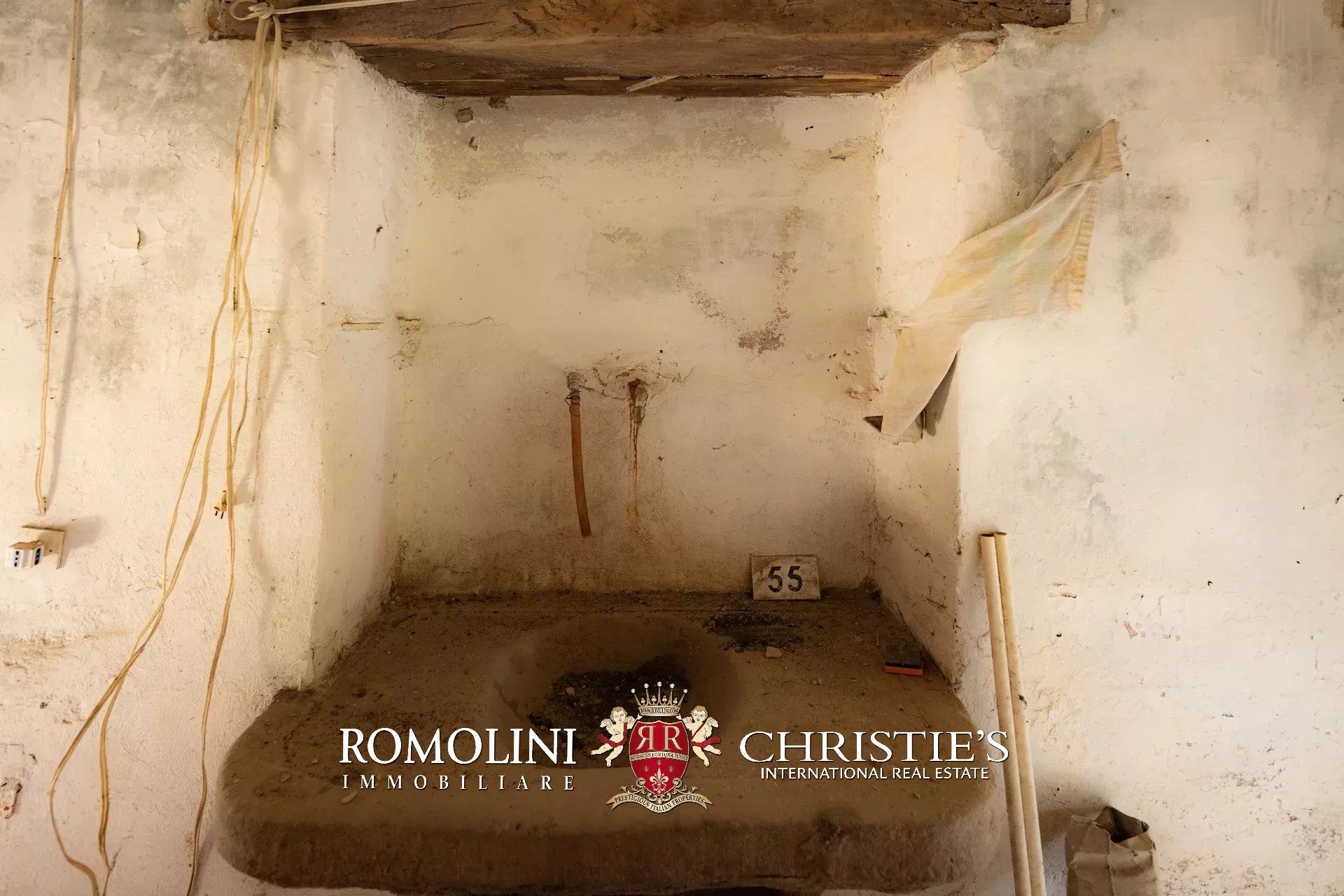 La porzione da ristrutturare (420 m²) è invece strutturata su tre livelli ed è composta da un totale di tredici stanze (incluse le vecchie stalle al piano terra) che garantiscono grande flessibilità nella ristrutturazione, con potenziale per espandere ulteriormente l’attività ricettiva. Pur avendo murature esterne e coperture in buone condizioni, questa sezione necessita di interventi di ristrutturazione che potranno valorizzare ulteriormente gli spazi interni e preservare gli elementi tipici del casale, come i pavimenti in cotto antico, i soffitti con travi in legno e i camini originali.