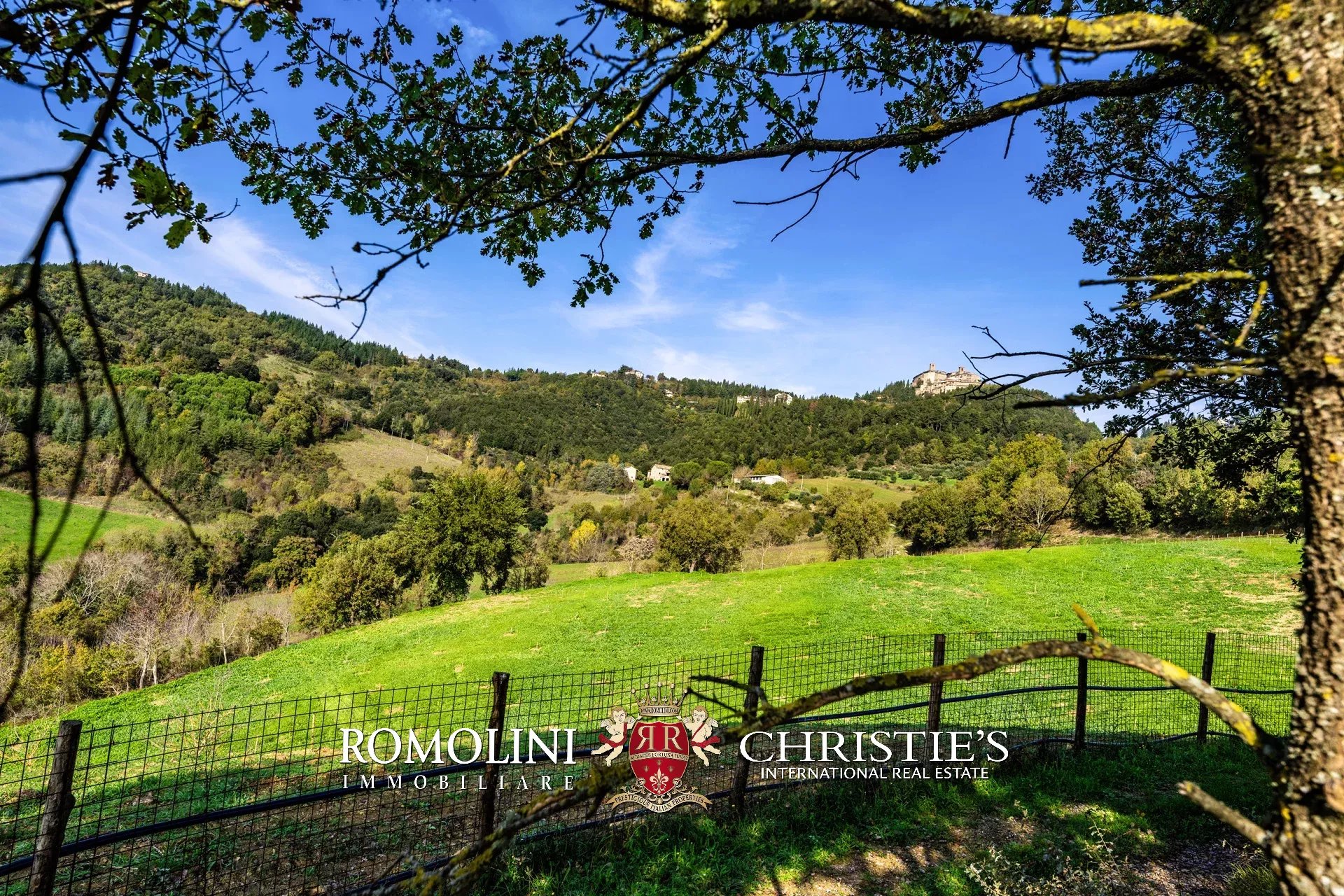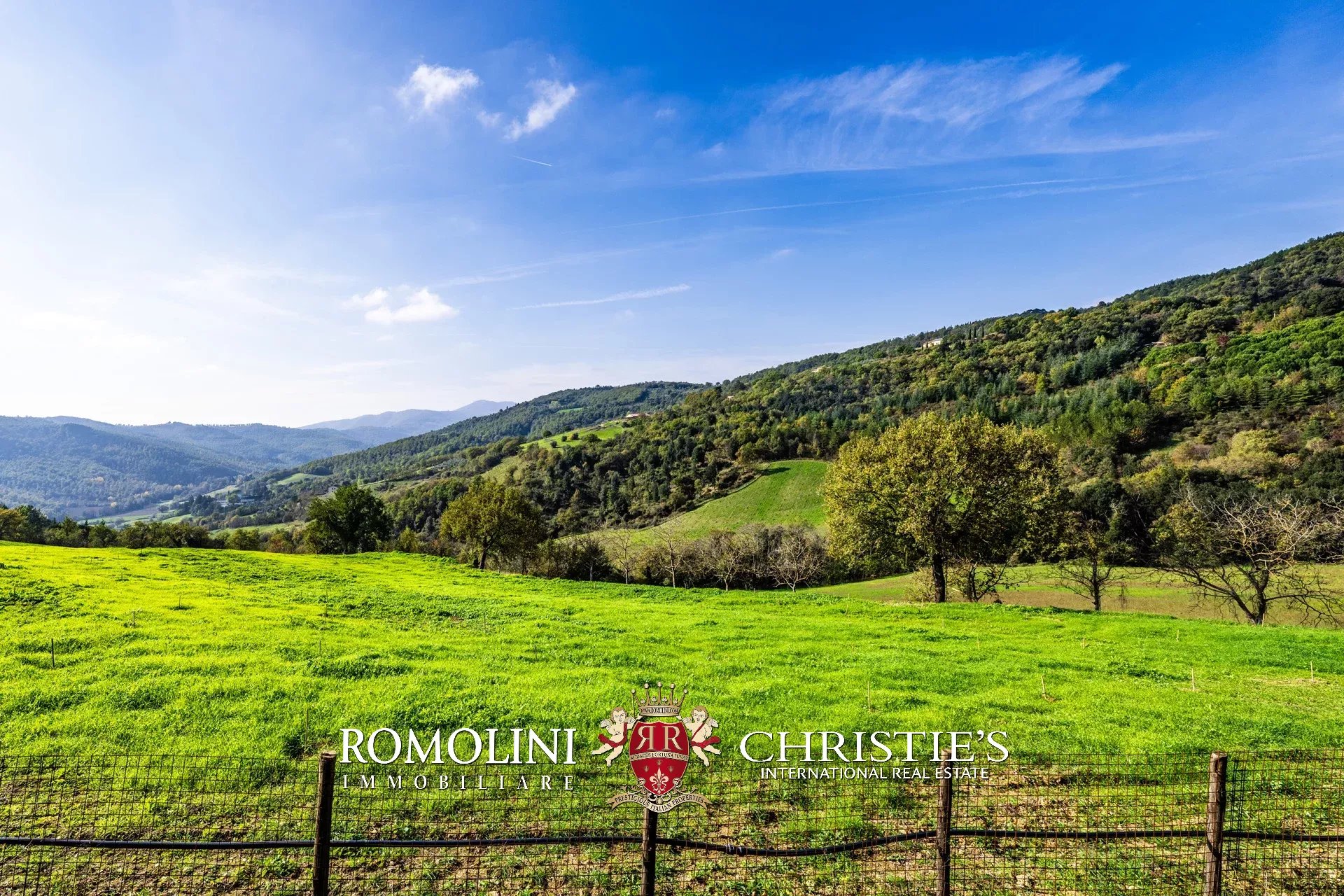 Situato in una posizione dominante appena fuori dal borgo medievale di Monte Santa Maria Tiberina, casalerustico con vista panoramica in vendita. La proprietà (circa 700 mq in totale) è stata parzialmente ristrutturata e convertita in casa vacanza ma le grandi dimensioni offrono grande potenziale di sviluppo in tal senso (fino a 10 camere). Circa 2,2 ha di terreno completano l’immobile.