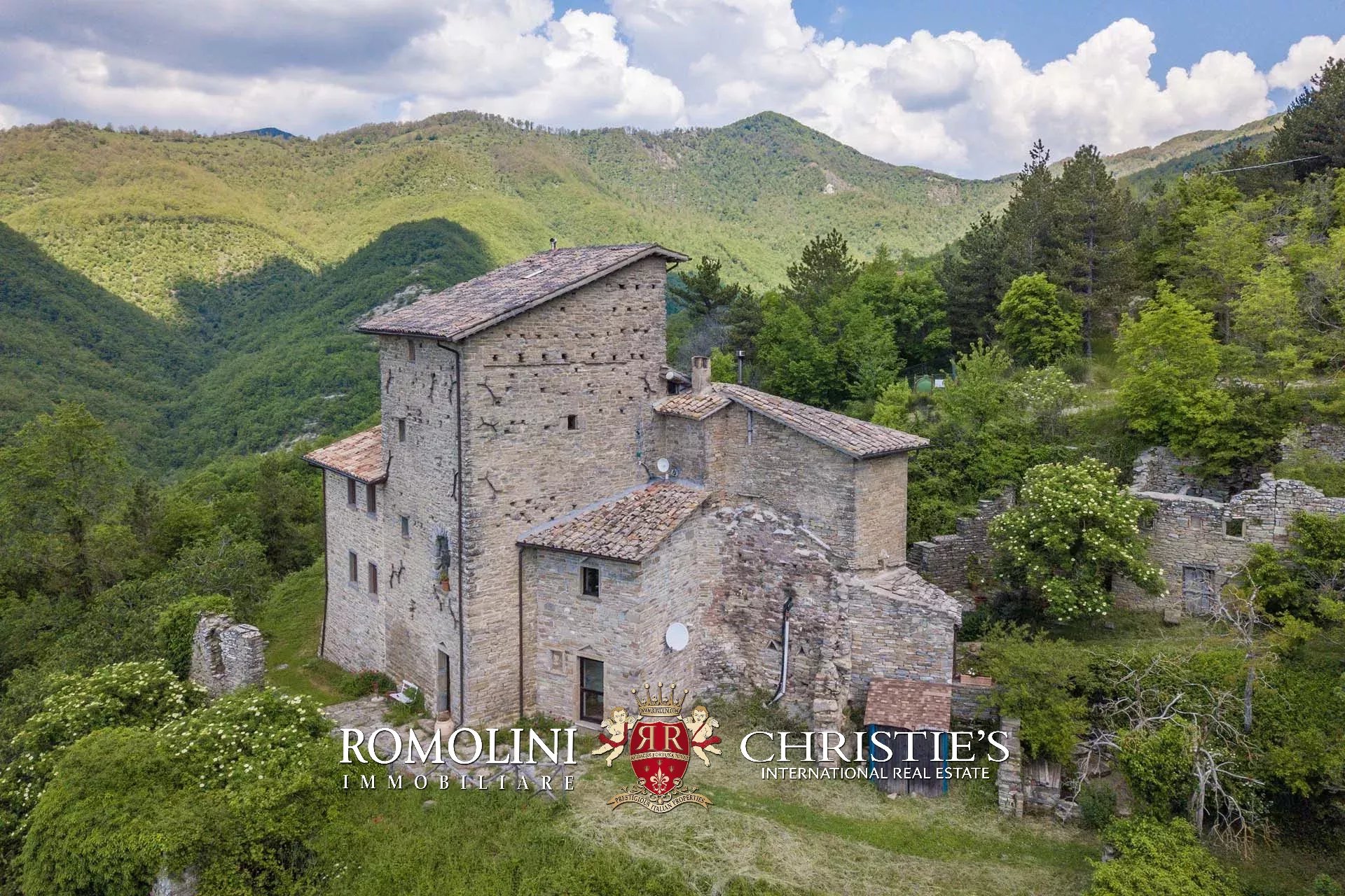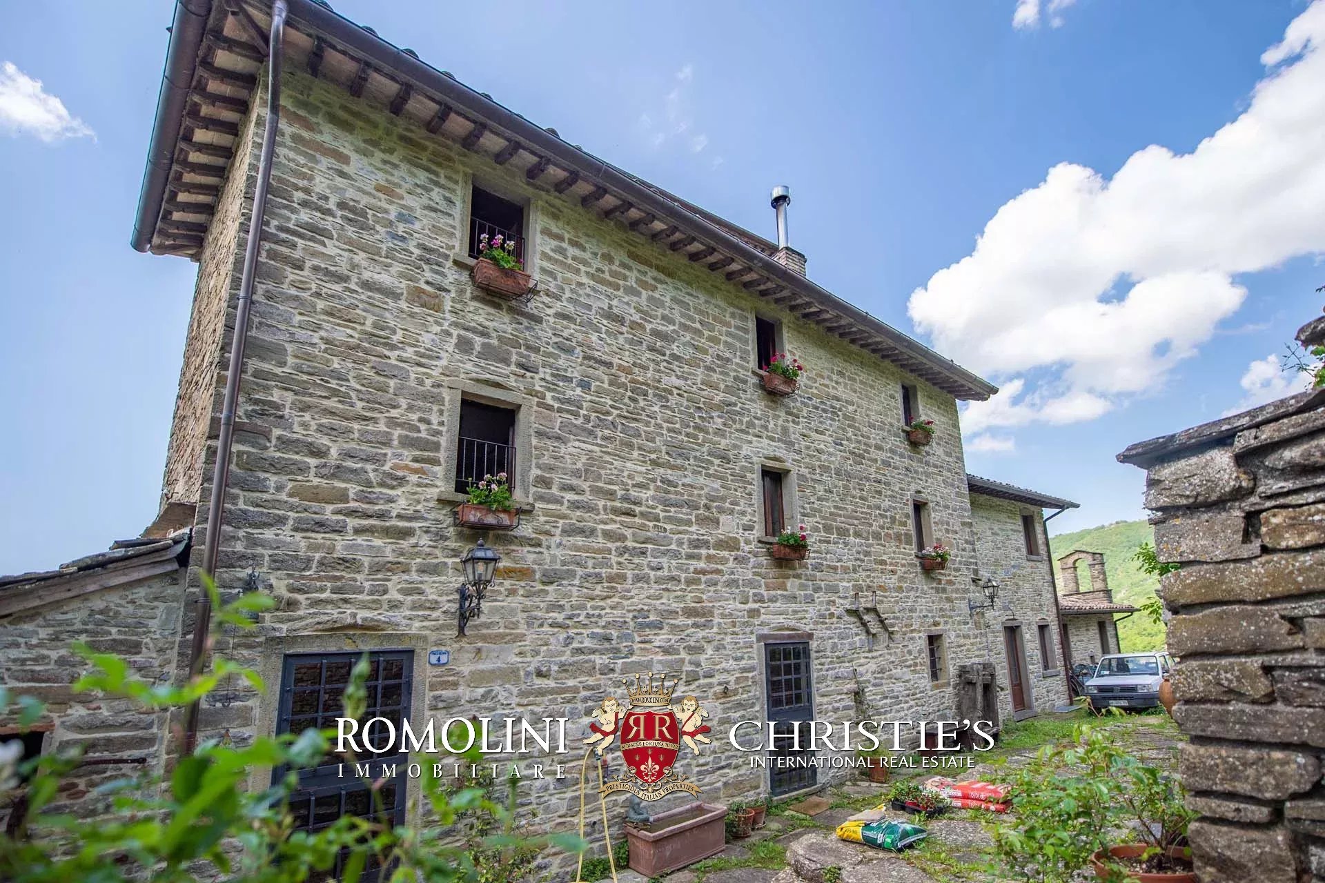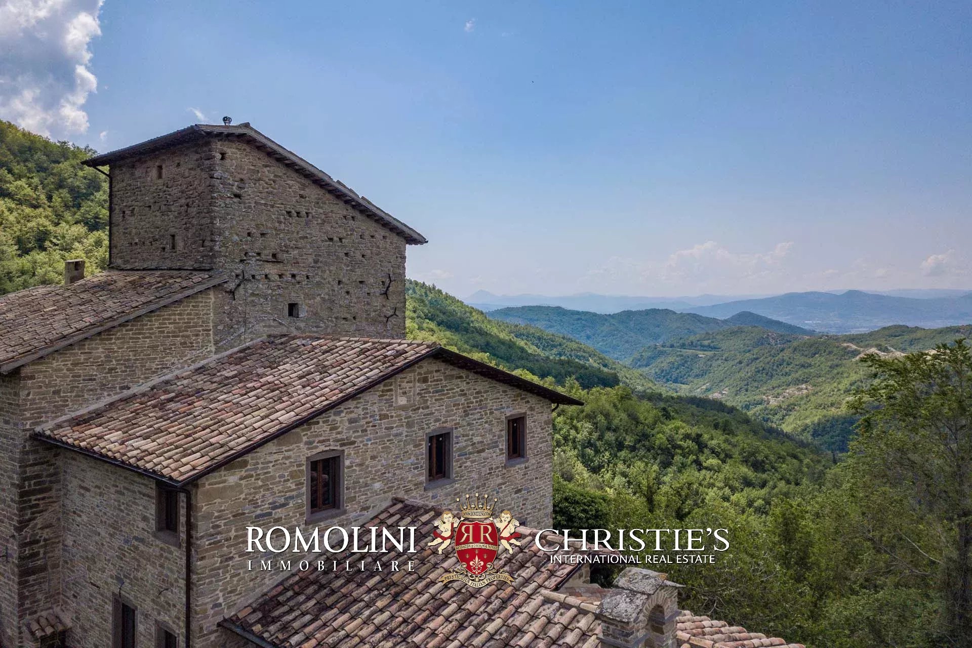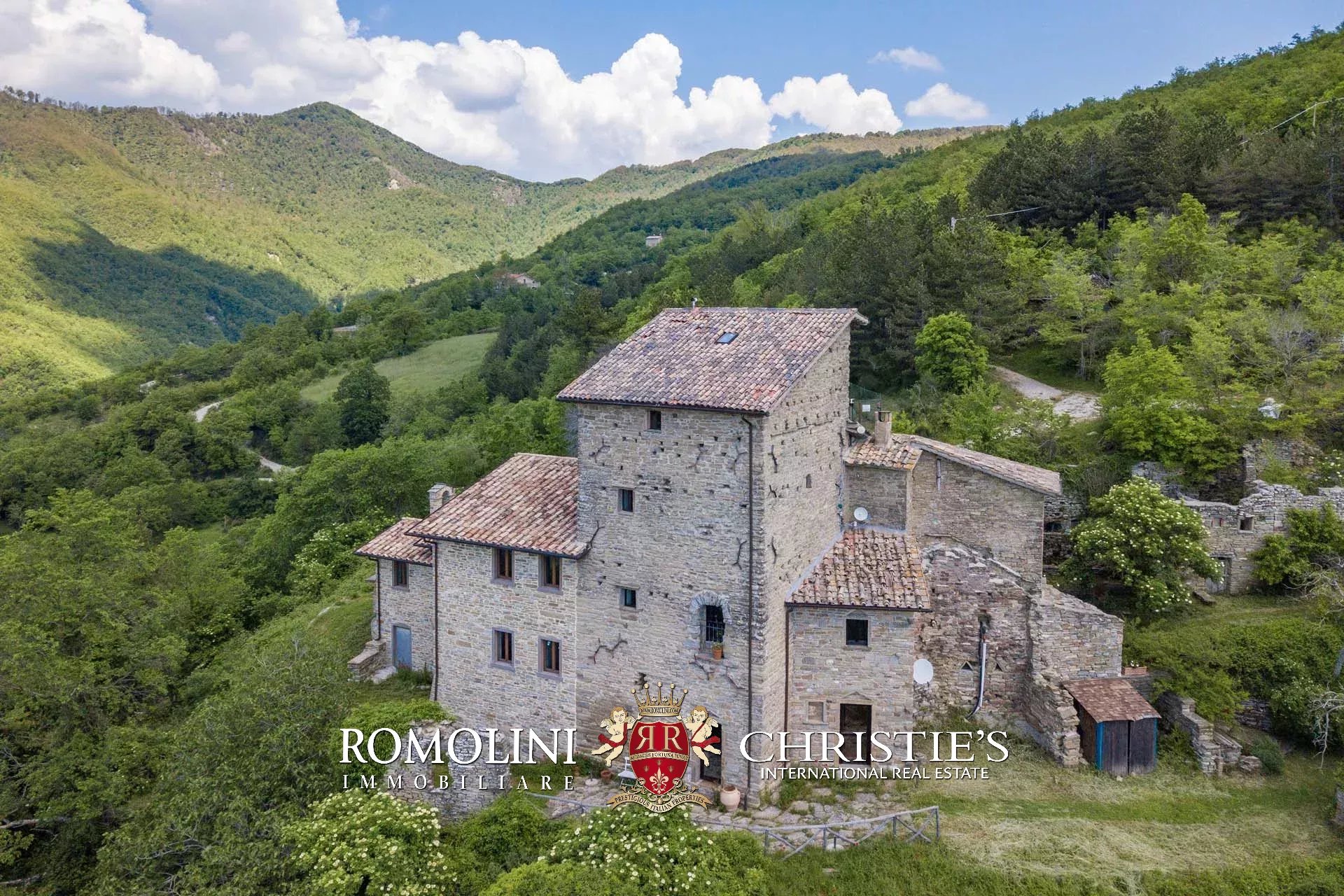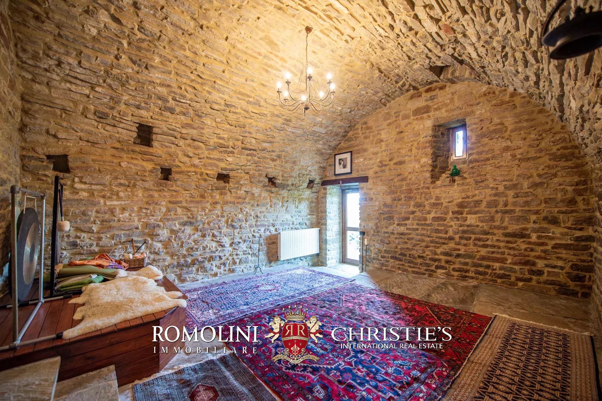 Il casale (505 m², 8 camere e 8 bagni) è diviso in due sezioni, comunicanti al piano terra rialzato ma altrimenti totalmente indipendenti e dotate ognuna del proprio accesso esclusivo. La struttura è il risultato dell’ampliamento di una torre di osservazione longobarda risalente al VII secolo e ancora ben visibile. La fortificazione fu costruita a difesa di un piccolo borgo rurale del IV secolo costruito dai monaci locali come rifugio per i pellegrini che passavano per il vicino valico di Bocca Trabaria.