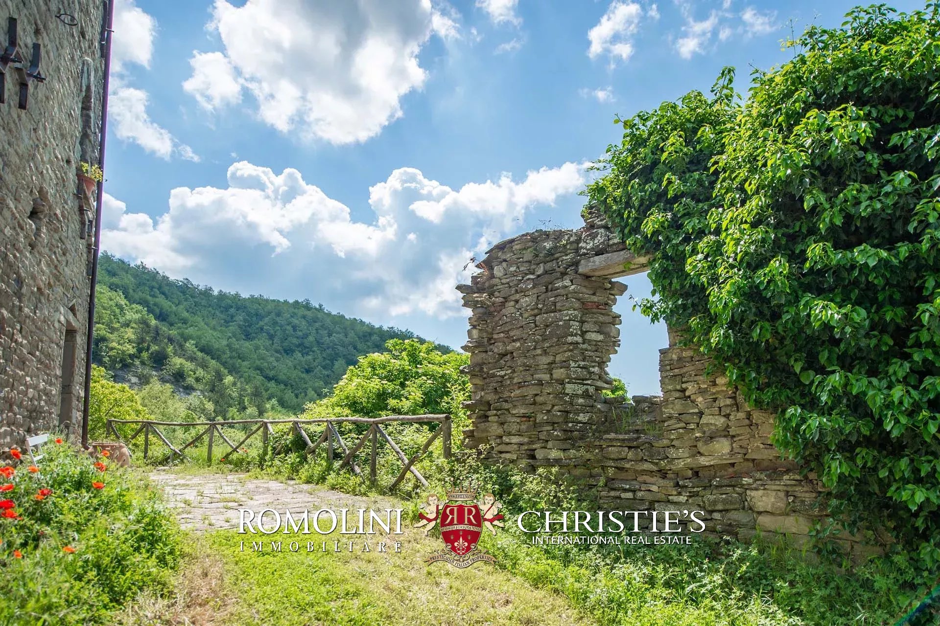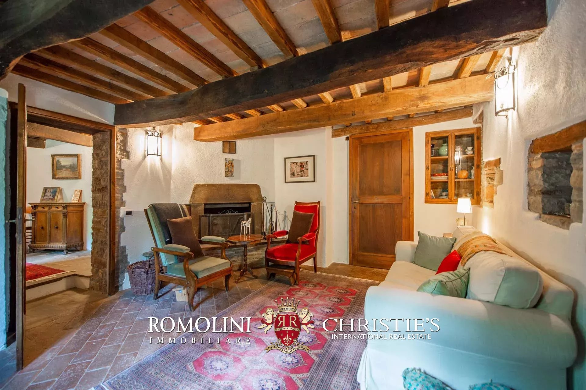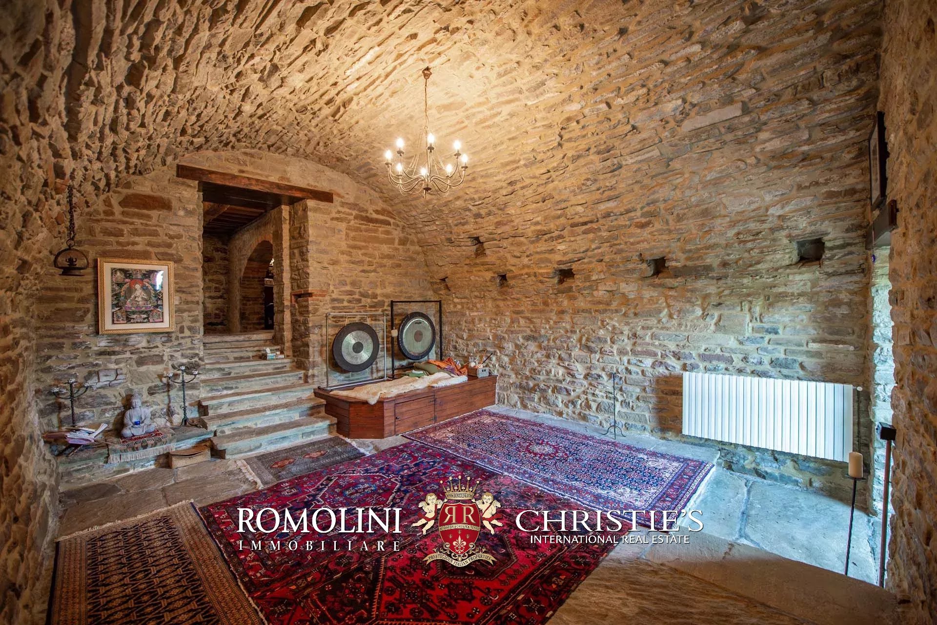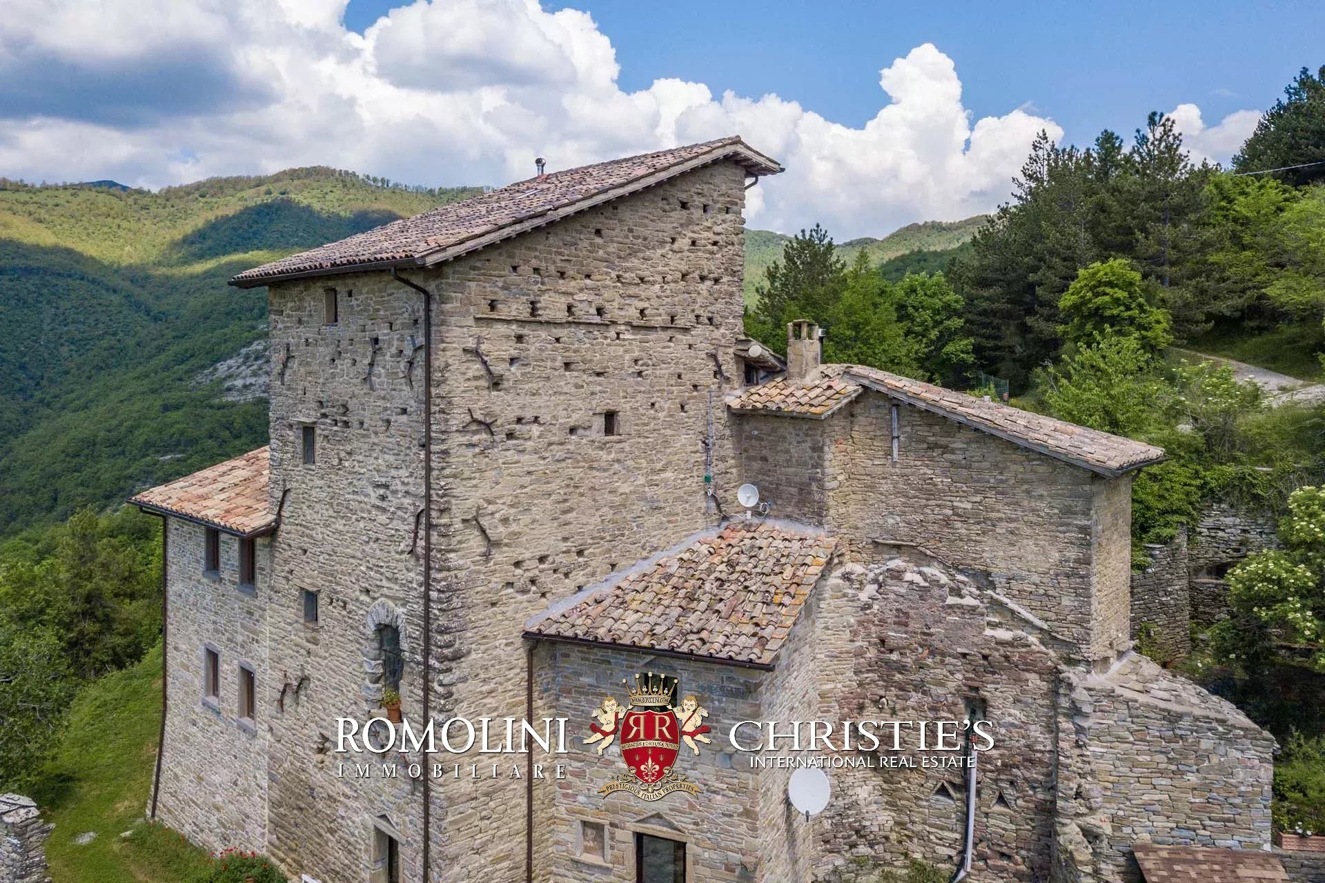 Il casale (505 m², 8 camere e 8 bagni) è diviso in due sezioni, comunicanti al piano terra rialzato ma altrimenti totalmente indipendenti e dotate ognuna del proprio accesso esclusivo. La struttura è il risultato dell’ampliamento di una torre di osservazione longobarda risalente al VII secolo e ancora ben visibile. La fortificazione fu costruita a difesa di un piccolo borgo rurale del IV secolo costruito dai monaci locali come rifugio per i pellegrini che passavano per il vicino valico di Bocca Trabaria.