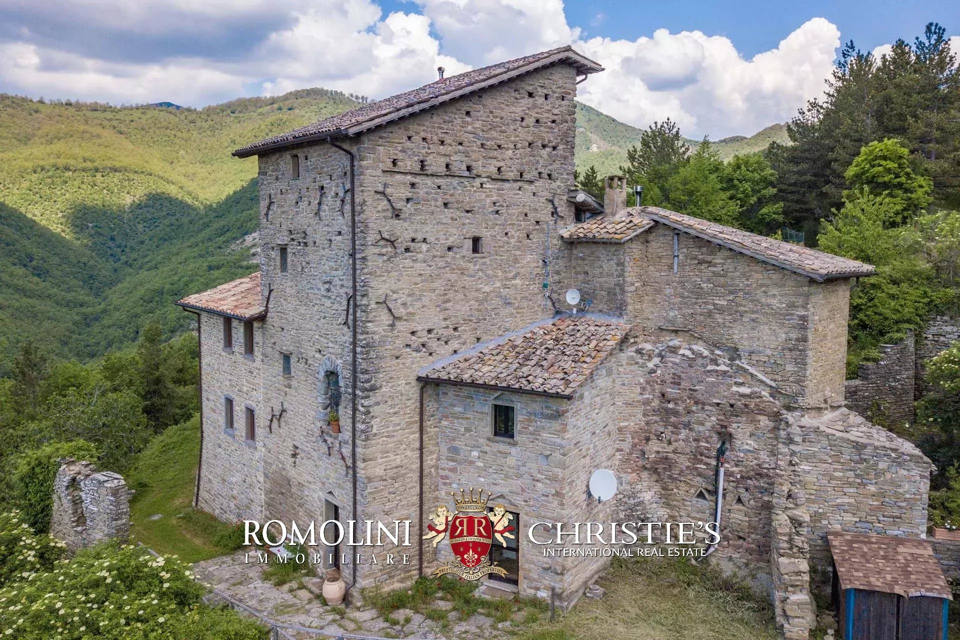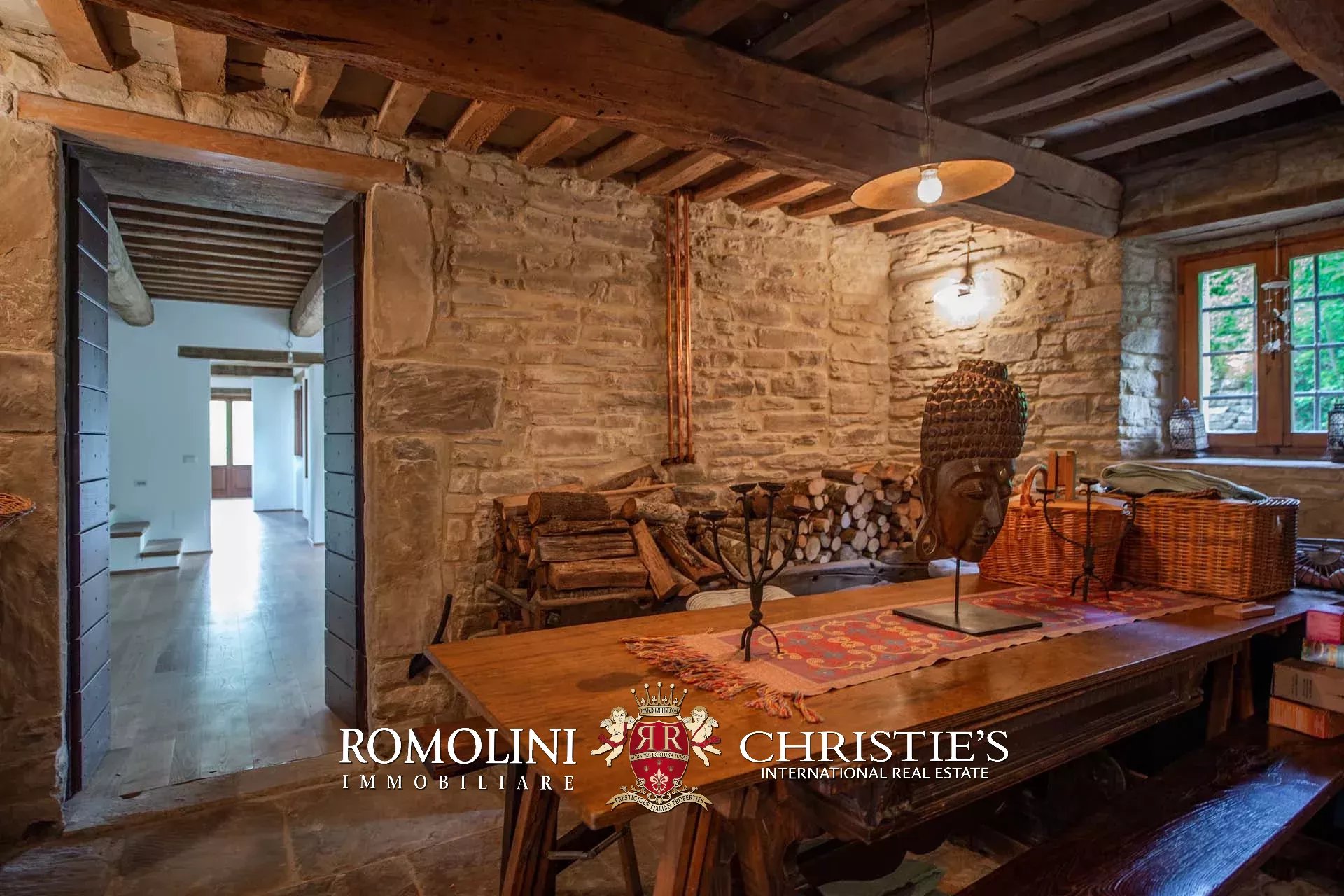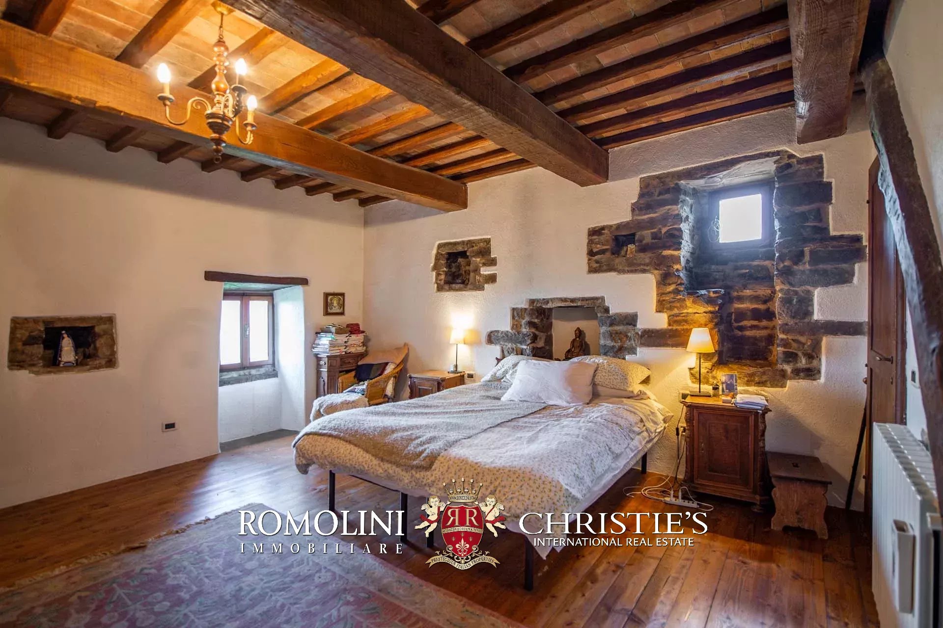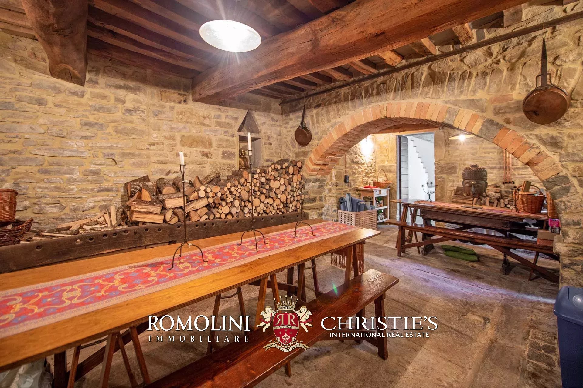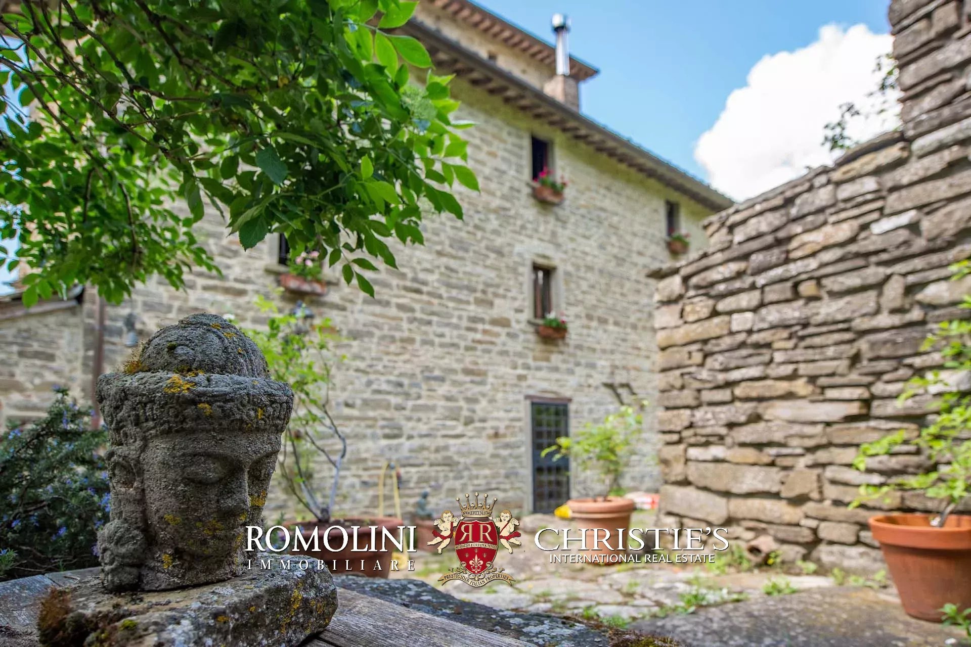 Il casale (505 m², 8 camere e 8 bagni) è diviso in due sezioni, comunicanti al piano terra rialzato ma altrimenti totalmente indipendenti e dotate ognuna del proprio accesso esclusivo. La struttura è il risultato dell’ampliamento di una torre di osservazione longobarda risalente al VII secolo e ancora ben visibile. La fortificazione fu costruita a difesa di un piccolo borgo rurale del IV secolo costruito dai monaci locali come rifugio per i pellegrini che passavano per il vicino valico di Bocca Trabaria.