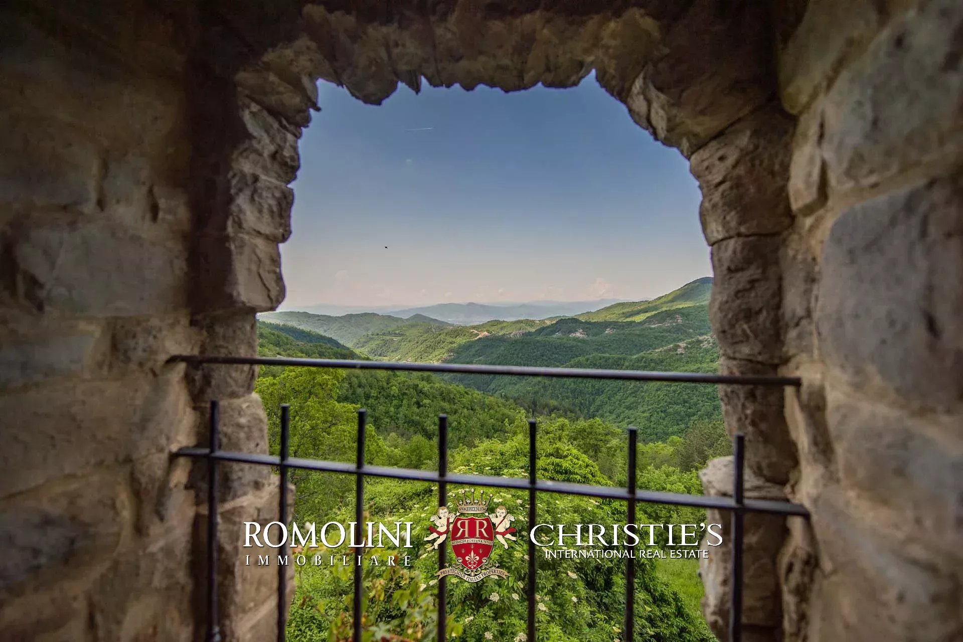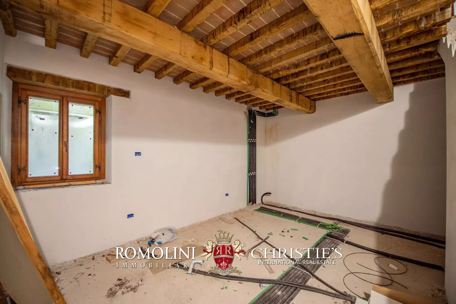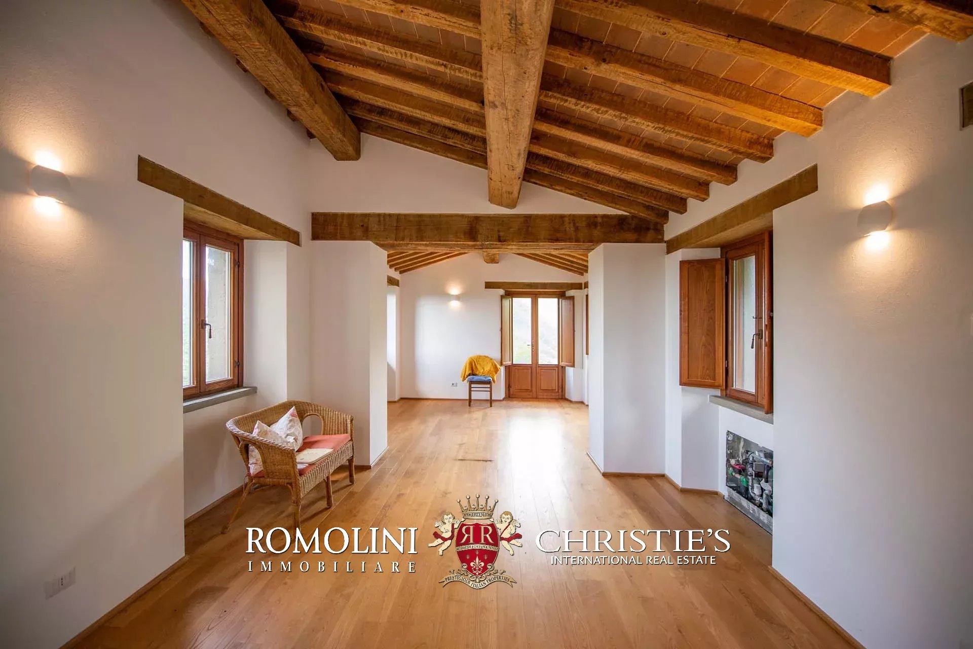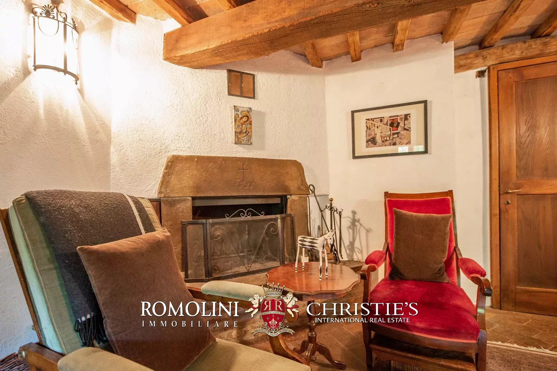 Il casale (505 m², 8 camere e 8 bagni) è diviso in due sezioni, comunicanti al piano terra rialzato ma altrimenti totalmente indipendenti e dotate ognuna del proprio accesso esclusivo. La struttura è il risultato dell’ampliamento di una torre di osservazione longobarda risalente al VII secolo e ancora ben visibile. La fortificazione fu costruita a difesa di un piccolo borgo rurale del IV secolo costruito dai monaci locali come rifugio per i pellegrini che passavano per il vicino valico di Bocca Trabaria.