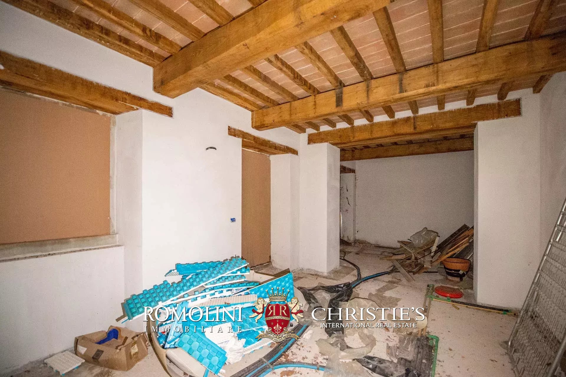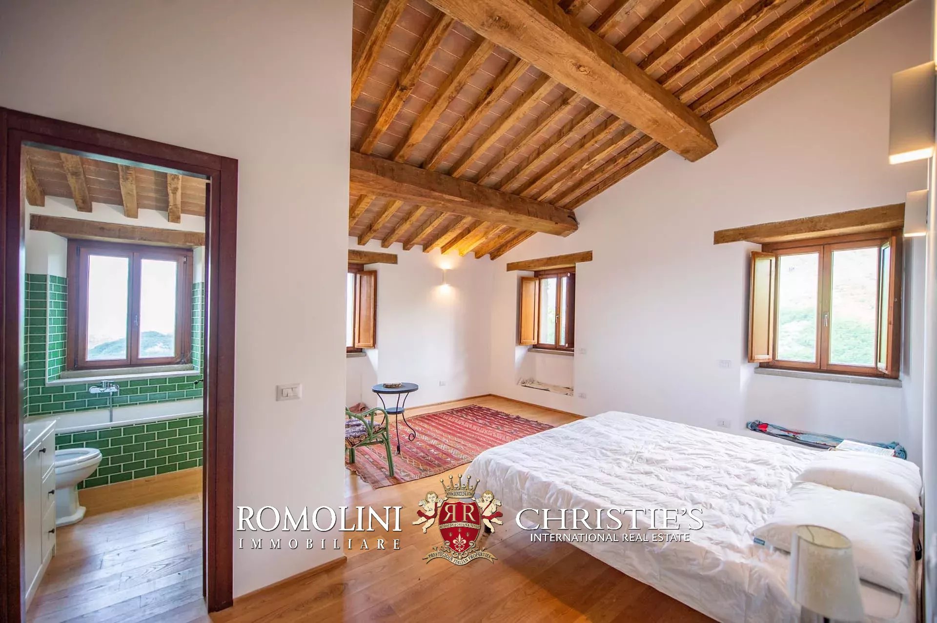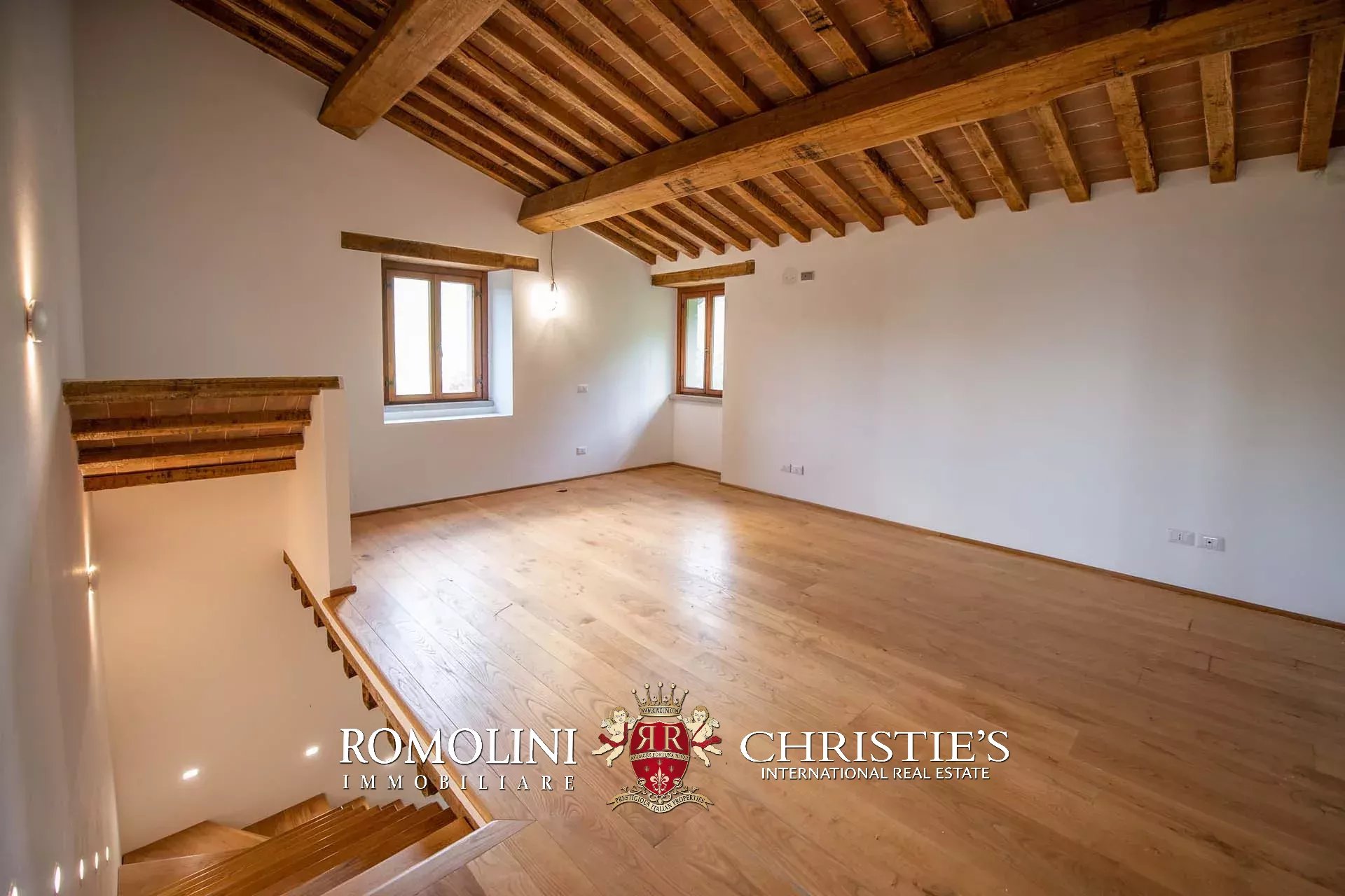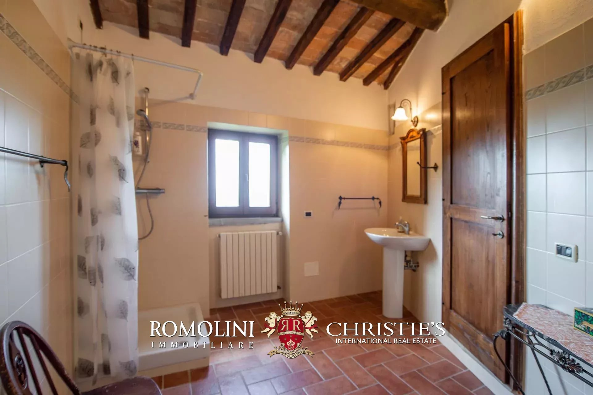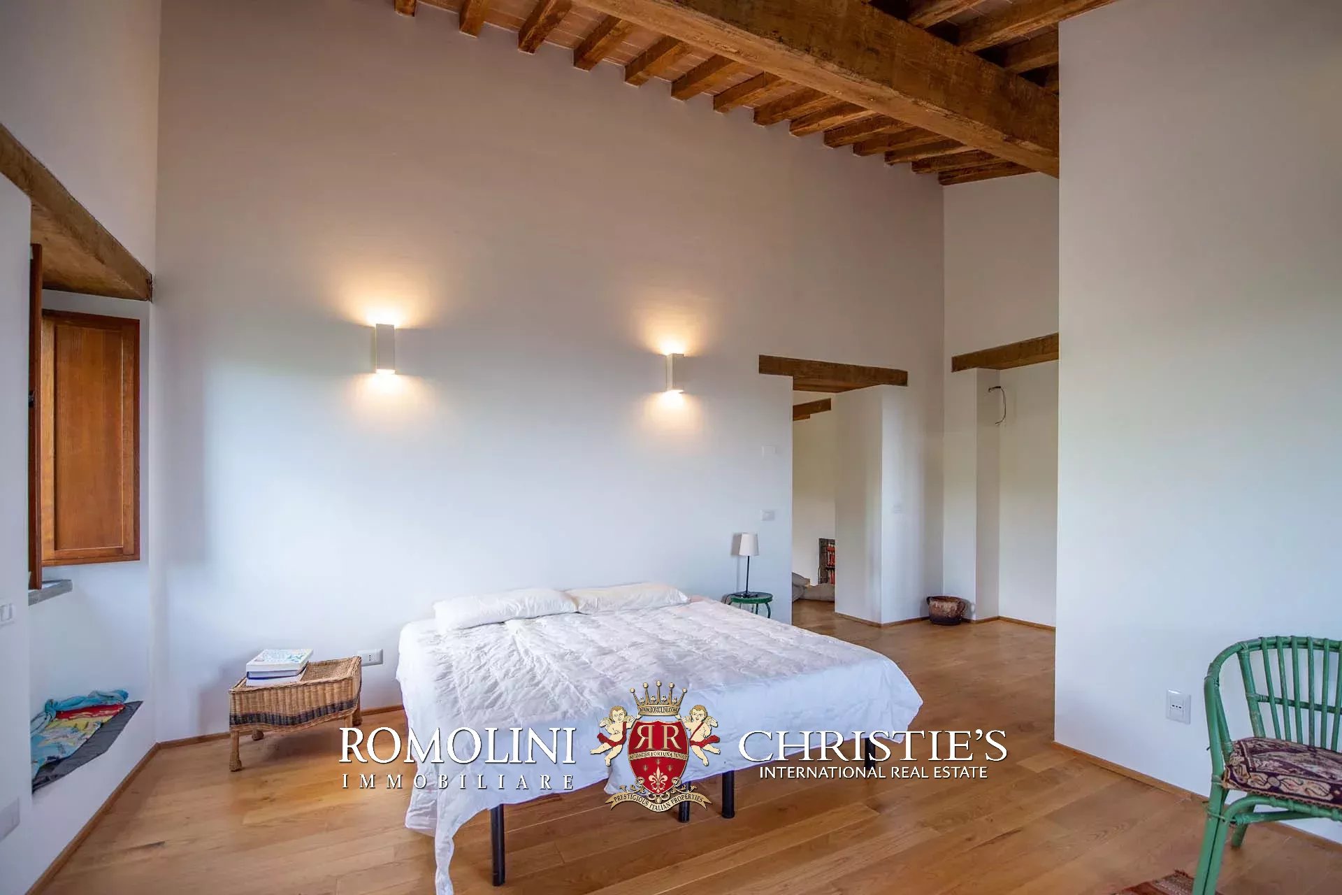 Il casale (505 m², 8 camere e 8 bagni) è diviso in due sezioni, comunicanti al piano terra rialzato ma altrimenti totalmente indipendenti e dotate ognuna del proprio accesso esclusivo. La struttura è il risultato dell’ampliamento di una torre di osservazione longobarda risalente al VII secolo e ancora ben visibile. La fortificazione fu costruita a difesa di un piccolo borgo rurale del IV secolo costruito dai monaci locali come rifugio per i pellegrini che passavano per il vicino valico di Bocca Trabaria.