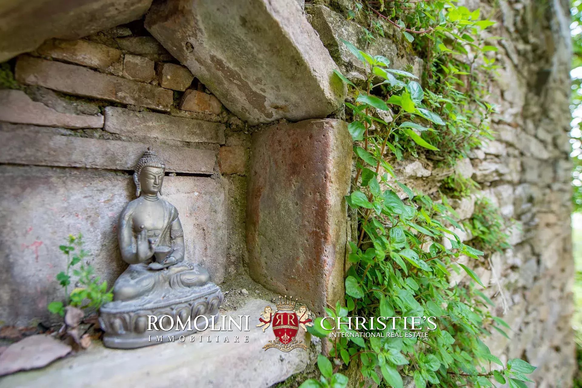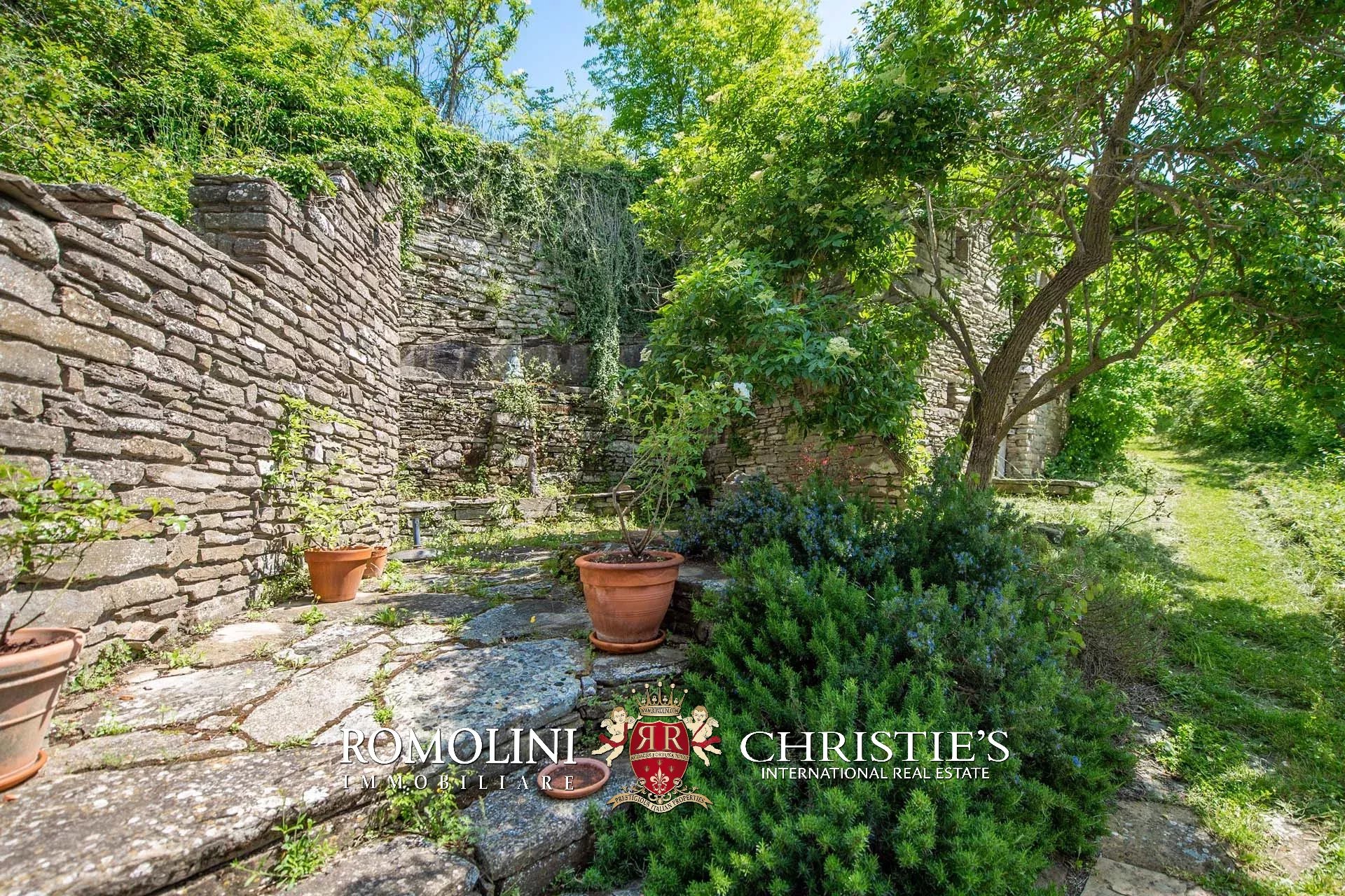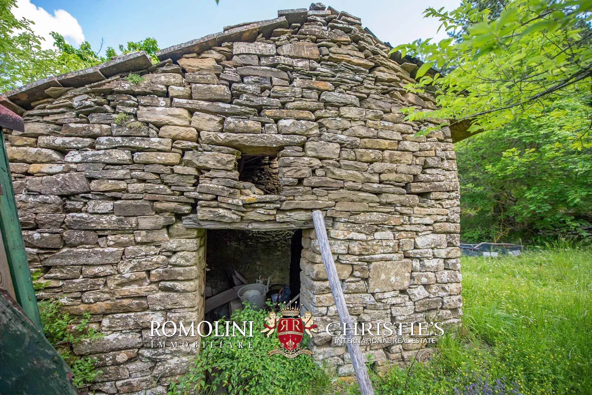 La proprietà si stende su circa 4,0 ettari, coperti in buona parte da boschi che garantiscono ottima privacy e riservatezza. A nord, poco oltre i due ruderi, si trova una radura pianeggiante molto adatta se si volessero tenere cavalli. Leggermente a valle rispetto all’edificio i proprietari hanno creato un piccolo orto dove coltivano pianta aromatiche e verdure.