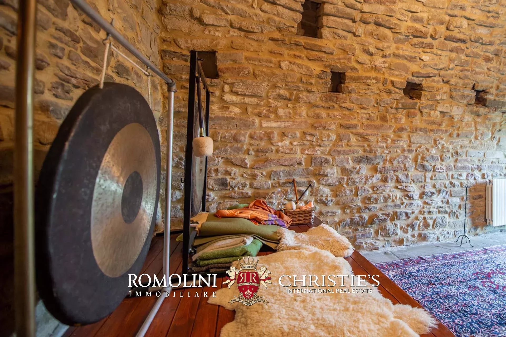 Sulle colline dell’Umbria, in una posizione molto tranquilla e panoramica con vista sul verde, casale ristrutturato con centro yoga e ruderi da ristrutturare. La proprietà (505 m²), complice una ristrutturazione eseguita con grande cura, presenta ancora tutte le finiture rustiche ed è attualmente divisa in due sezioni (per un totale di 8 camere e 8 bagni). La ristrutturazione dei ruderi permetterebbe di creare nuovi spazi per gli ospiti. Circa 4,0 ha di terreno, coperti in prevalenza da alberi, completano la proprietà.