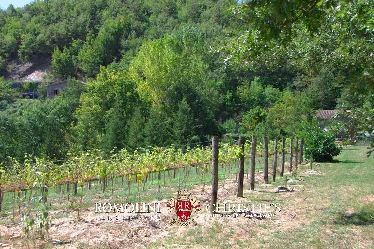 Nel terreno sono anche presenti 250 viti (Sangiovese e Merlot, per una produzione totale di circa 1.000 bottiglie di vino l'anno) e circa 50 piante di olivo. Gli alberi che racchiudono il parco assicurano grande privacy e silenzio alle case.