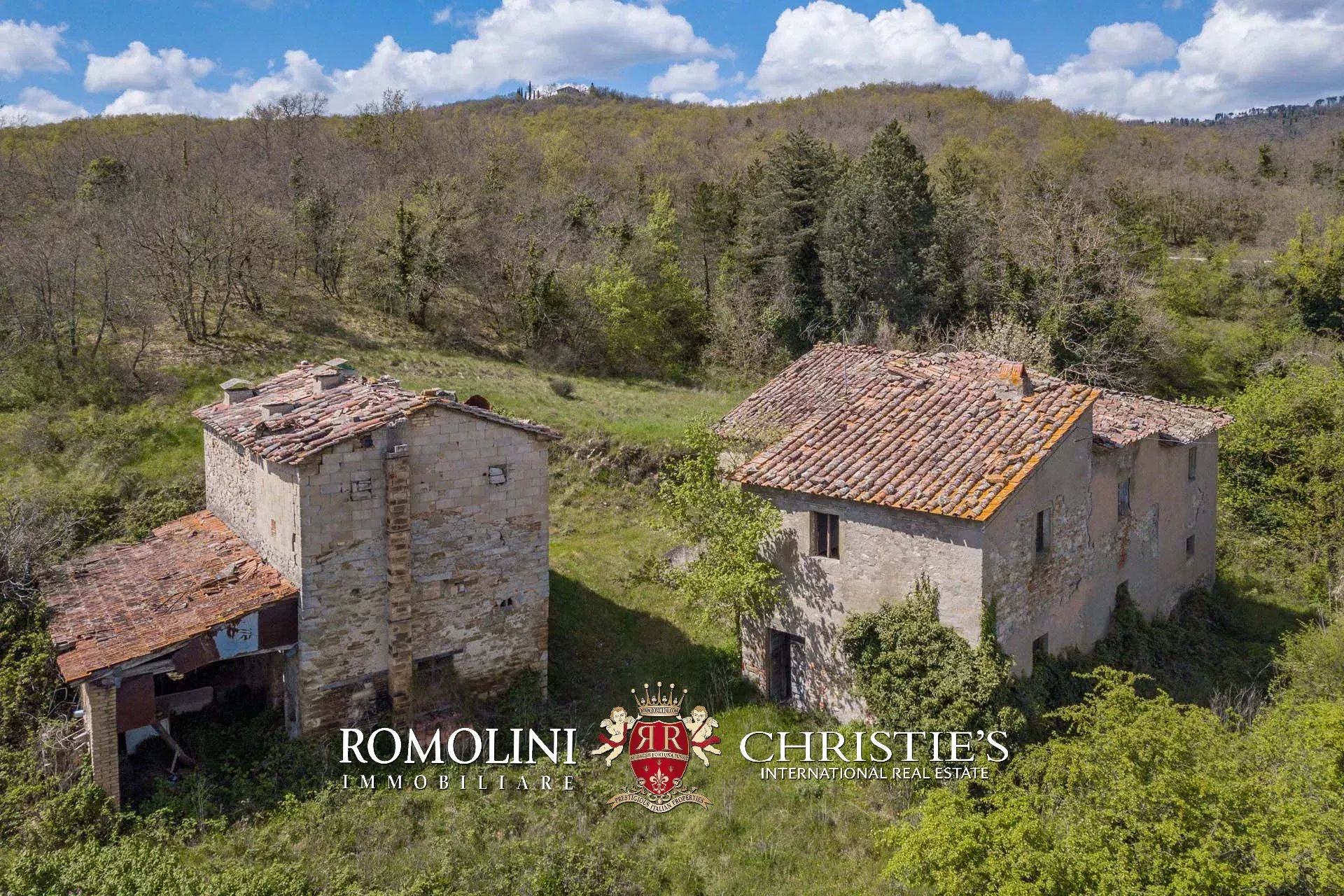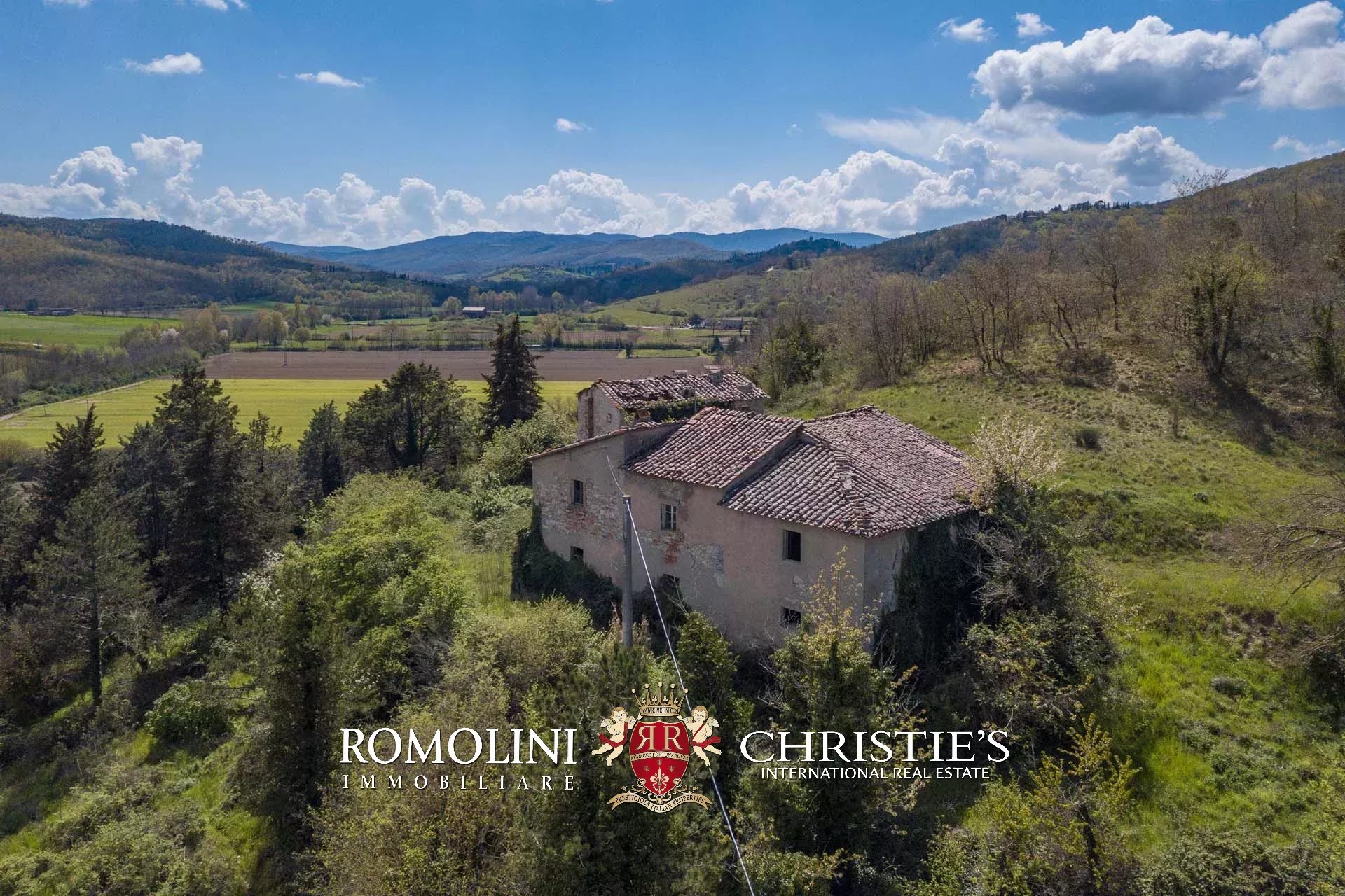 A metà strada tra Umbertide e Cortona, al confine tra Umbria e Toscana, casale da ristrutturare con annessi in vendita. La proprietà si trova in posizione panoramica e necessita di interventi di recupero e ristrutturazione. Attualmente sono presenti 5 camere, ma gli annessi agricoli potrebbero essere usati per creare una (o più) dependance. La proprietà è poi completata da 3,8 ha di terreno con possibilità di costruire una piscina.