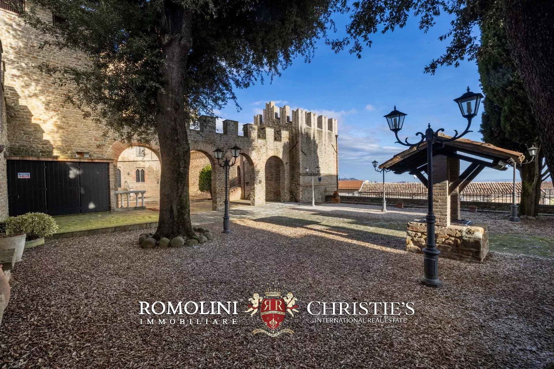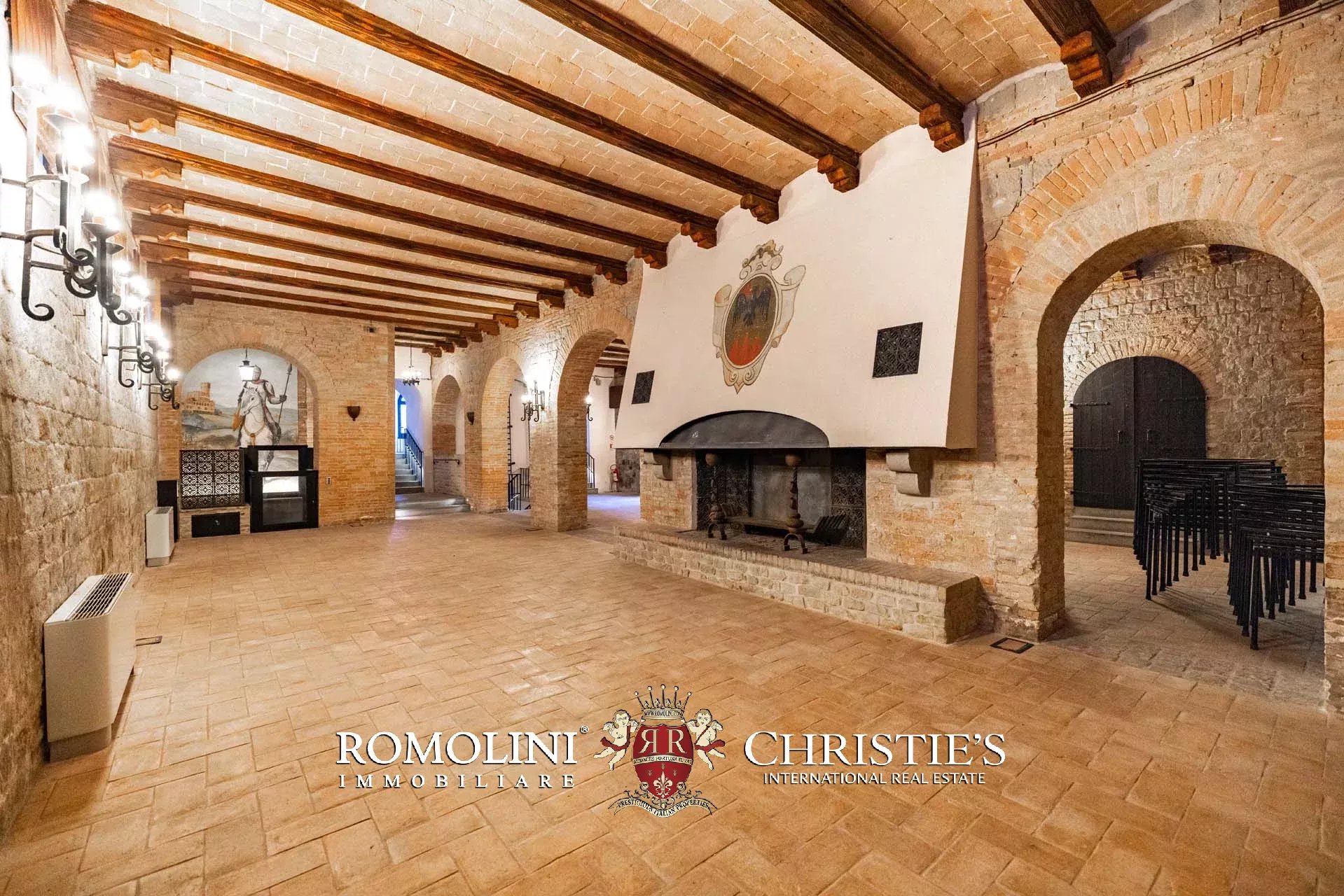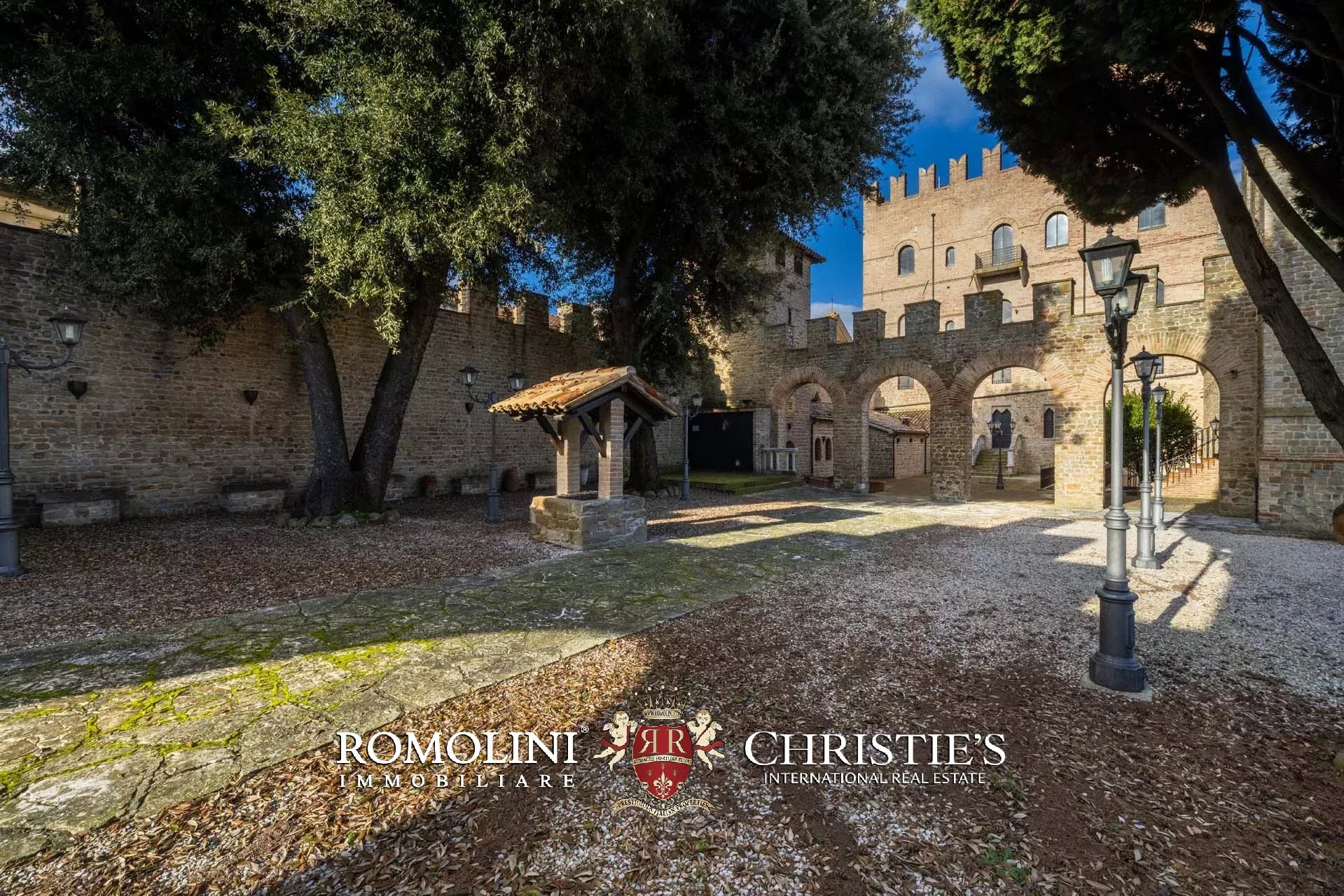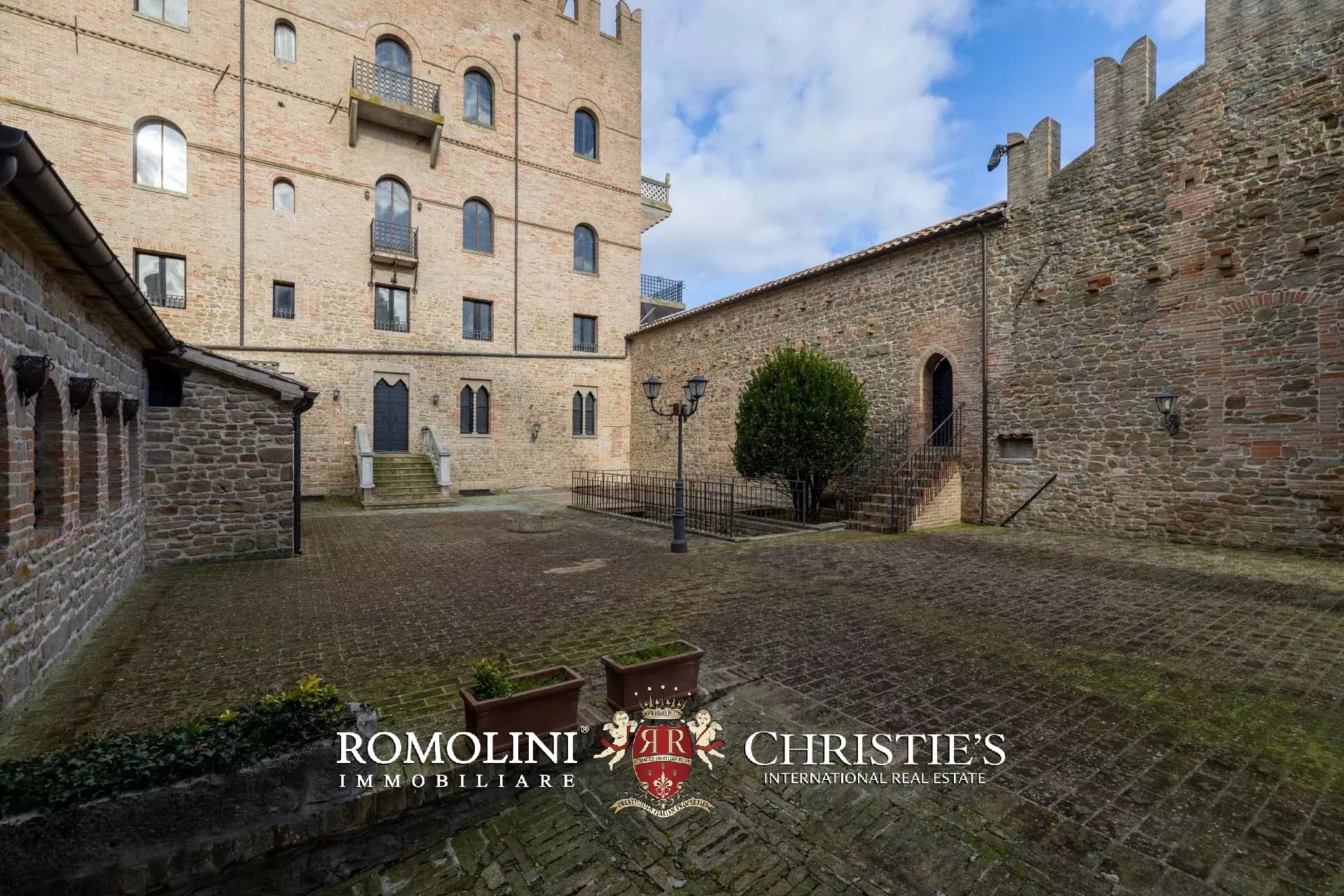 Il cuore scenografico della proprietà è rappresentato dalla corte interna in pietra di circa 700 m², ideale per ricevimenti, eventi, sfilate, presentazioni o momenti conviviali all’aperto. Le mura merlate e l’impianto urbanistico medievale creano un contesto di grande fascino storico e architettonico, perfettamente adatto a eventi di prestigio e manifestazioni di rappresentanza.