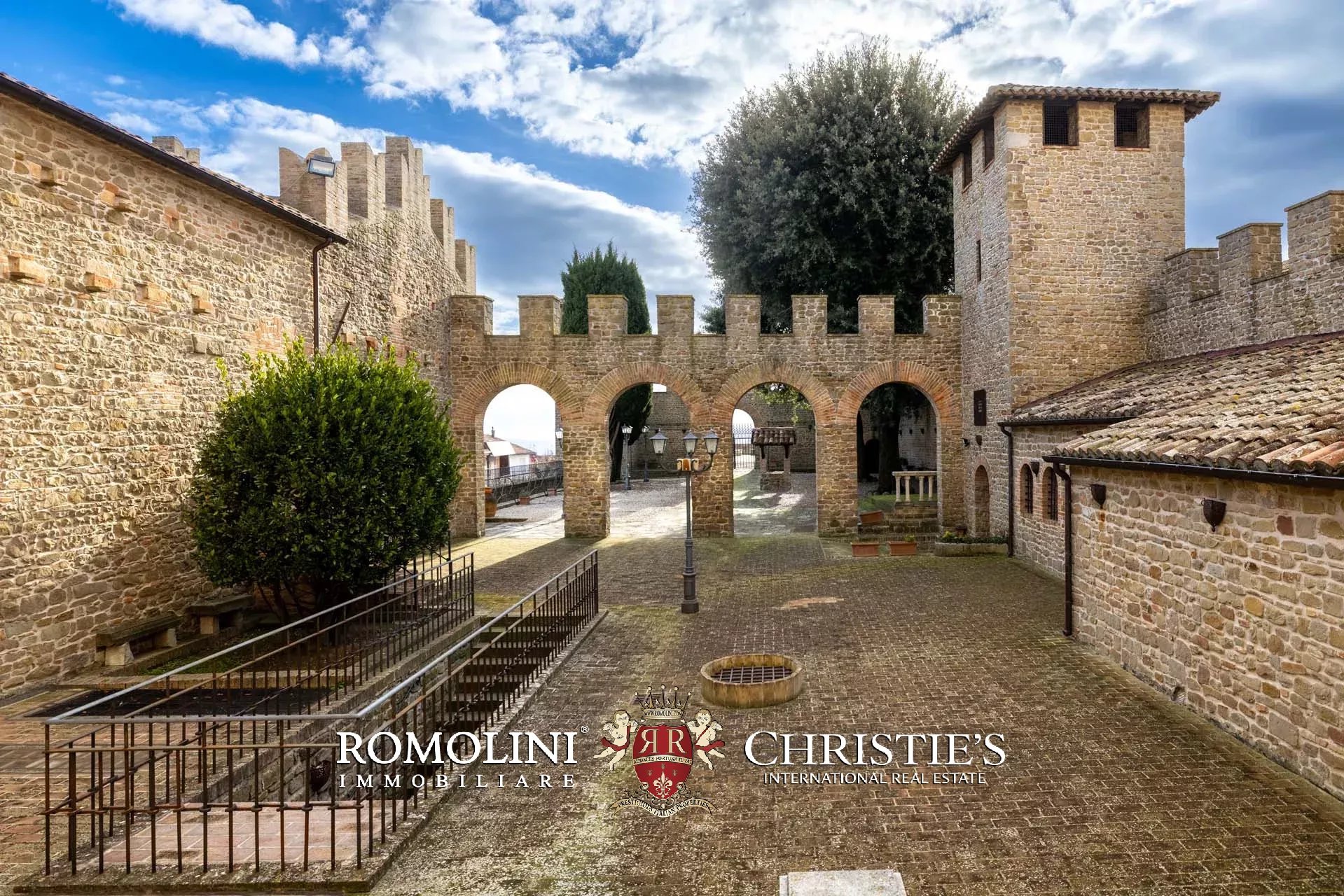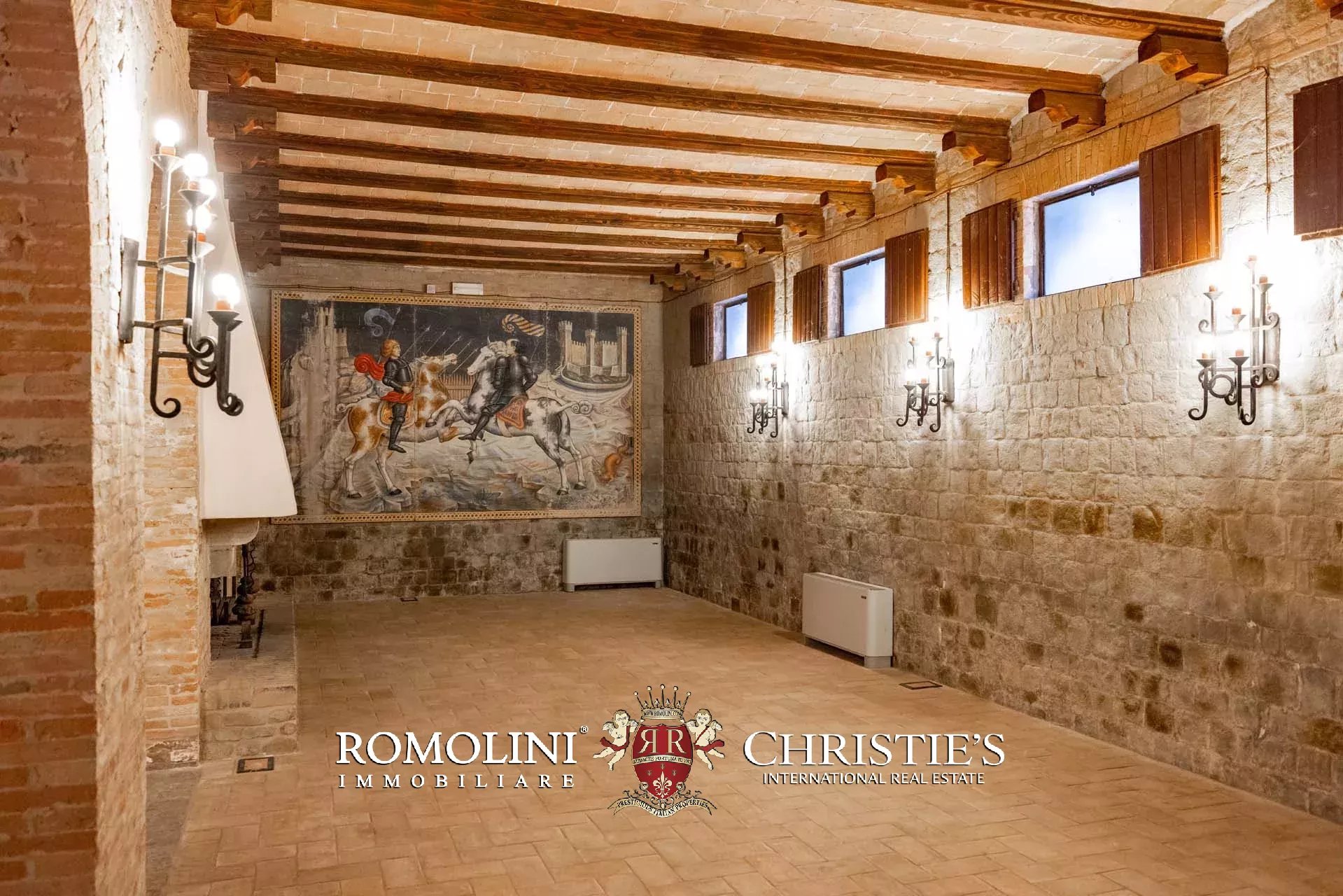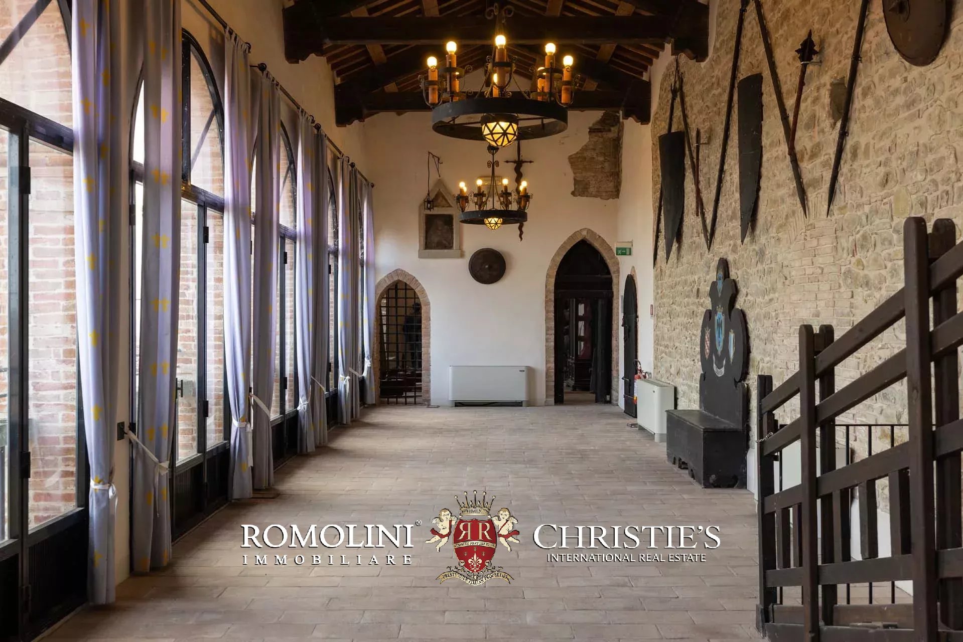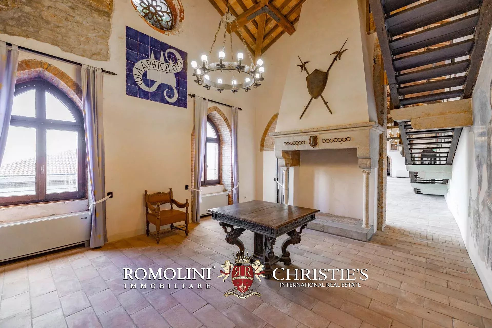 Il cuore scenografico della proprietà è rappresentato dalla corte interna in pietra di circa 700 m², ideale per ricevimenti, eventi, sfilate, presentazioni o momenti conviviali all’aperto. Le mura merlate e l’impianto urbanistico medievale creano un contesto di grande fascino storico e architettonico, perfettamente adatto a eventi di prestigio e manifestazioni di rappresentanza.
