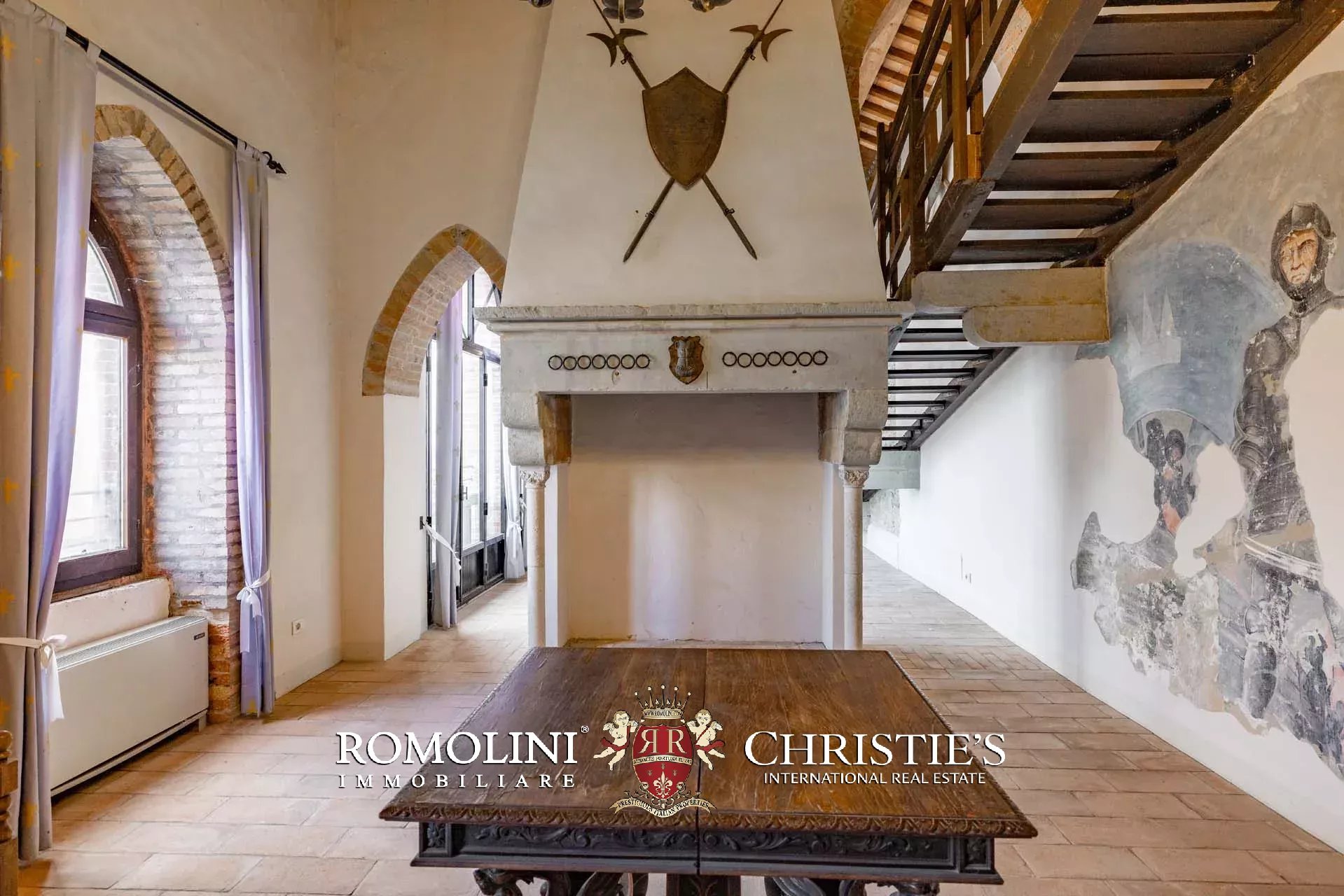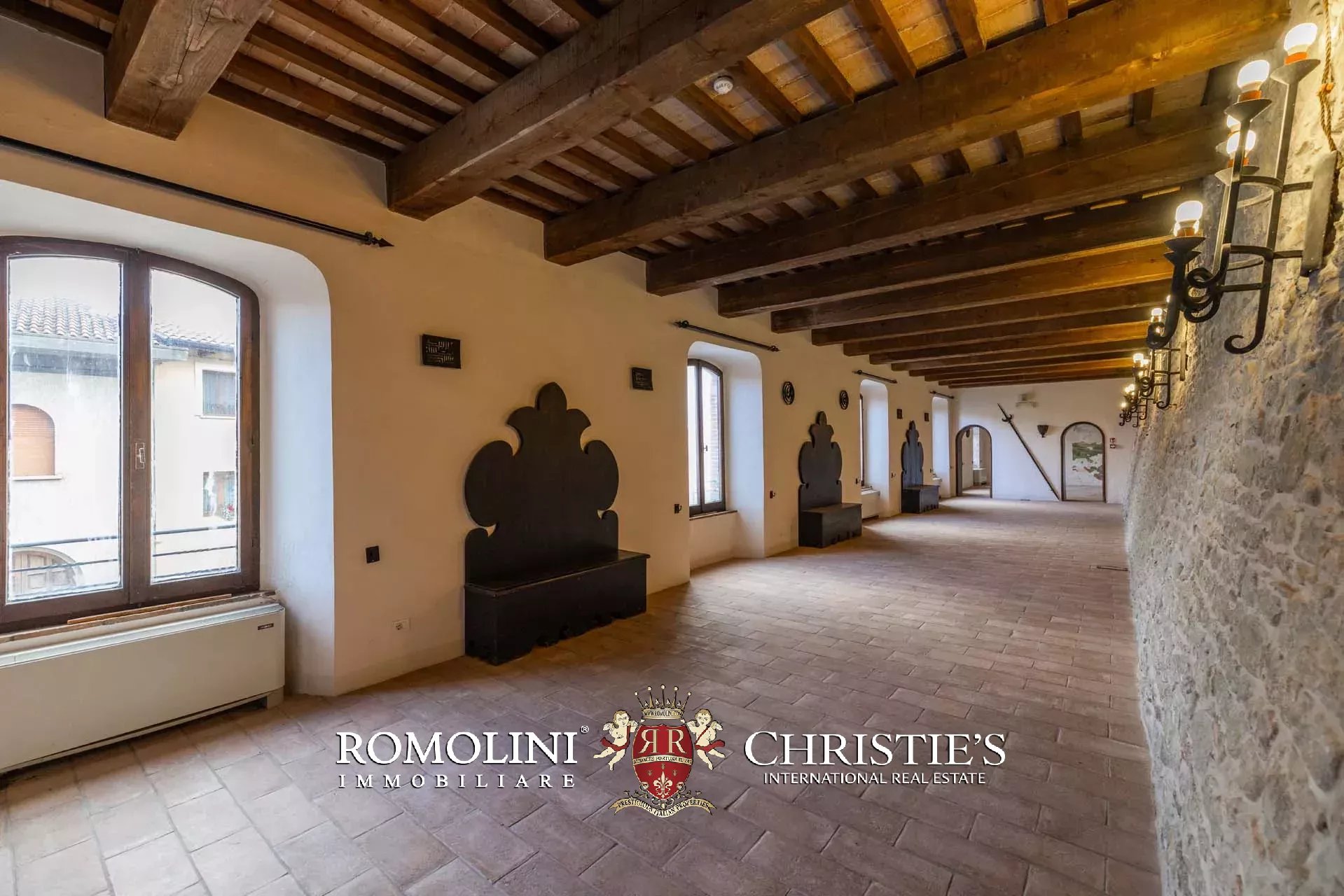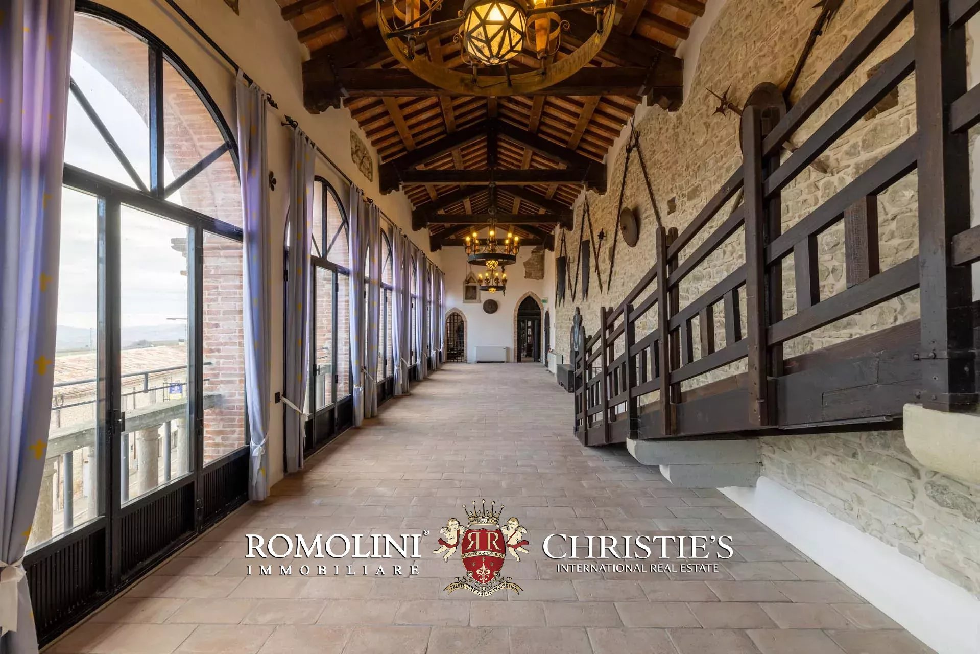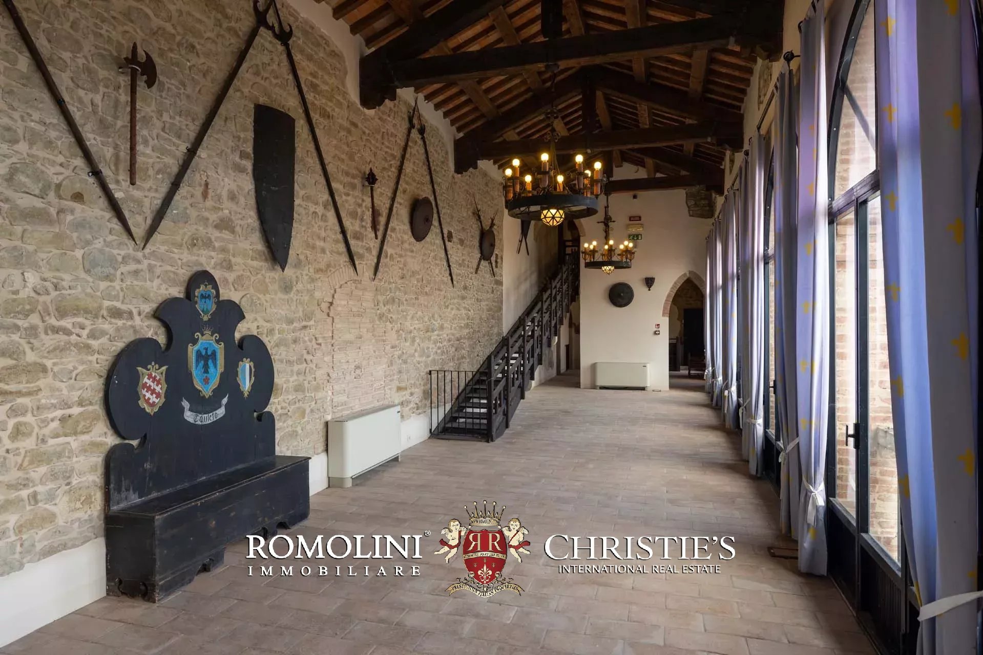 Il cuore scenografico della proprietà è rappresentato dalla corte interna in pietra di circa 700 m², ideale per ricevimenti, eventi, sfilate, presentazioni o momenti conviviali all’aperto. Le mura merlate e l’impianto urbanistico medievale creano un contesto di grande fascino storico e architettonico, perfettamente adatto a eventi di prestigio e manifestazioni di rappresentanza.