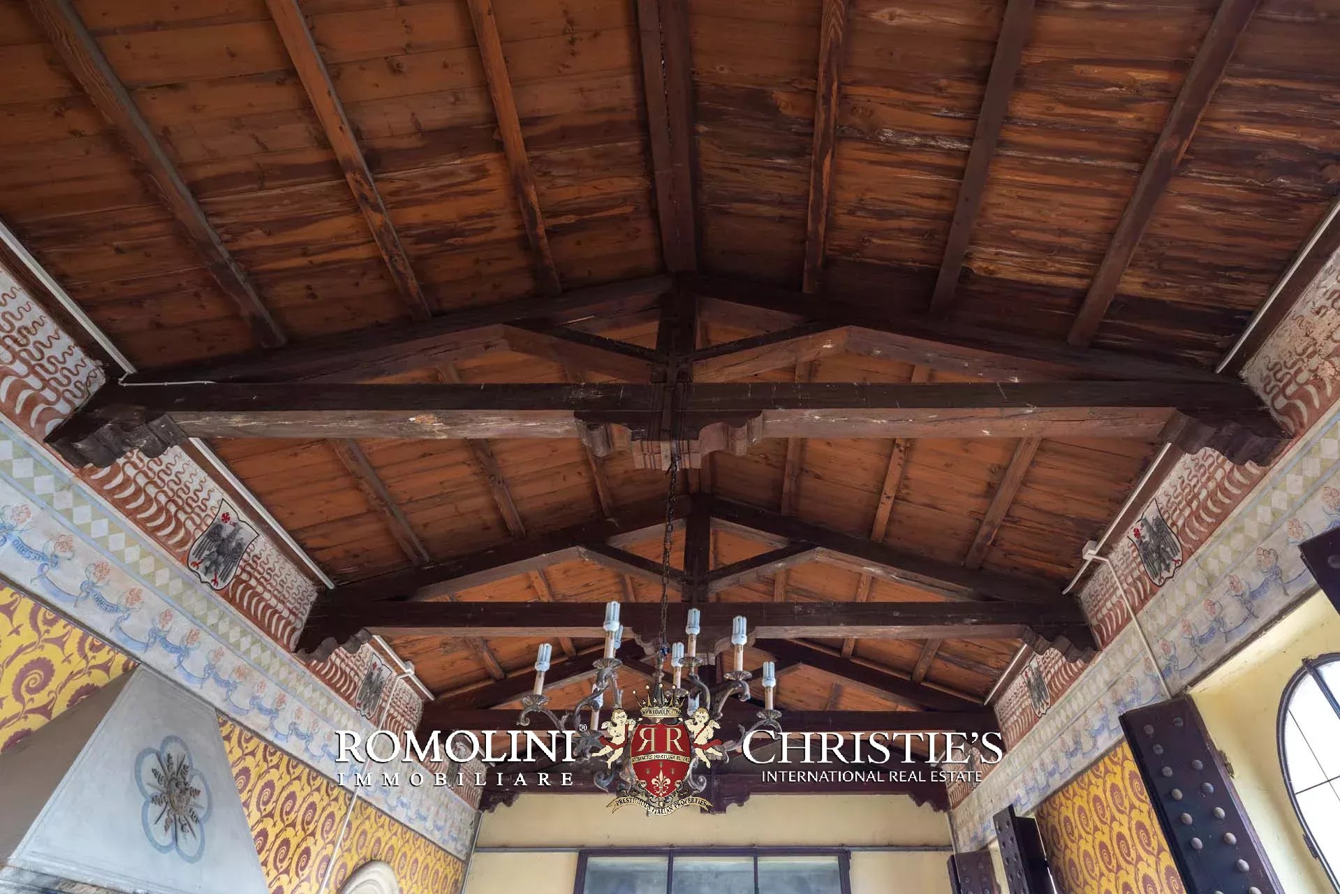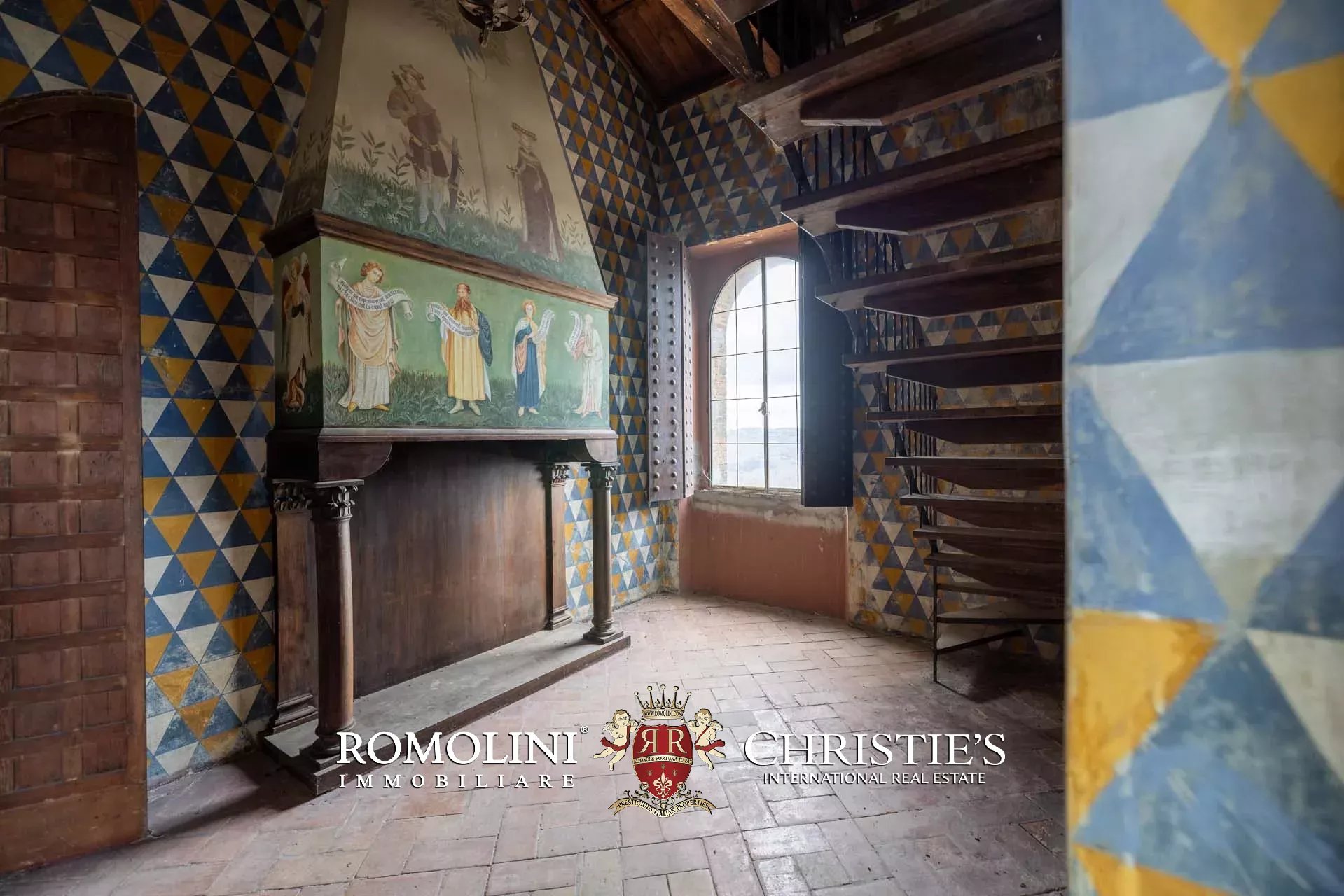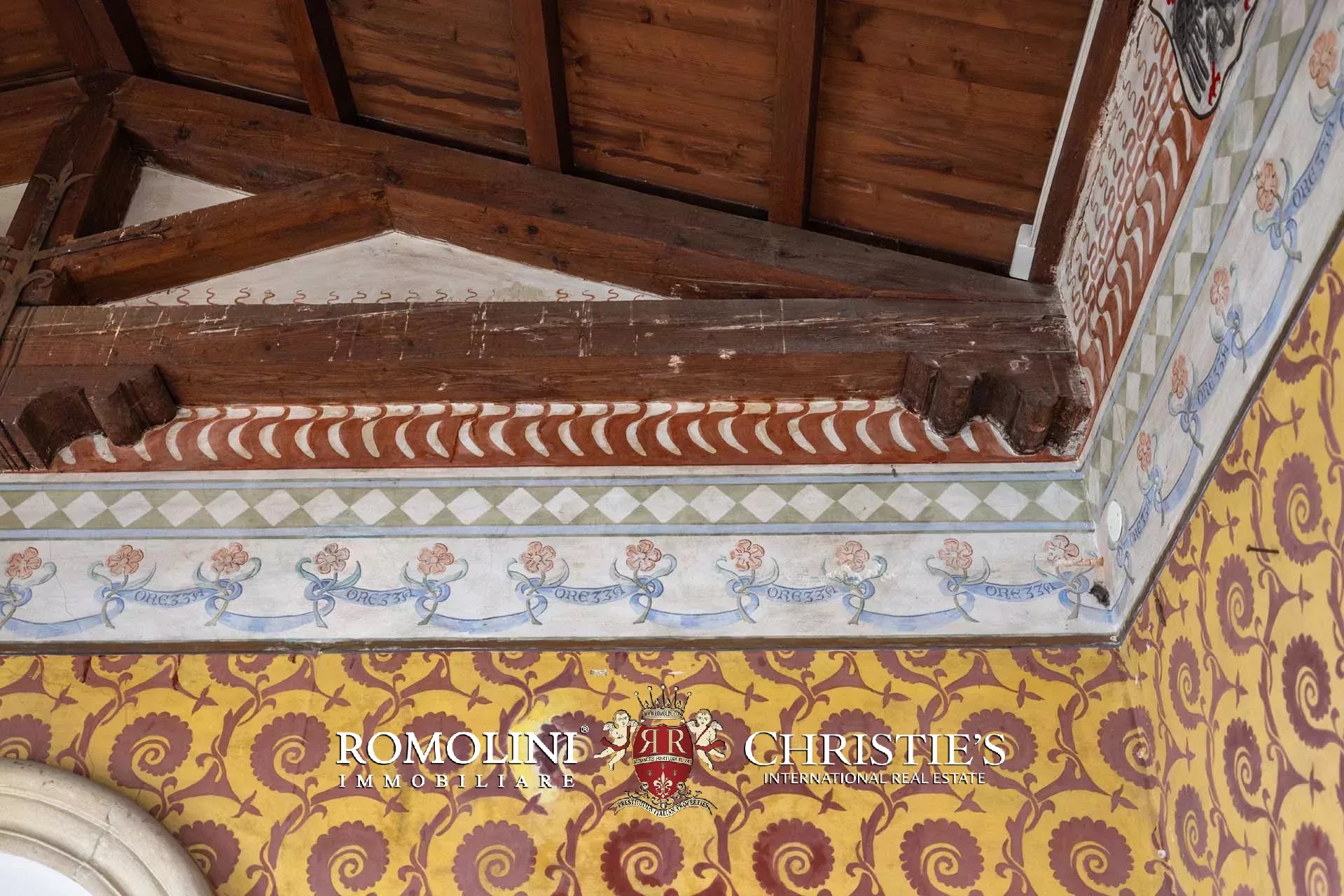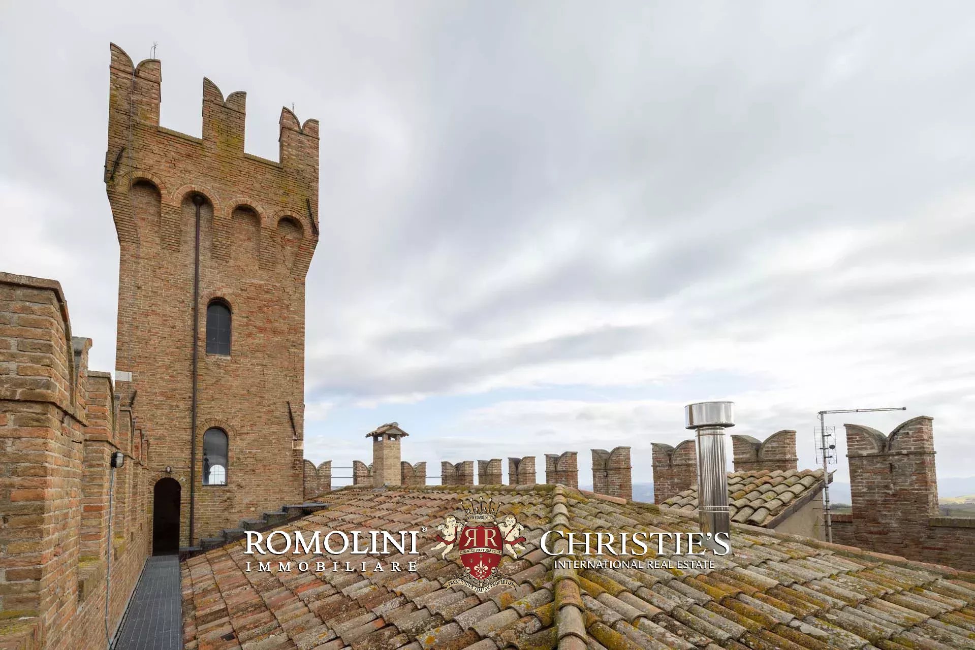 La proprietà, edificata intorno al 1290 e ampliata nei secoli successivi, è racchiusa da imponenti mura merlate che garantiscono elevata privacy pur trovandosi nel centro del borgo. Il complesso si sviluppa attorno a una scenografica corte interna ed è caratterizzato dalla maestosa torre principale, visibile anche a notevole distanza, oltre a ulteriori torri perimetrali e suggestivi ambienti sotterranei.
