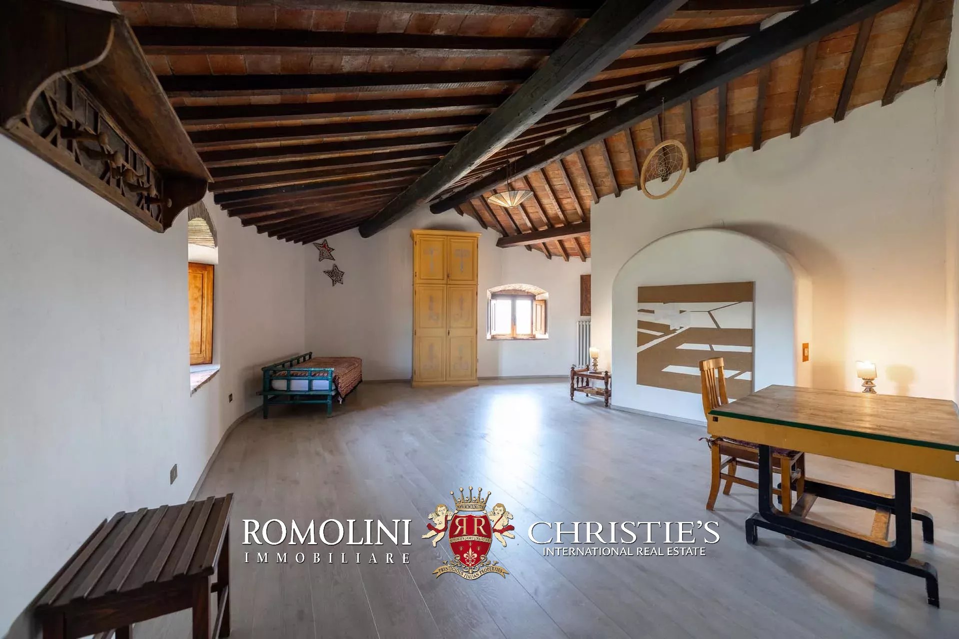 Il terzo piano è costituito da una splendida camera padronale situata nella parte più alta della torre, da cui si accede a una terrazza panoramica con vista mozzafiato a 360° sulla campagna del Chianti.