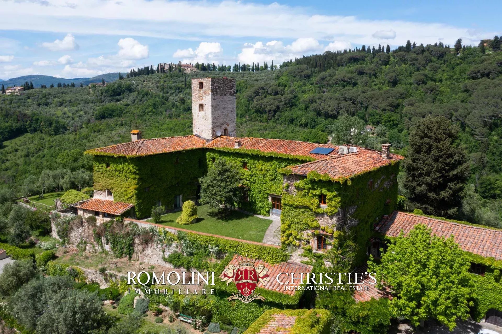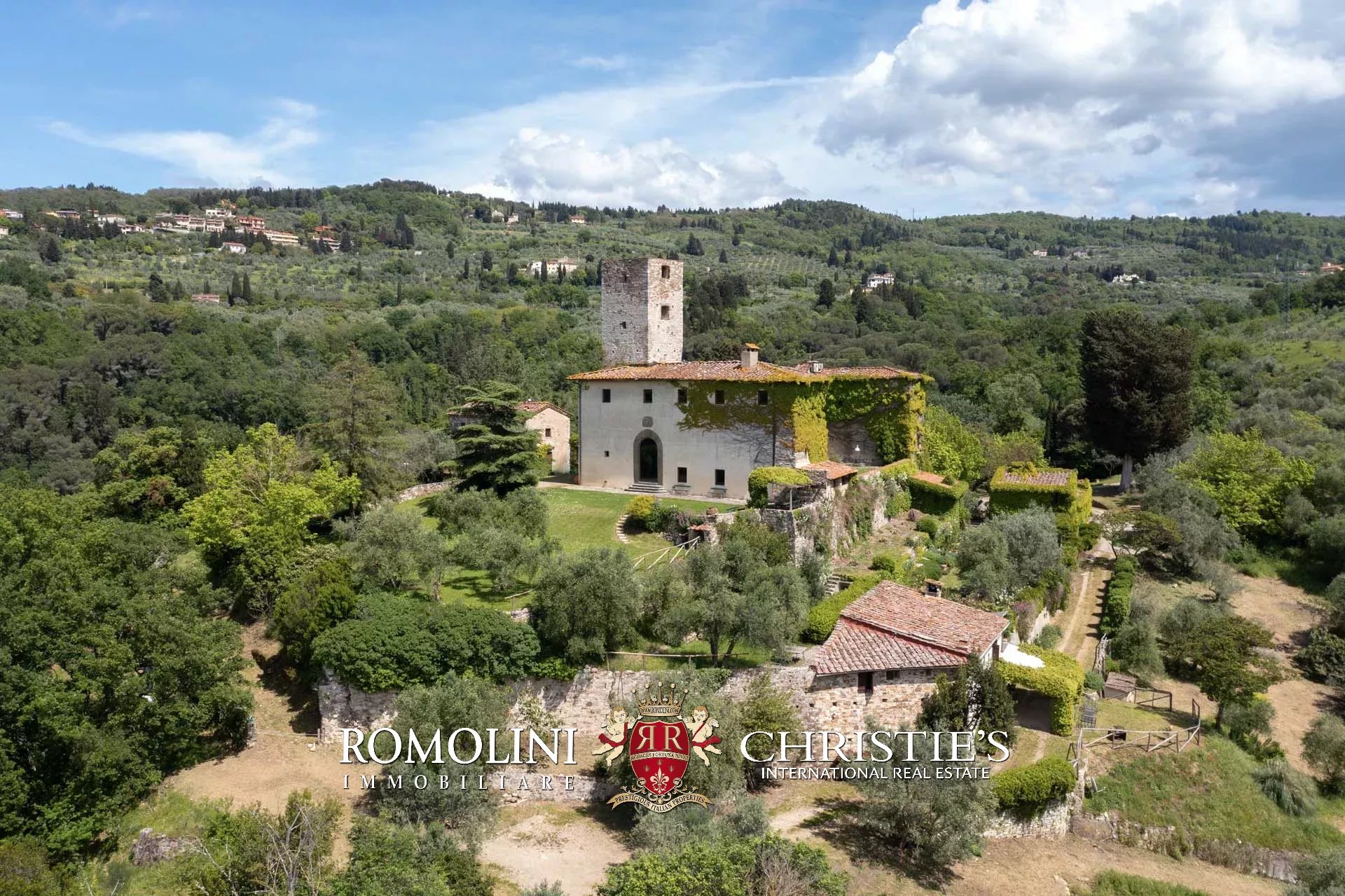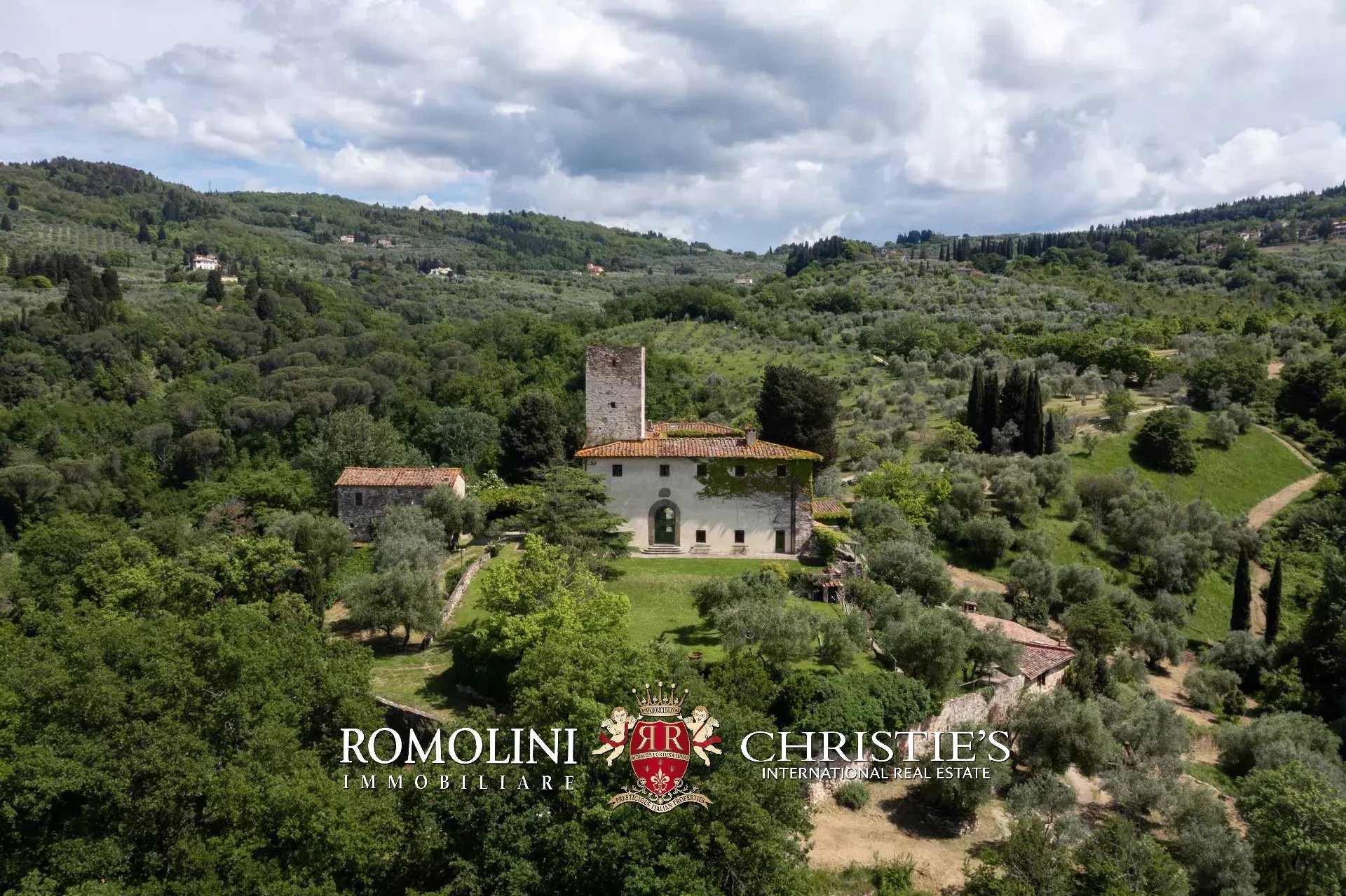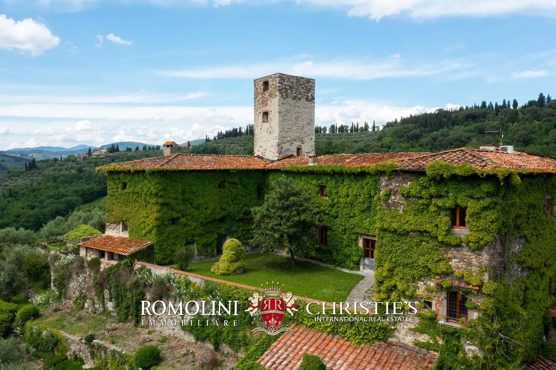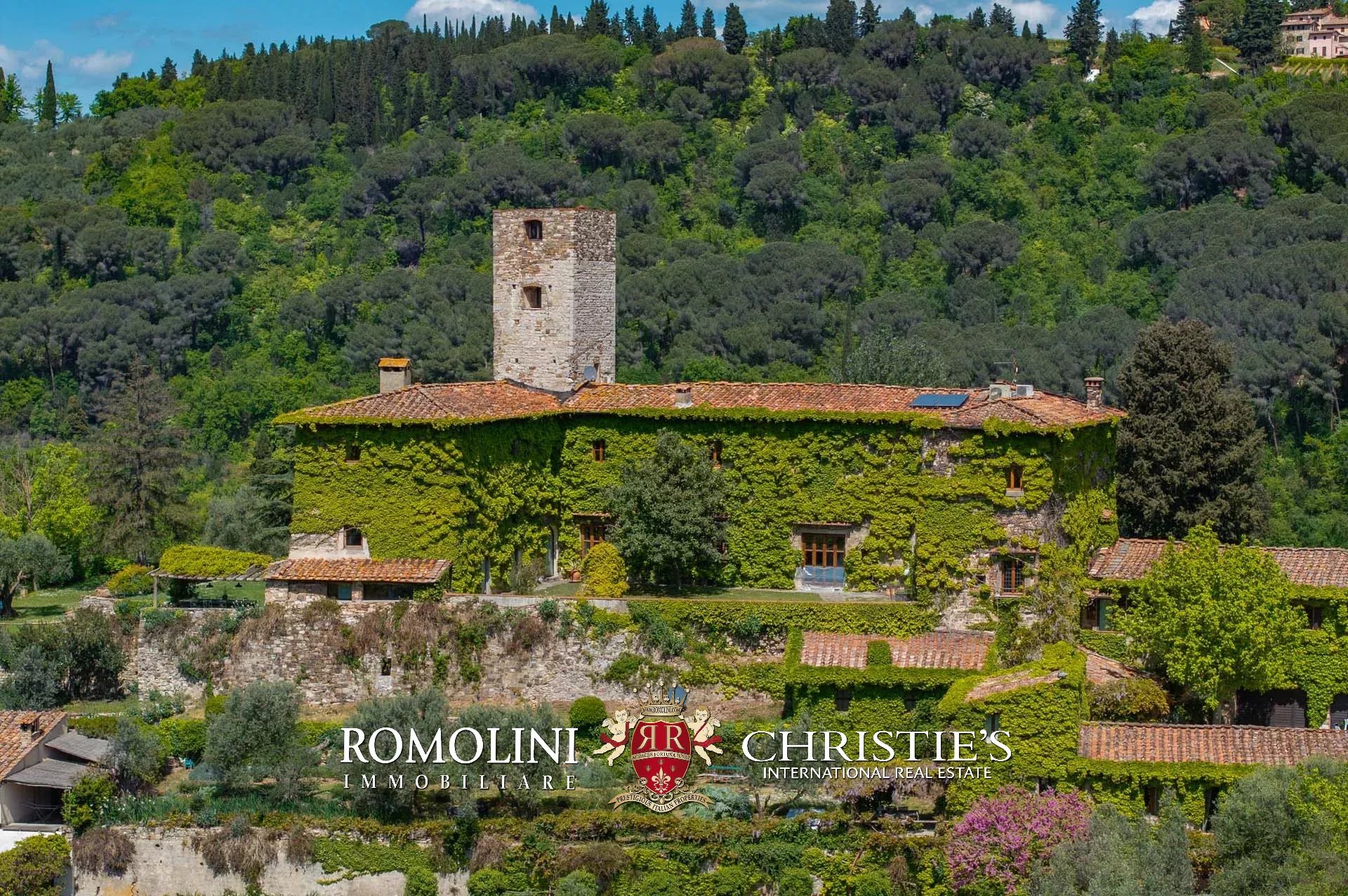 Sulle colline di Firenze, in posizione molto panoramica a est del centro storico della città, castello medievale del XII secolo in vendita.