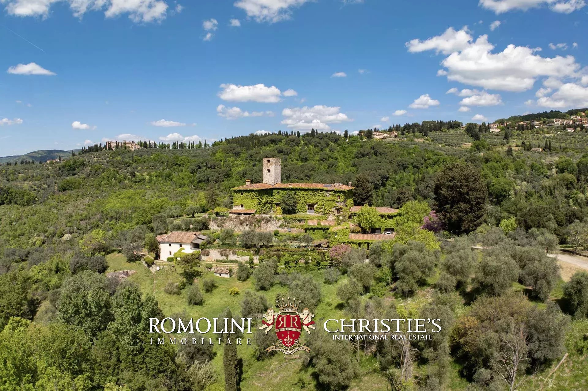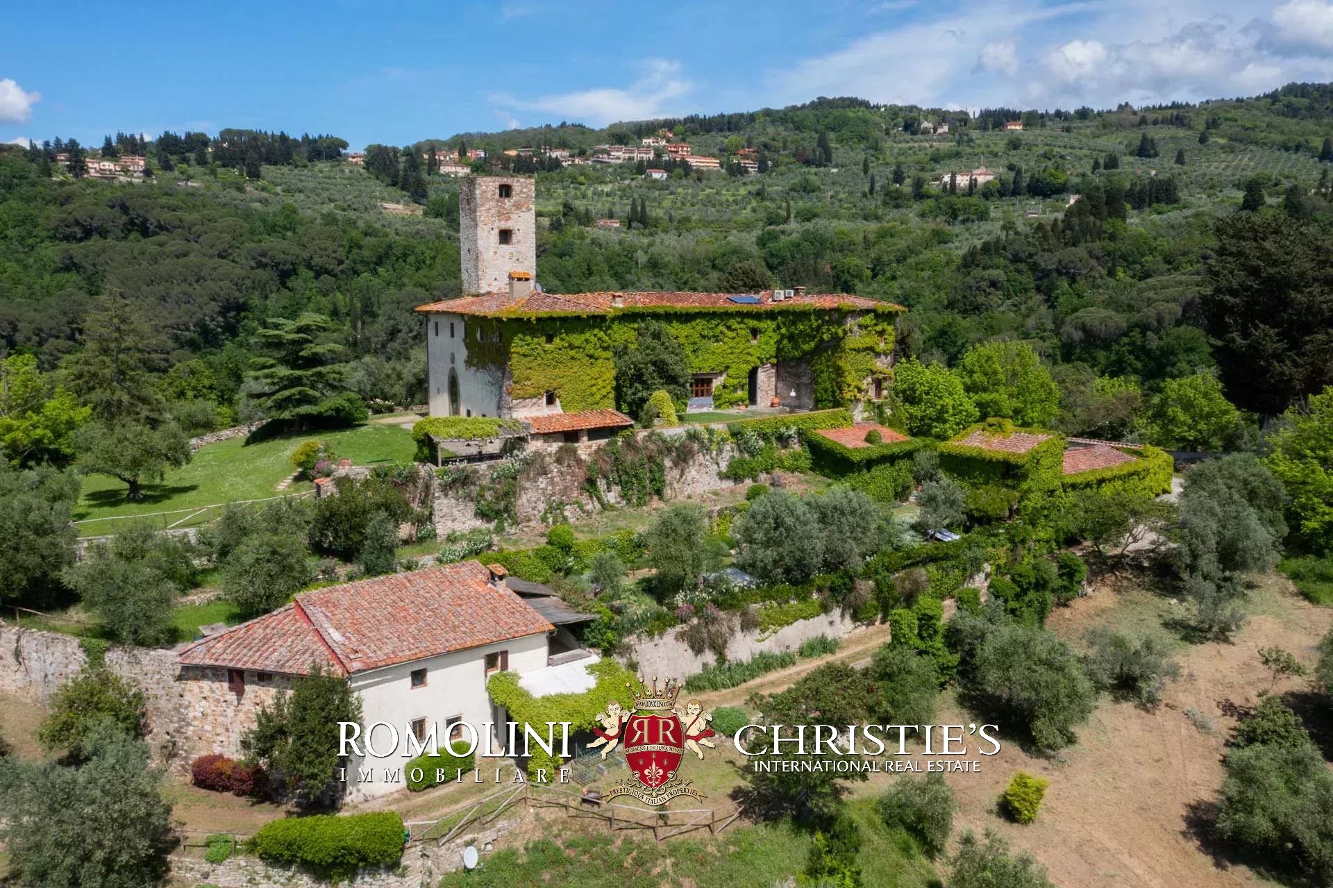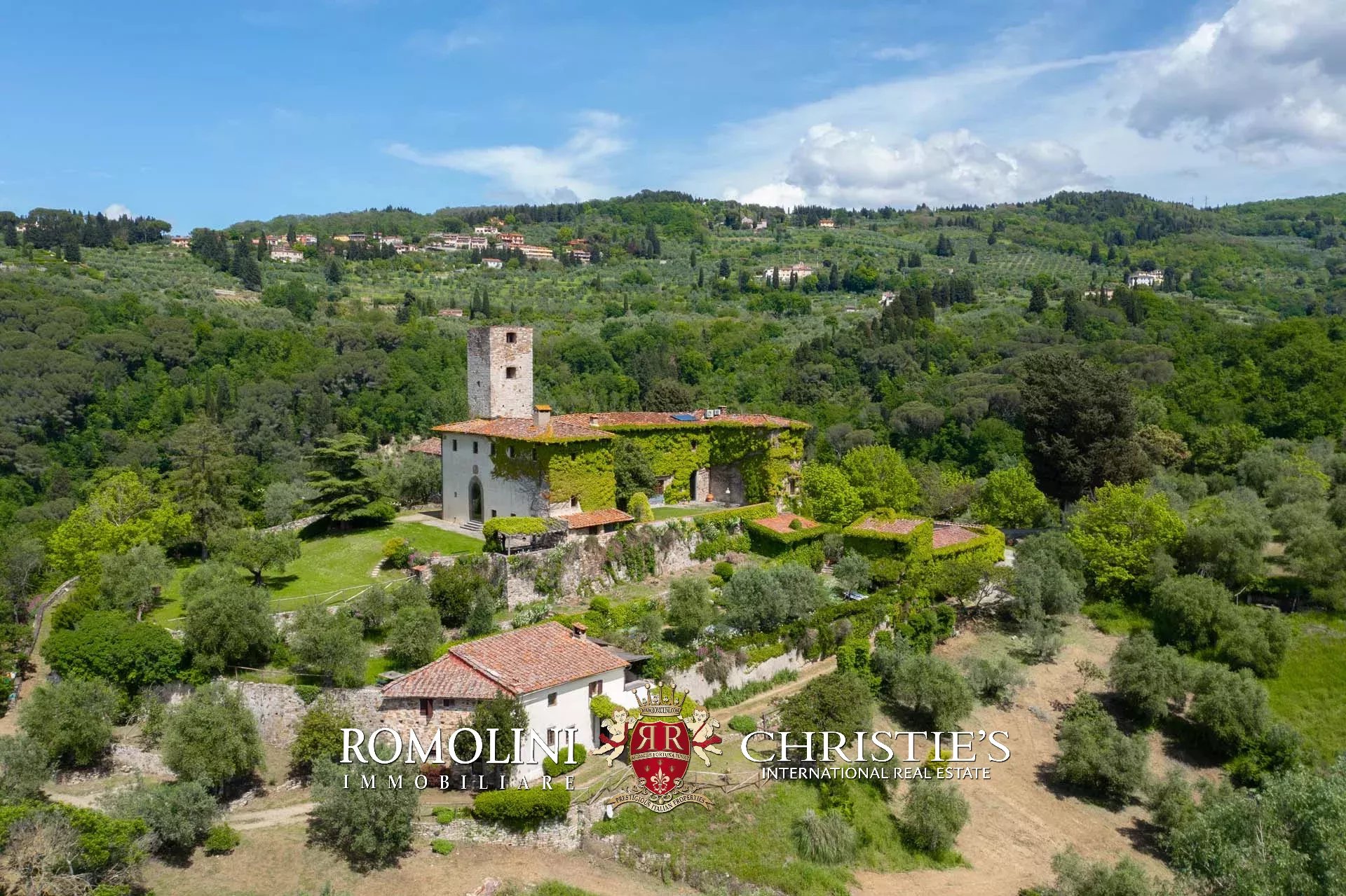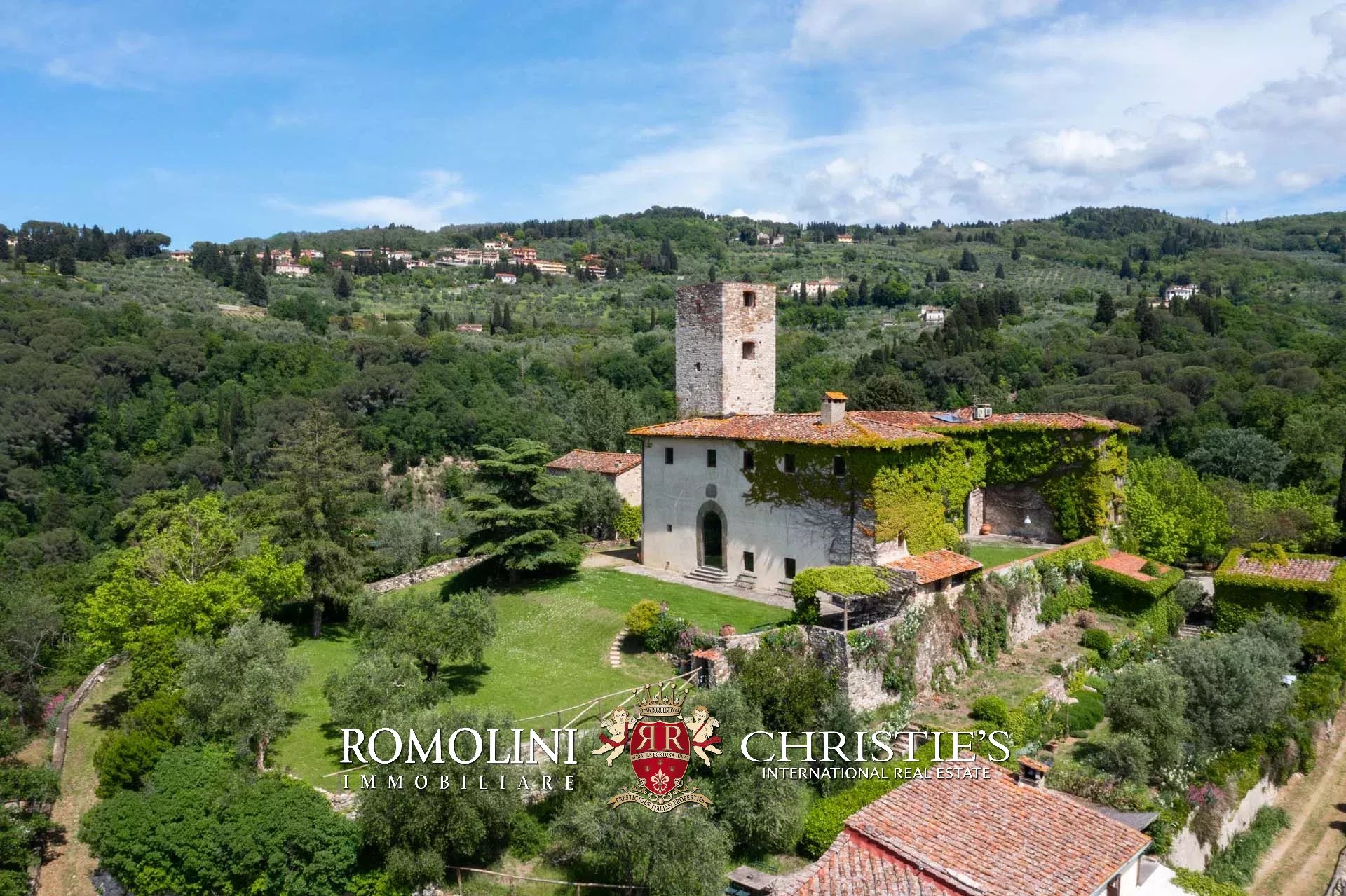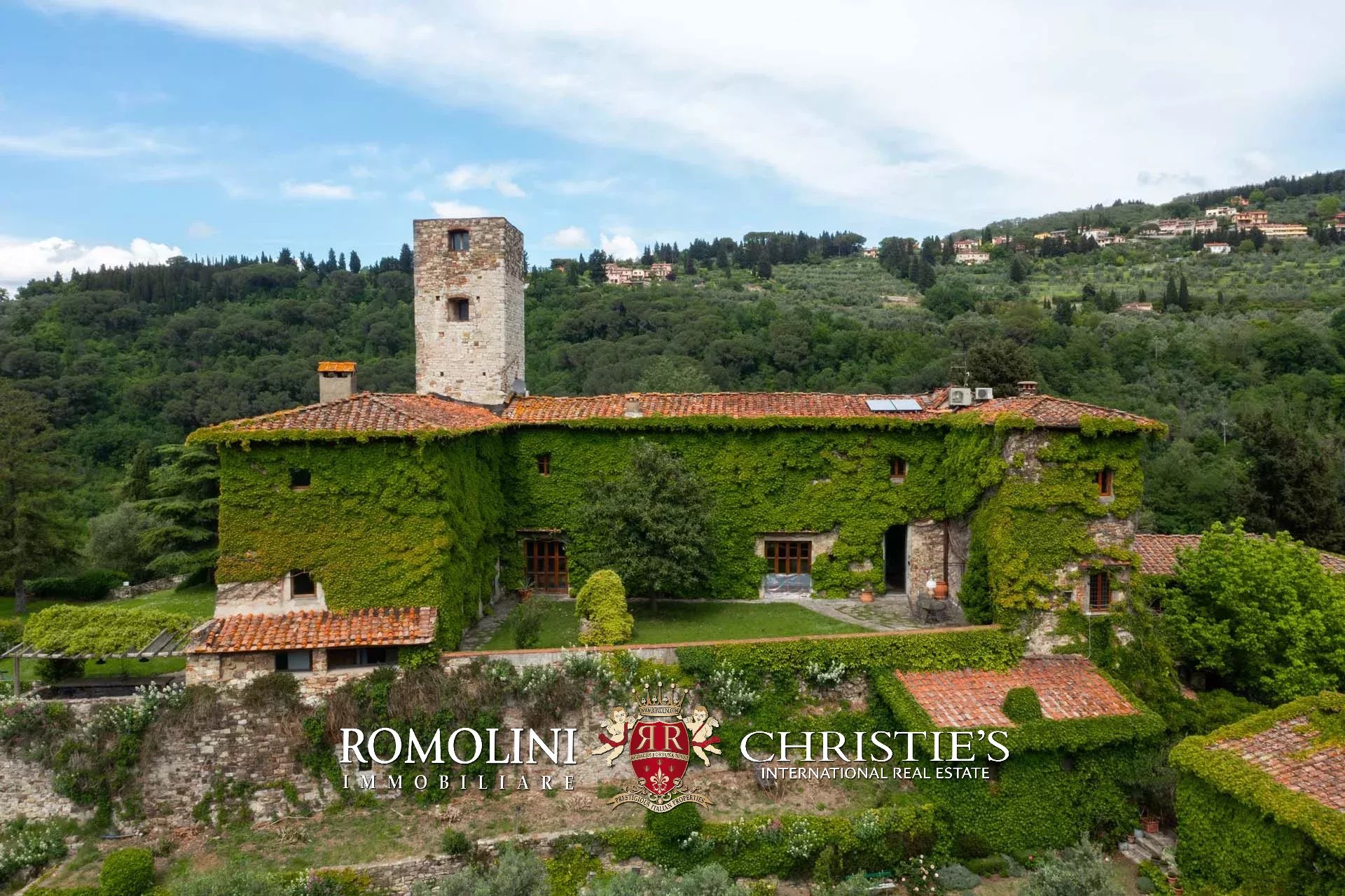 Sulle colline di Firenze, in posizione molto panoramica a est del centro storico della città, castello medievale del XII secolo in vendita.