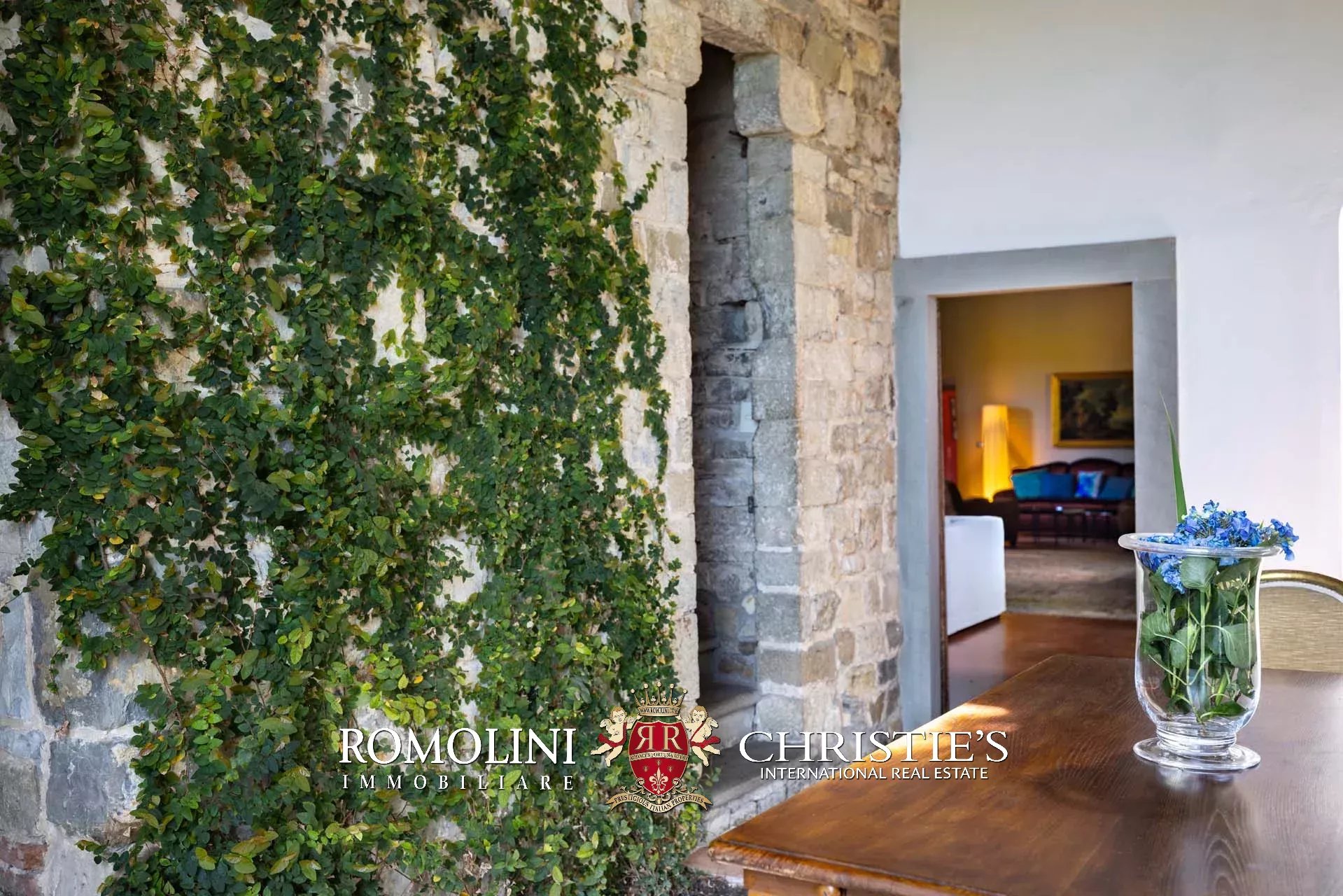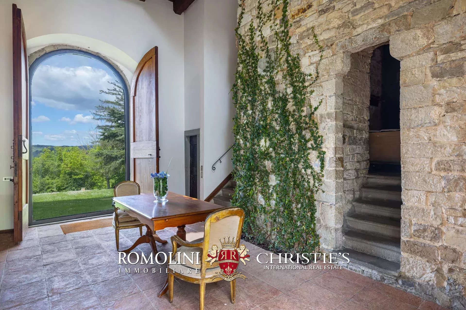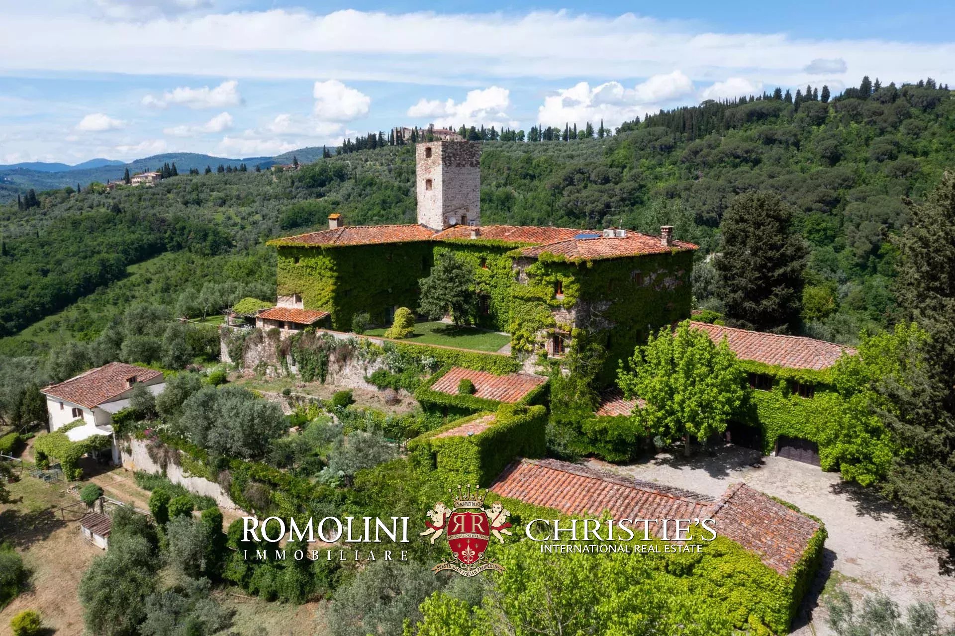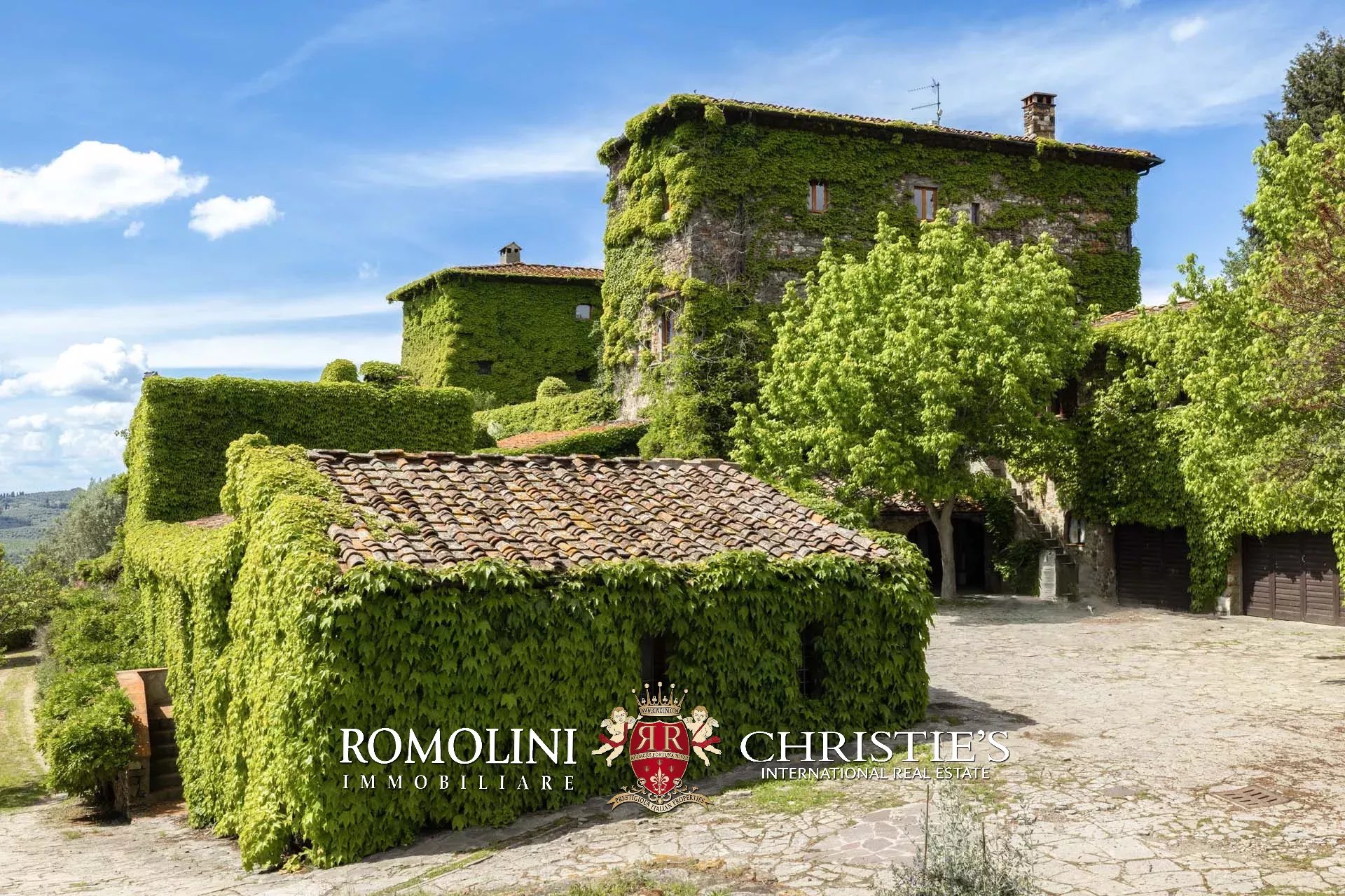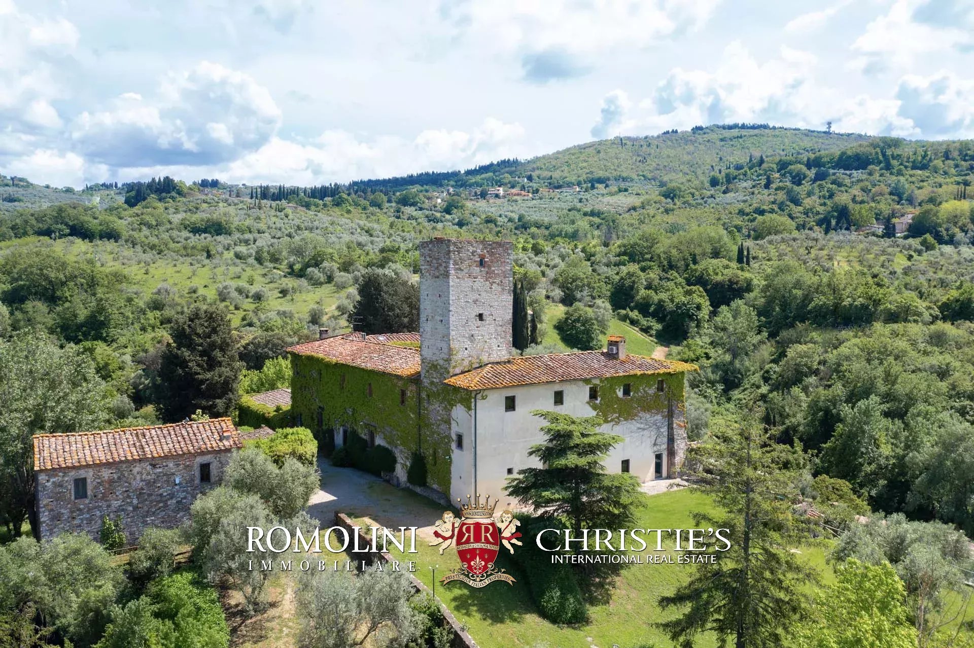 Sulle colline di Firenze, in posizione molto panoramica a est del centro storico della città, castello medievale del XII secolo in vendita.