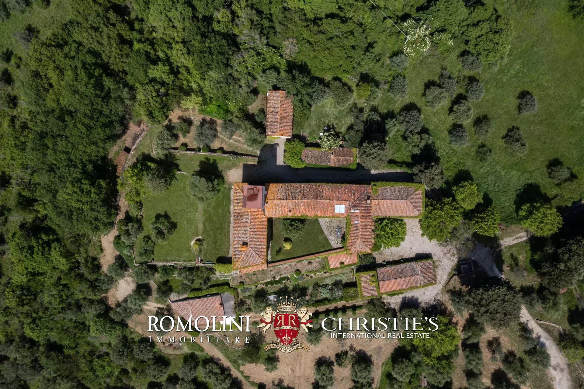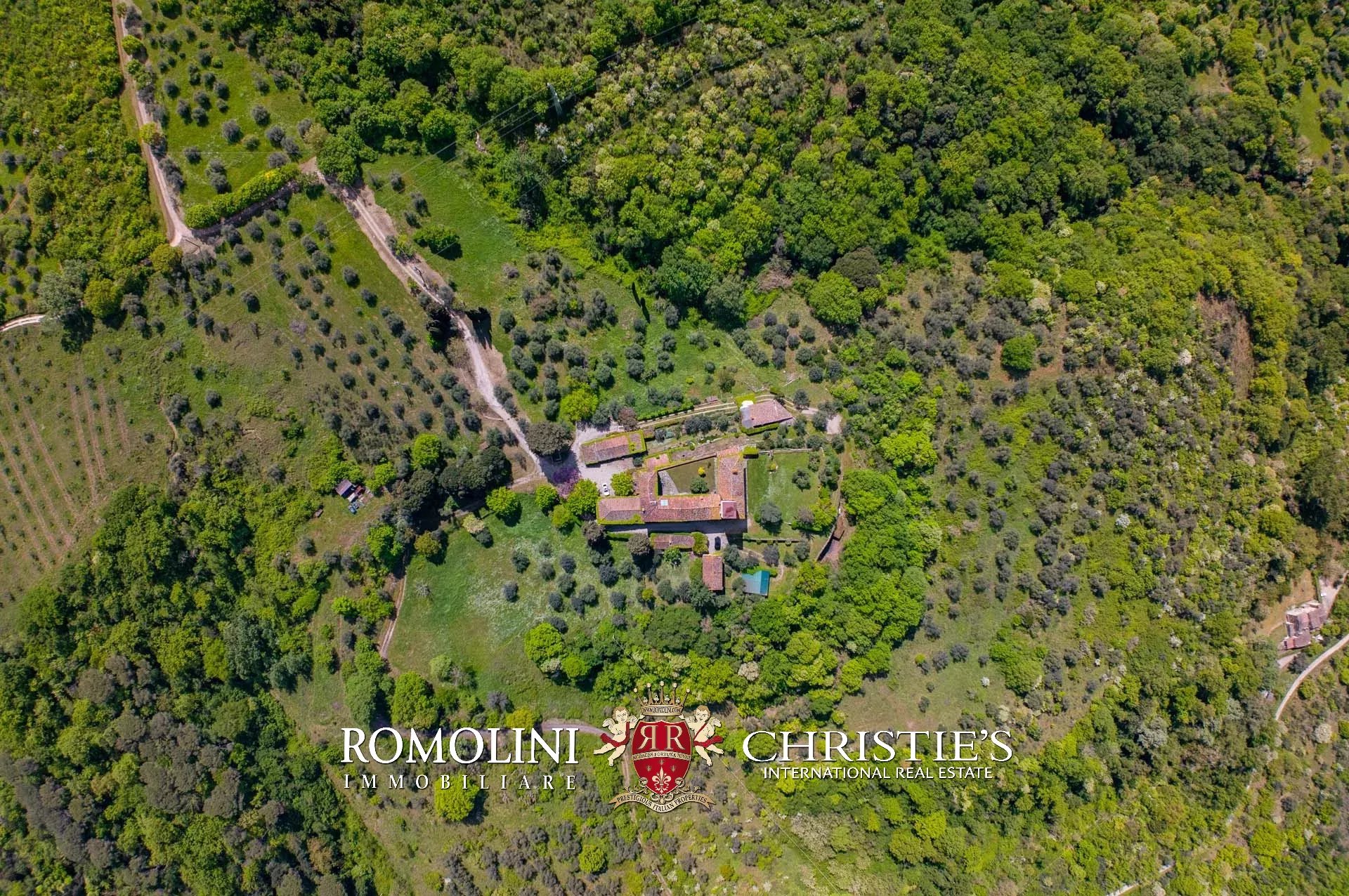 La maggior parte della proprietà è poi coperta da boschi (16,0 ha) che circondano il castello su tutti i lati, assicurando grande privacy e riparo da qualunque rumore. Gli ulivi sono distribuiti su circa 6,2 ha mentre il seminativo occupa la restante parte (2,7 ha).
