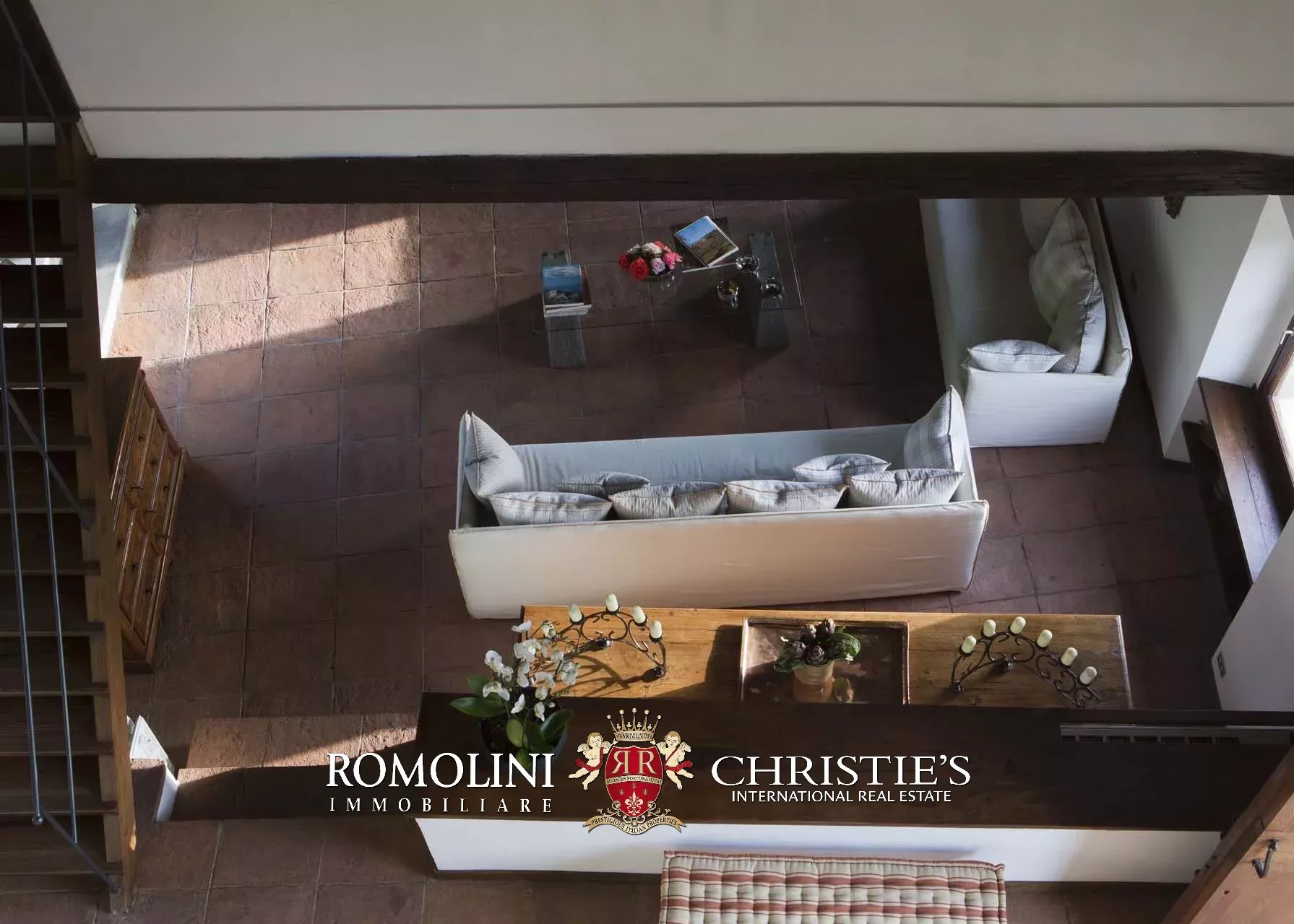 - La chiesa (150 m², 3 camere e 2 bagni), oggi sconsacrata, è stata convertita in una graziosa dependance su due piani composta di zona giorno con cucina, salotto, tre camere e due bagni.